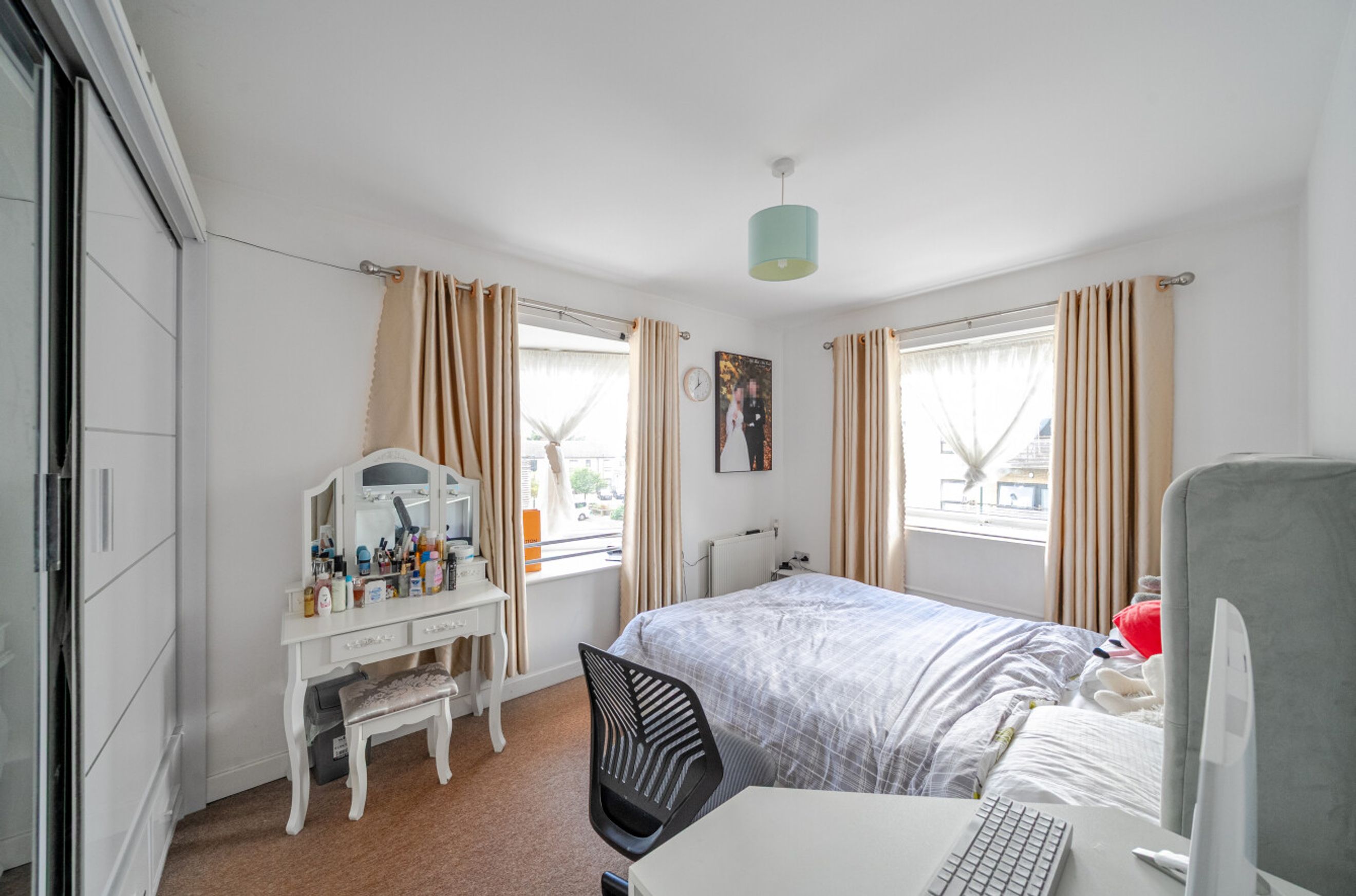 A well-presented, two-bedroom apartment on the second floor (building has a lift). The property features a reception room with open-plan kitchen area and a south-east-facing balcony. There is a main bedroom with windows on two sides, a second comfortable double bedroom, a simple white-tiled bathroom and useful storage space in the hall. Well insulated walls, modern double glazing and a communal heating/hot water system make for a very good energy-efficiency rating. Hackbridge is the nearest station and Carshalton Station is also within easy reach. There are a large number of communal parking spaces throughout the development.