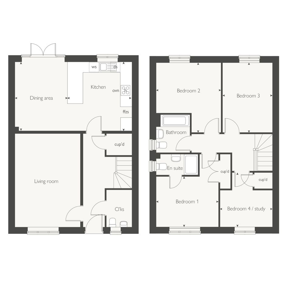 Open plan kitchen. dining room with a breakfast bar and French doors leading to the rear garden. A separate living room for all of the family to relax in and enjoy and a convenient downstairs cloakroom. The main bedroom benefits from an en suite and cupboard space, the fourth bedroom could also be used as a playroom or a study for a work from home option.