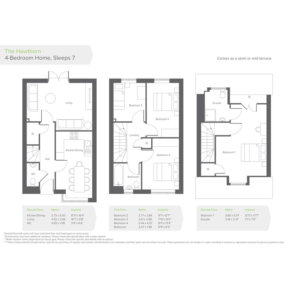 The first floor of The Hawthorn is made up of a two good-sized double bedrooms and a single bedroom. The contemporary three-piece family bathroom contains an over-bath shower plus designer taps and tiling.