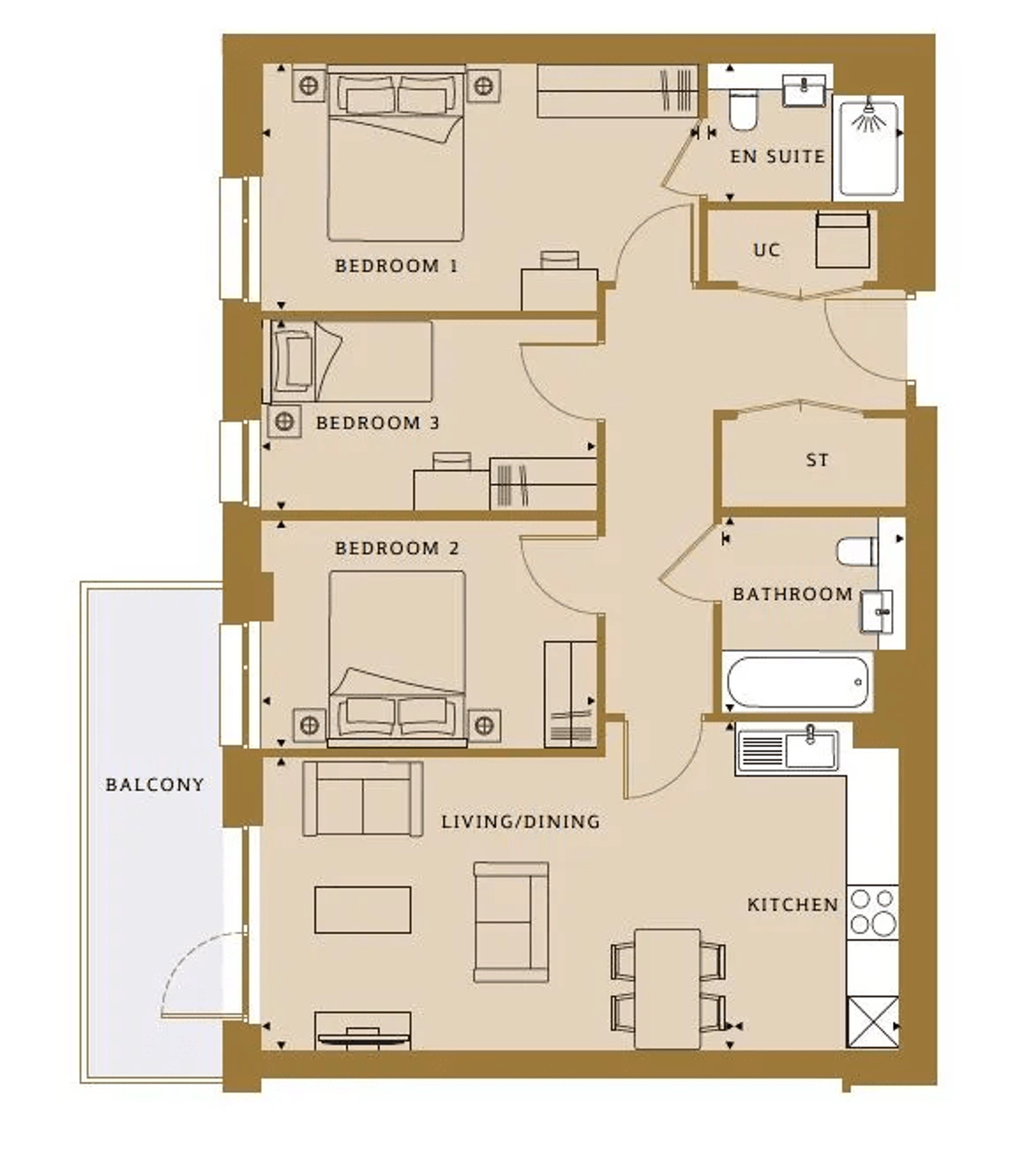 Spacious 3-Bedroom Apartment at Berg Apartments, Hayes Village