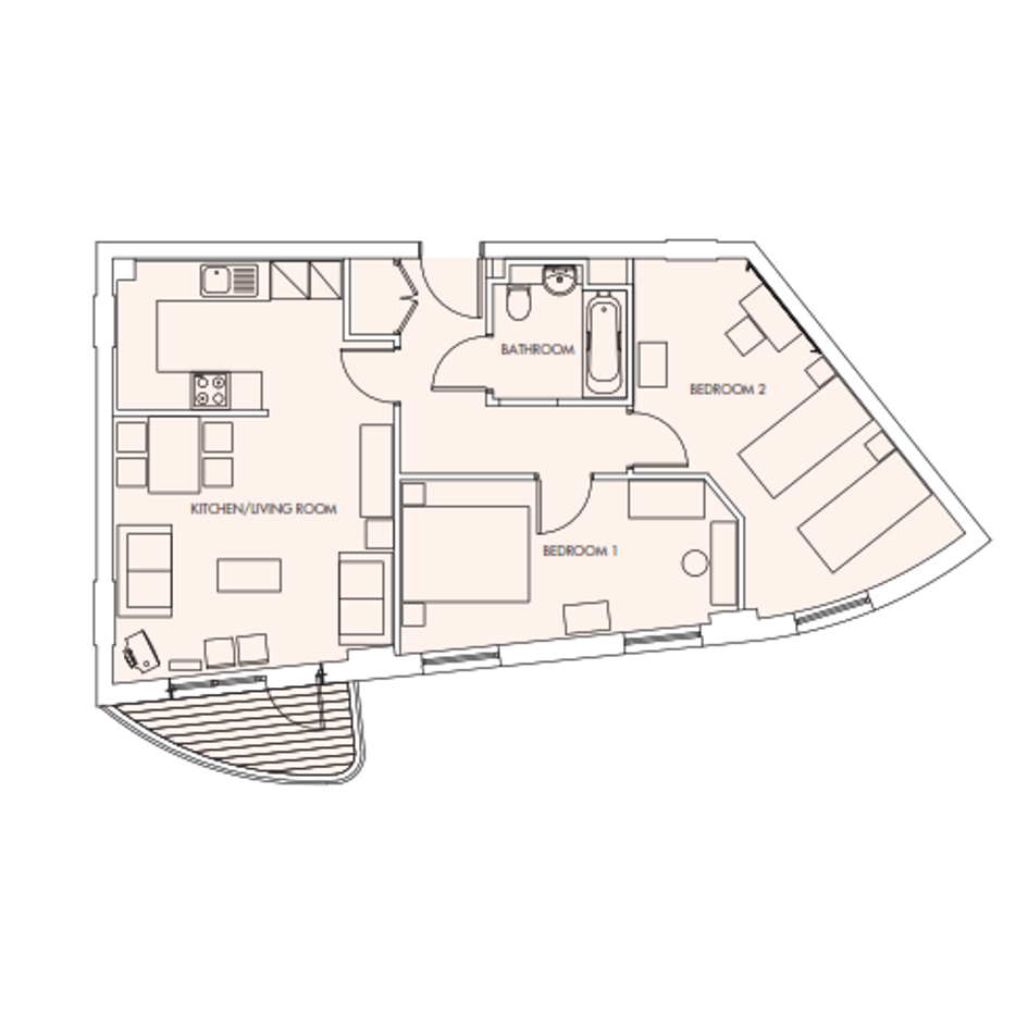 A bright and spacious two bedroom apartment located on the fourth floor of a purpose-built apartment block. The accommodation comprises; entrance hallway, open plan kitchen/reception room, two double bedrooms, bathroom and a private south-facing balcony. The building has a secure door entry phone system, bicycle storage, lift access and a communal roof terrace.