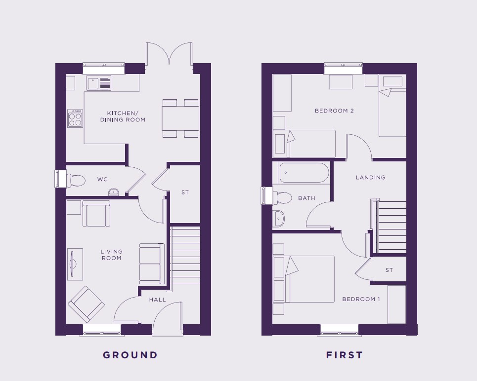 The Hazel is a two bedroom semi-detached home at The Willows, available with Shared Ownership.