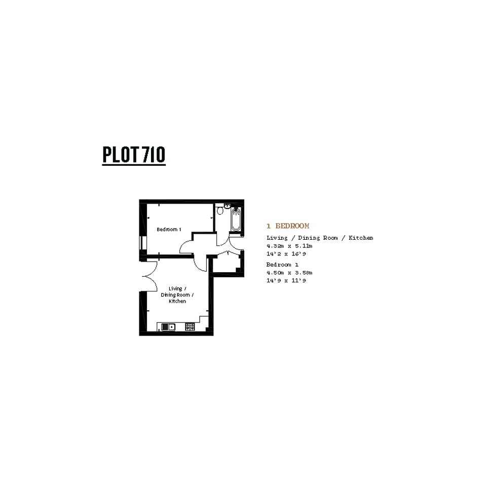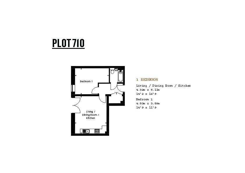 Featuring a spacious living area with doors to your Juliette balcony. The kitchen is fitted with an oven, hob and hood. The bedroom is a spacious double. The bathroom has a modern, white suite.