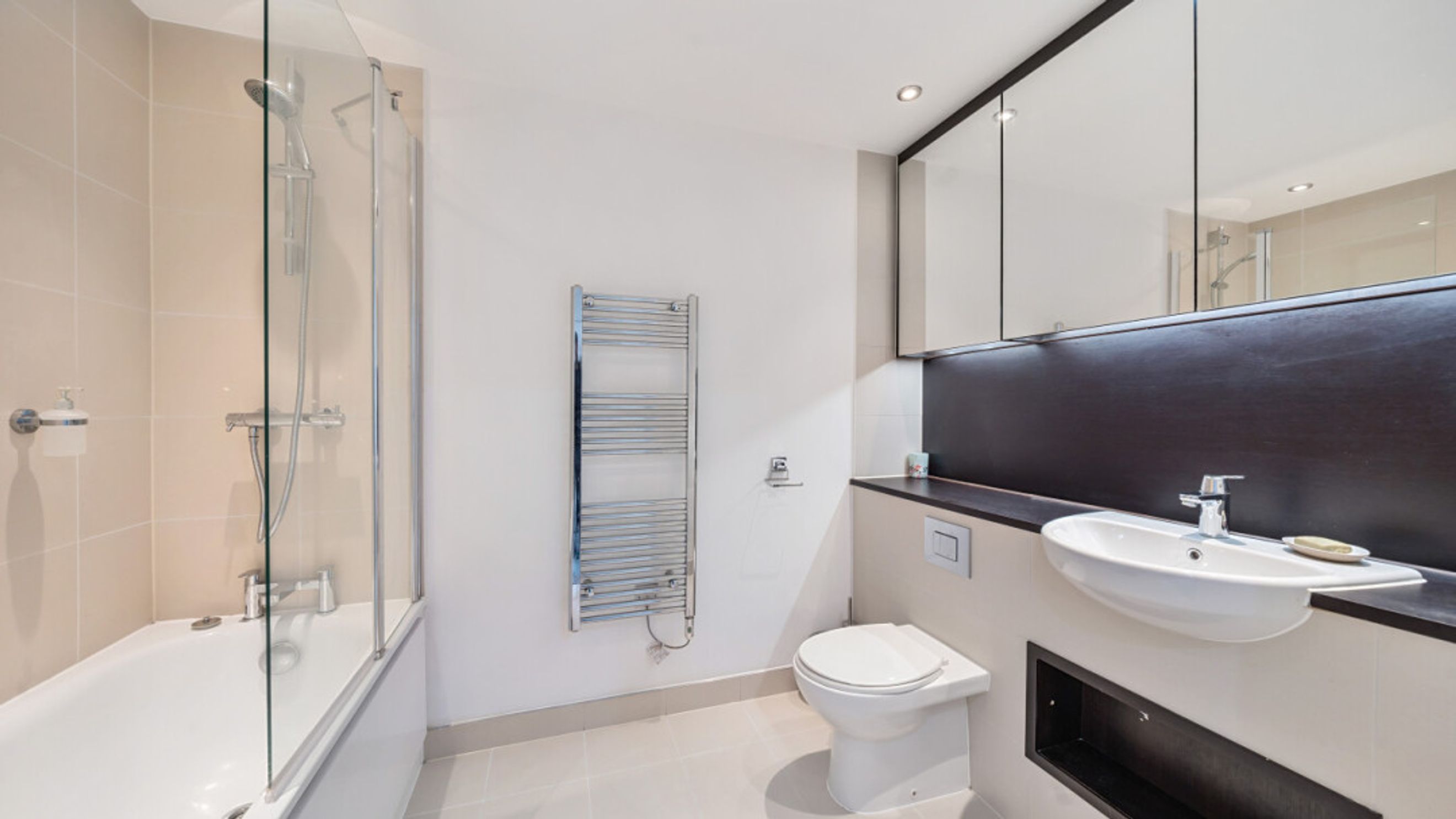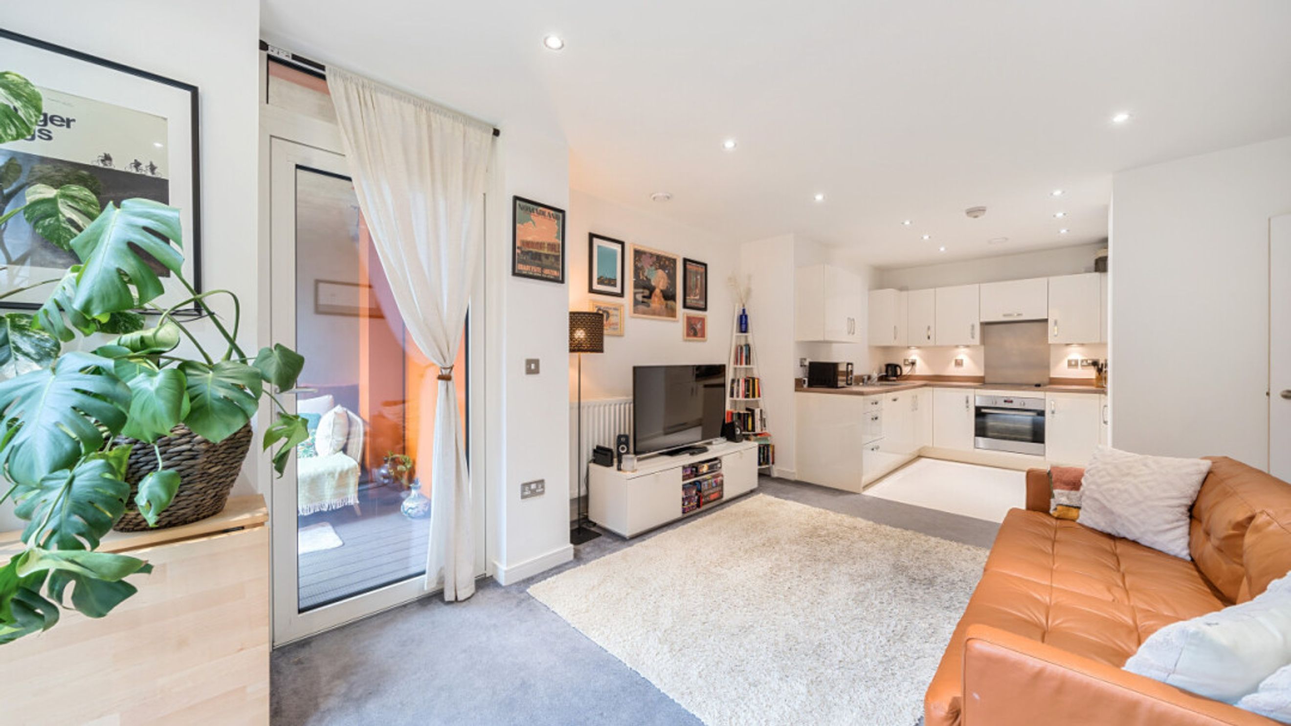 This bright and spacious one bedroom apartment consists of a stylish open-plan kitchen and living area, flooded with natural light from wide floor-length windows and doors leading to private balcony. The kitchen is fitted with cream gloss wall and base units, with under-cupboard lighting, and a oak effect worktop. The kitchen also benefits from integrated appliances including a fridge freezer, oven, hob, extractor fan and dishwasher. Spacious main double bedroom benefitting from built-in storage cupboards. The bathroom comes complete with a white three-piece suite with a shower over bath and a tile surround, mirrored cupboards and heated towel rail. Additional storage cupboards in hallway.