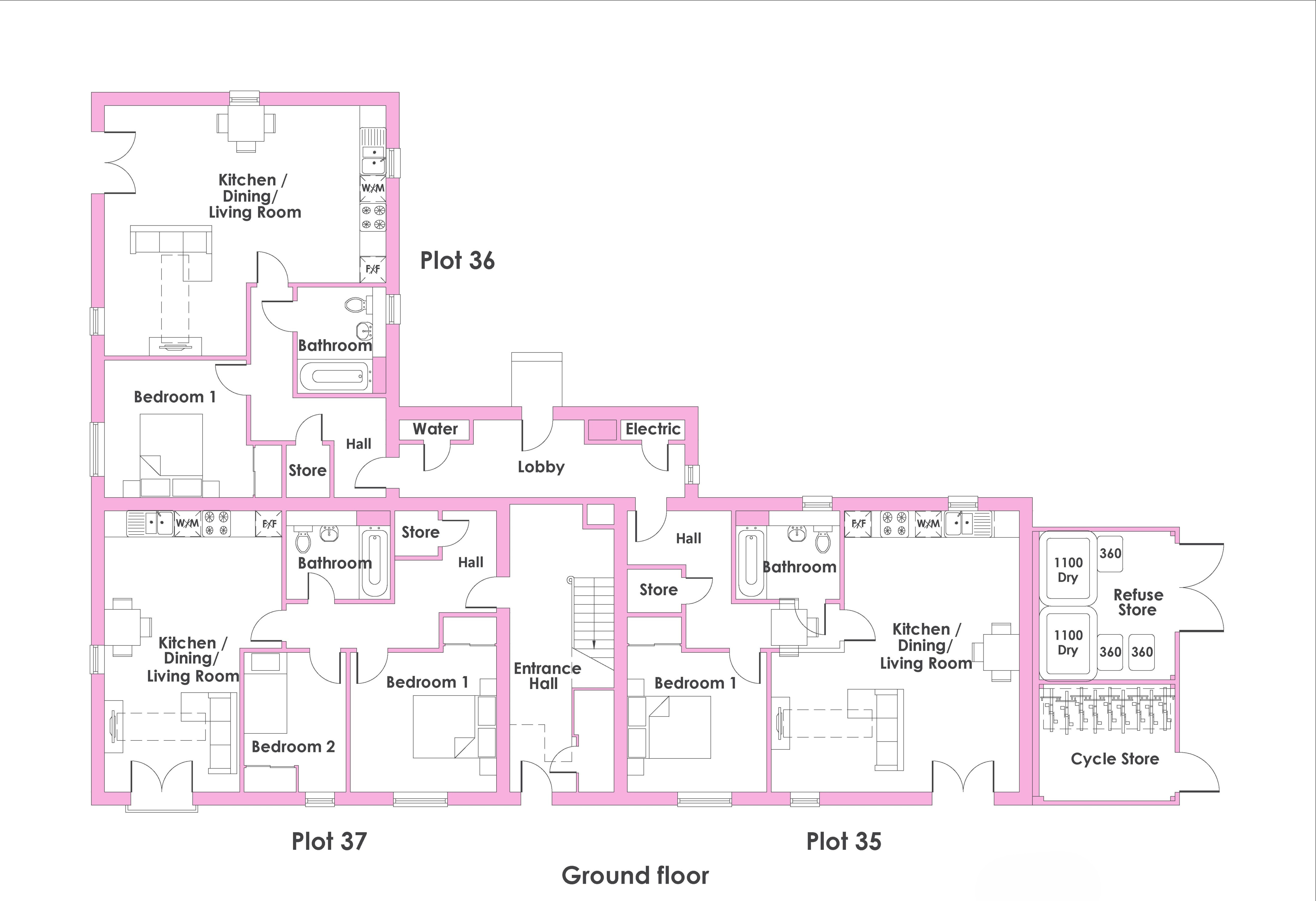 The apartment block also includes a dedicated refuse area and secure cycle storage.
