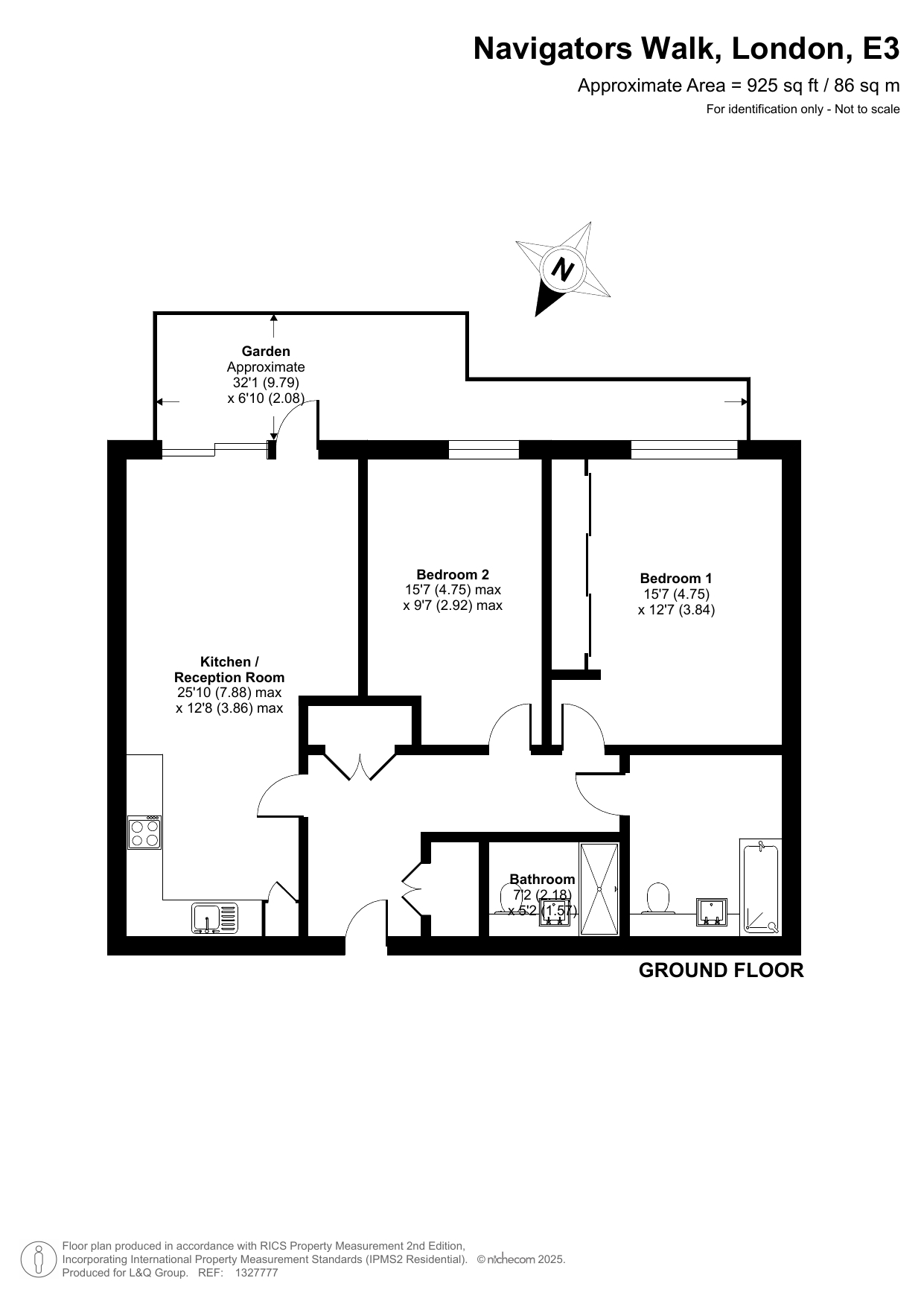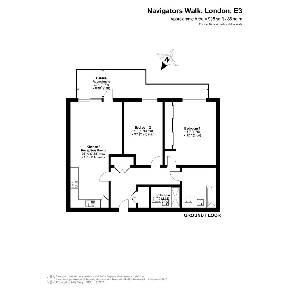 This stylish ground floor apartment is accessed via a spacious entrance hall with plenty of storage. The open plan living area opens onto a generous south facing private terrace overlooking the communal gardens. The modern kitchen includes fully integrated appliances. Both double bedrooms have the same aspect as the reception room, the larger of the two bedrooms with full width mirrored wardrobes. There are two separate contemporary bathrooms opening from the entrance hall, one with a bathtub and one with a walk-in shower.