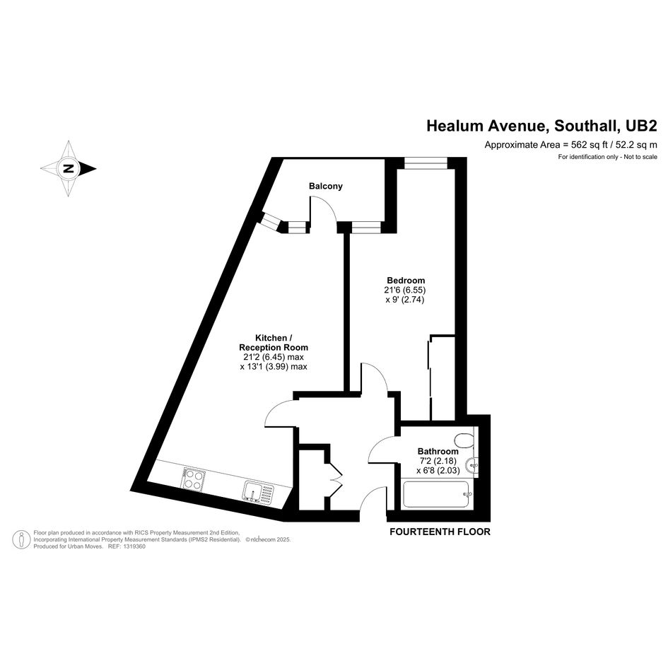 A well-presented apartment on the fourteenth floor of this recently-constructed development. The property has a spacious reception room with attractive flooring and open-plan kitchen featuring integrated appliances. A glazed door leads from the living area out to a west-facing balcony. There is a stylish, fully-tiled bathroom and a twenty-one-foot bedroom with fitted, mirror-fronted wardrobe. A storage/utility cupboard has been provided in the entrance hallway and well insulated walls, high performance glazing and a communal heating/hot water system make for a very good energy-efficiency rating. Residents of Doniford House can make use of a communal roof terrace and the cycle store. Southall Station, for Elizabeth Line services, is just a short walk away. The apartment is held on a long lease.
