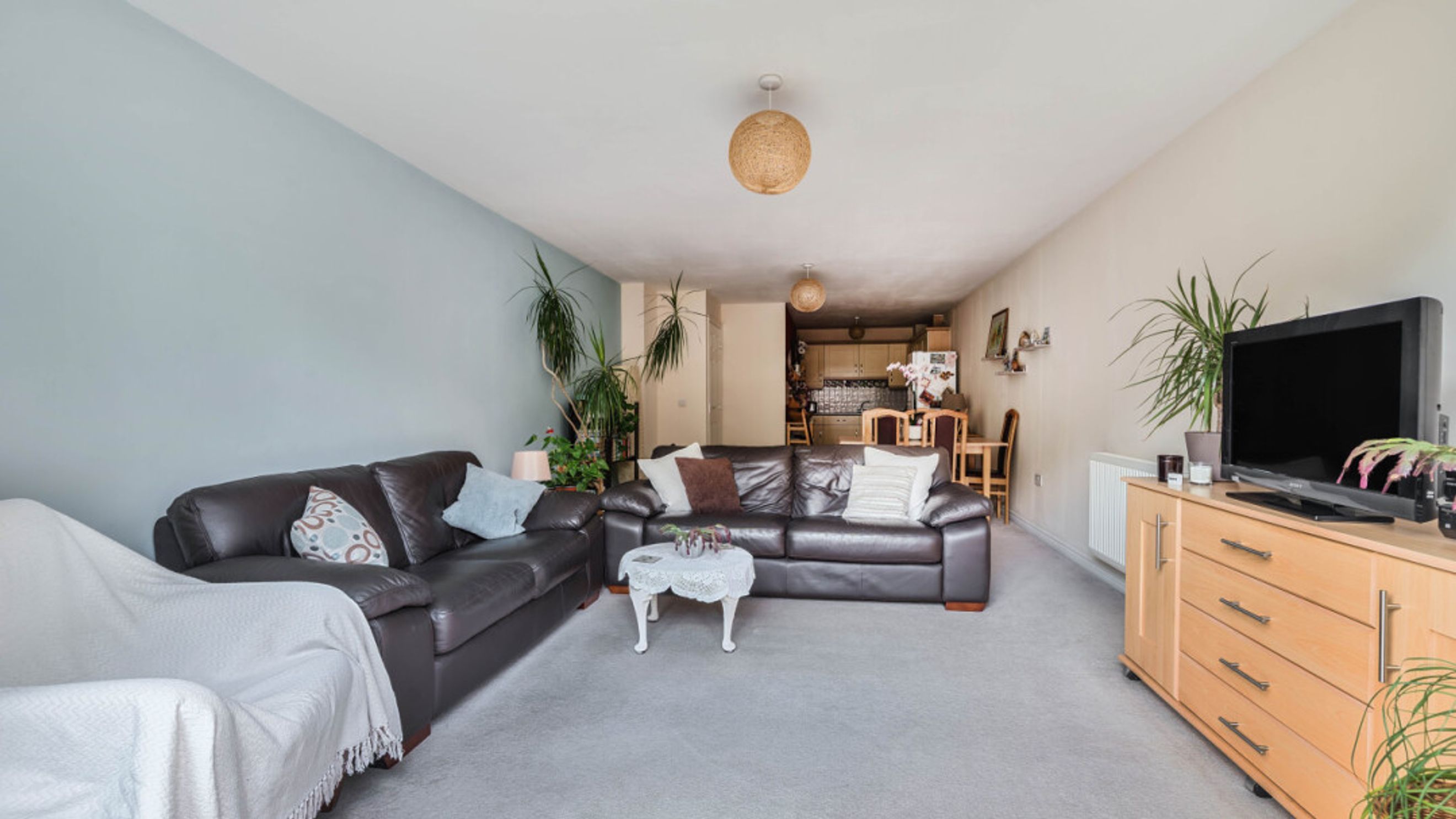 Enter this well presented apartment via a wide hallway which leads into a spacious bright and airy south facing open plan living area, which opens onto a private balcony with a view of the communal gardens. The kitchen is fitted with a range of Beech and Cream units and includes an integrated oven, hob and extractor. There are two well proportioned double bedrooms, the master benefitting from an ensuite shower room and fitted storage. A family bathroom completes the accommodation.