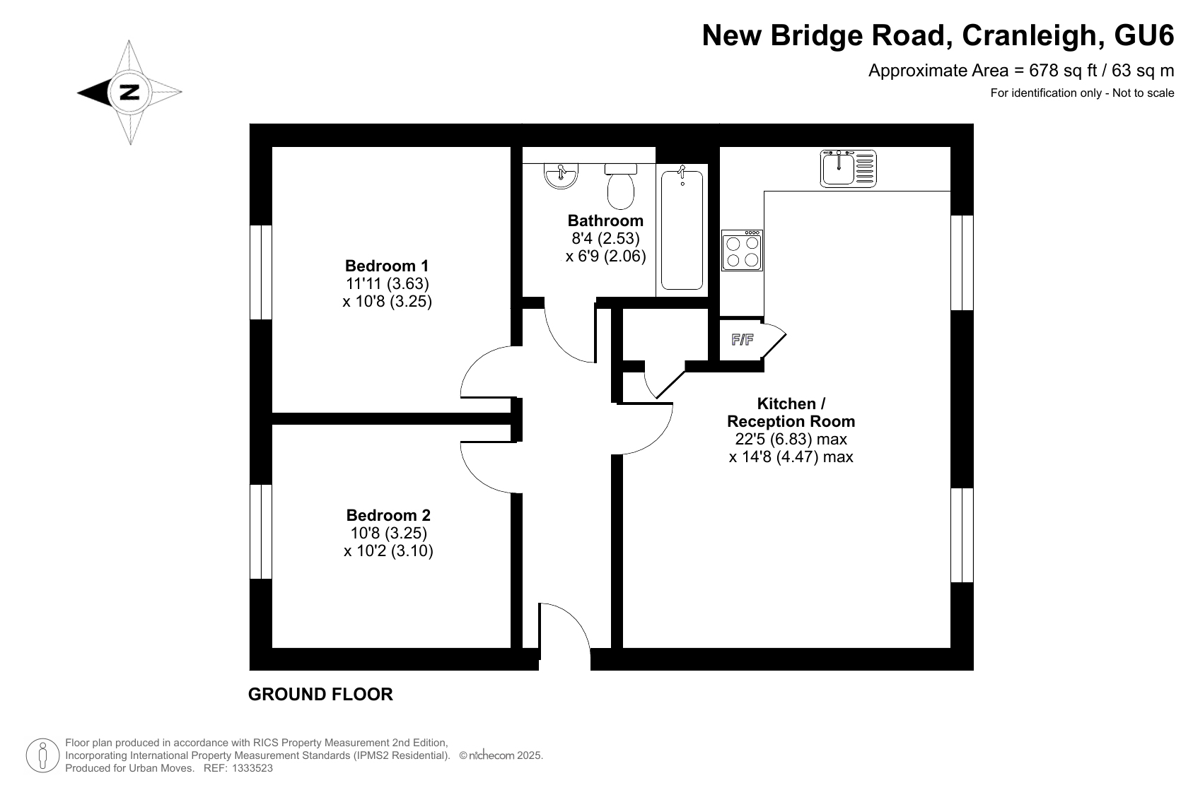 This flat is on the ground floor of an attractive building which is period in style but with the energy-efficiency benefits that well insulated walls and floor, high performance glazing and a modern gas central heating system provides. The property has a twenty-two-foot reception with semi-open-plan kitchen area featuring sleek units and integrated appliances. The bedrooms are generously-sized doubles and there is a simple yet stylish bathroom. The flat comes with use of an allocated parking space and is also within comfortable walking distance, or a brief bike ride, of Cranleigh High Street. The village, considered by some to be the largest in Britain, has an arts centre and leisure centre, along with a range of shops and other amenities. Knowle Country Park is a nearby and recently-developed nature reserve which offers beautiful, outside space to enjoy as well as hosting occasional events. Guildford is approximately eight miles to the north-west, Horsham around twelve miles south-east.