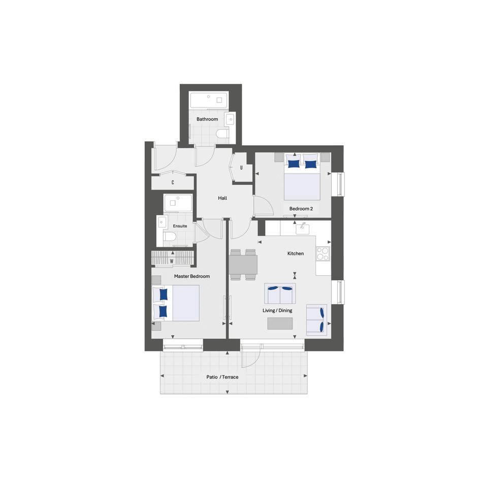 This ground-floor apartment is in a modern development and appears to have been very well looked after by the current owners. The property has a dual-aspect reception room with open-plan kitchen area featuring sleek, handle-less units and integrated appliances. A glazed door leads out to a private, south-facing patio within the gated part of the well-maintained communal gardens. There is a main bedroom with fitted, mirror-fronted wardrobe and en-suite shower room plus a second, good-sized, double bedroom and a stylish bathroom. A pair of storage/utility cupboards have been provided in the entrance hall and the energy-efficiency rating is very good, thanks to well insulated walls and floor, high performance glazing and a communal heating and hot water system. Newell House is part of the Green Quarter which has extensive grounds including attractive water features, areas of lawn and an abundance of trees and plant-life. There is also a café, gastro pub, tree nursery, playground and padel courts to be found on-site, within the development. Southall Station, for Elizabeth Line services, is only a short walk away. The apartment comes with an allocated space in the underground car park plus use of the secure bike store.
