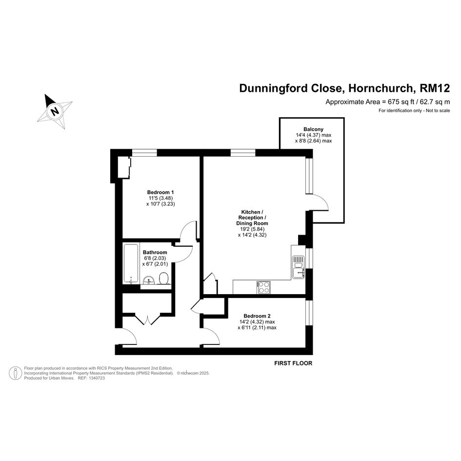 A well-presented flat on the first floor of this modern development. The property has a spacious, dual-aspect reception room with attractive flooring and a door that leads out onto a corner balcony. The open-plan kitchen features smart, walnut-style units. There is a main bedroom with fitted, mirror-fronted wardrobe (deeper than it appears due to recessed wall) plus a second bedroom, a bathroom with mosaic detailing and a pair of hallway storage/utility cupboards. Well insulated walls, modern double glazing and gas central heating make for a very good energy-efficiency rating. Ingre House is close to a range of parks and gardens including Bretons Outdoor Recreation Centre, Eastbrookend Country Park, Hacton Meadows and Chase Nature Reserve. The flat comes with use of an allocated parking space and is also within comfortable walking distance, or a brief bus/bike ride, of Elm Park Station (District Line).