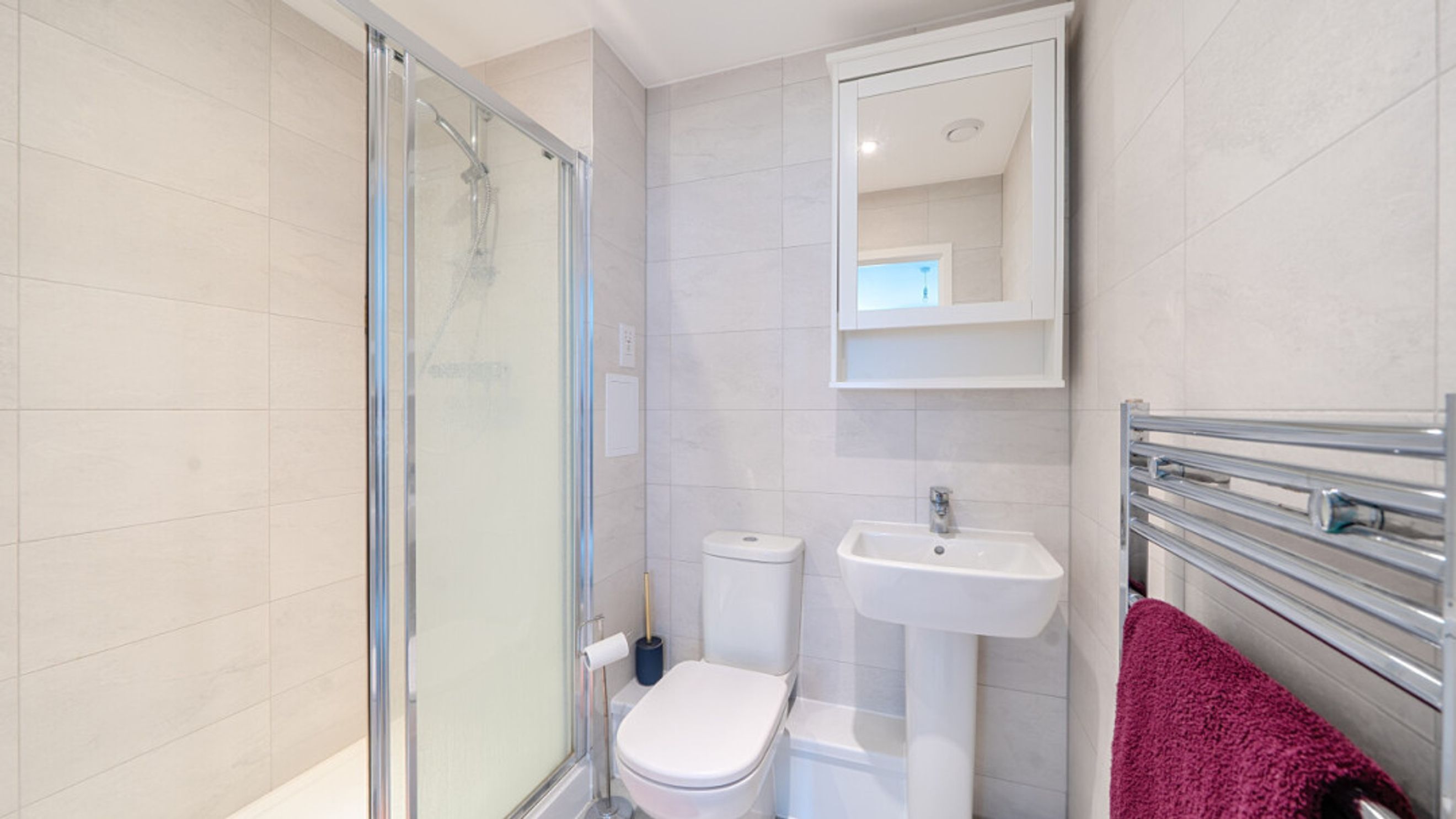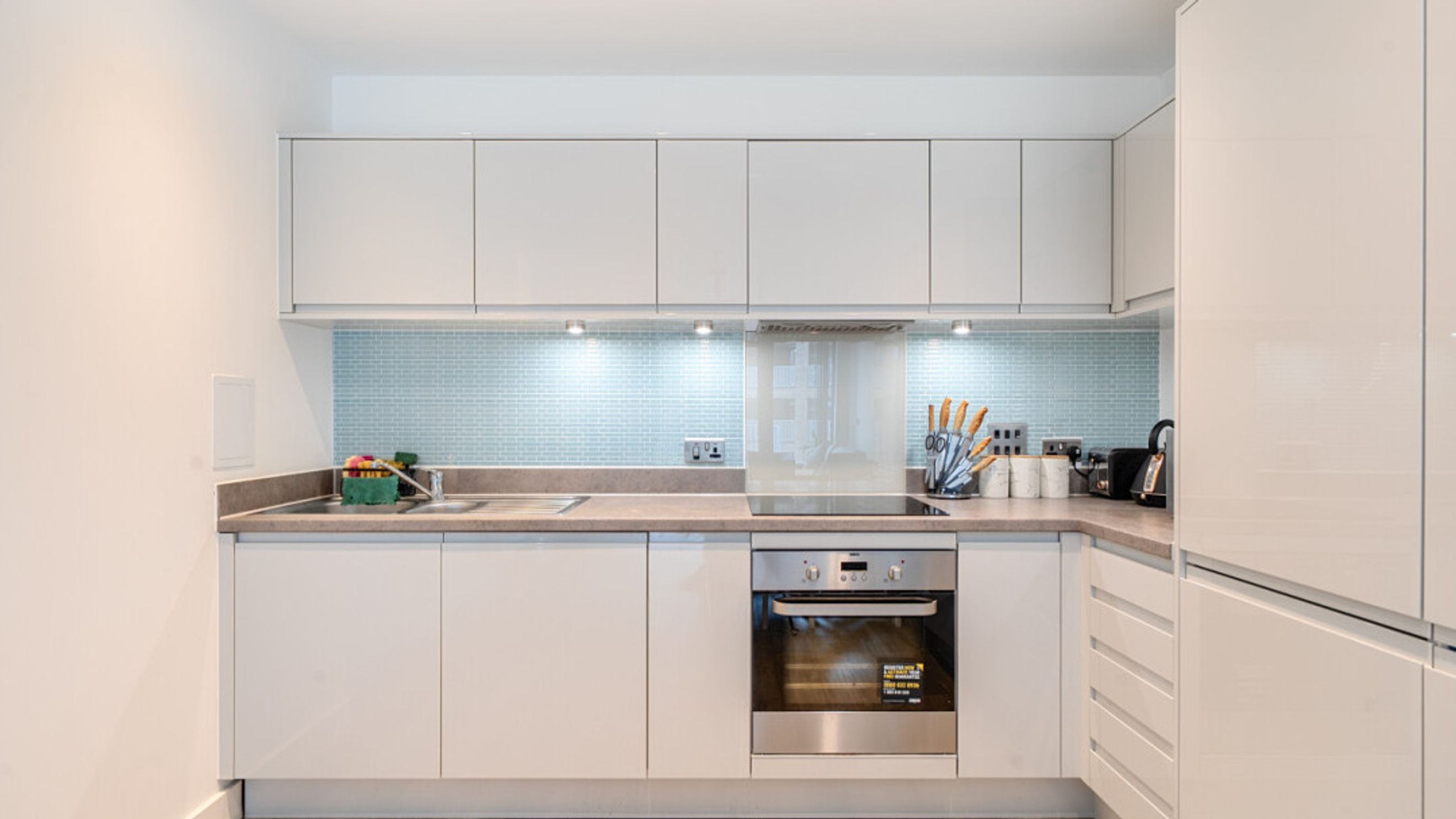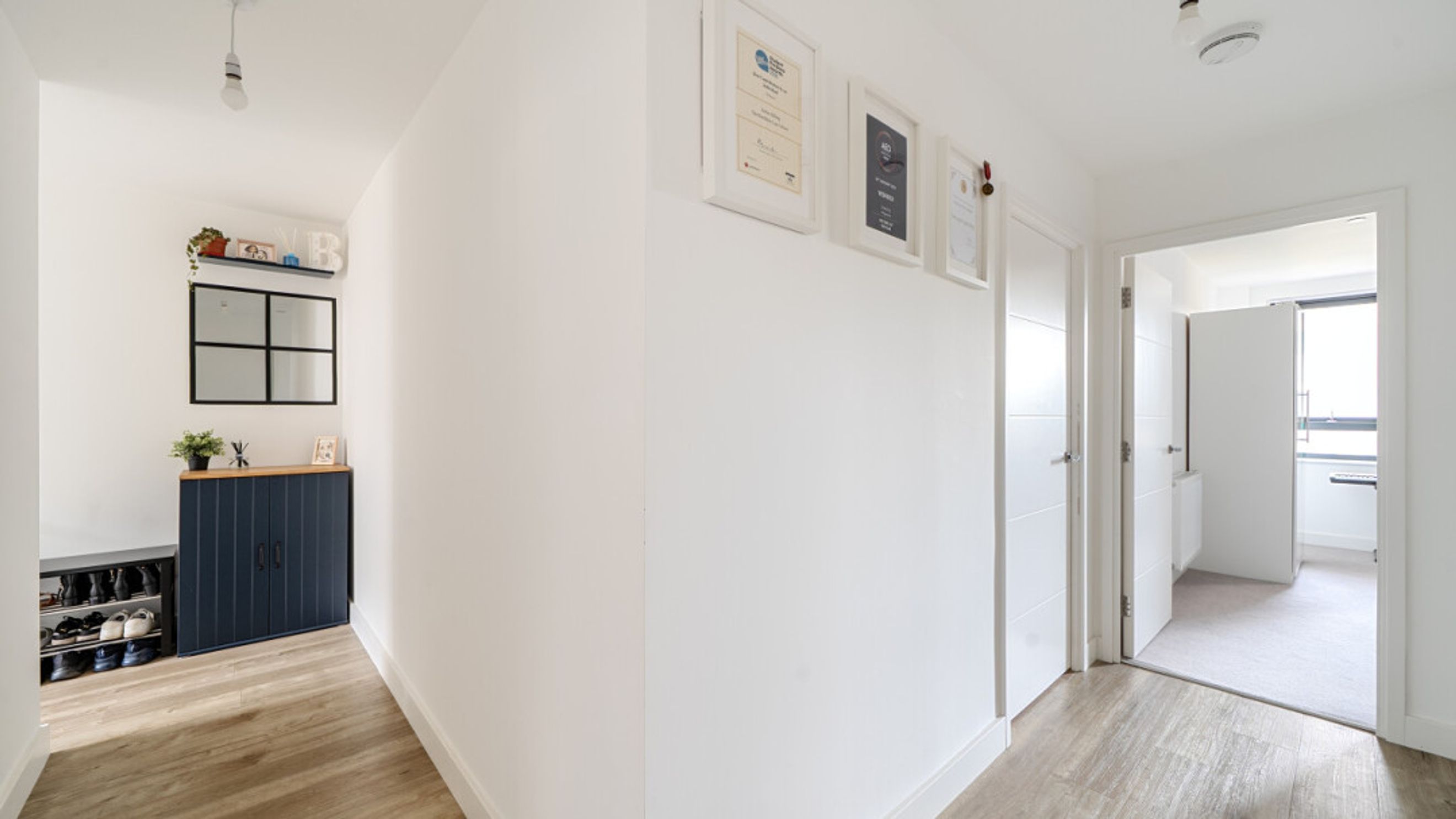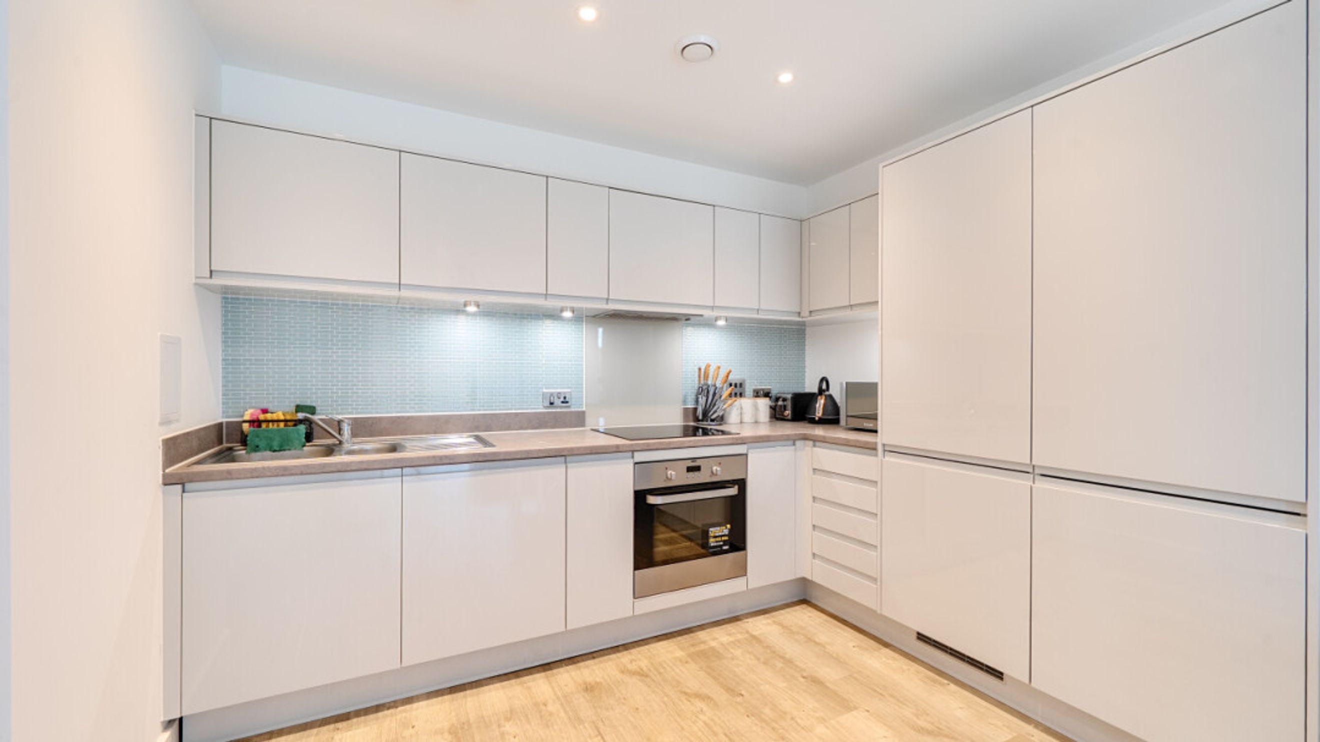 Enter this modern stylish dual aspect apartment via a spacious hallway with large storage cupboard. The large open living area incorporates a kitchen with generous storage and fully integrated appliances. The reception room opens onto a private south west facing balcony overlooking the communal gardens. There are two double bedrooms, the master with a ensuite shower room. A contemporary family bathroom serves the second bedroom.