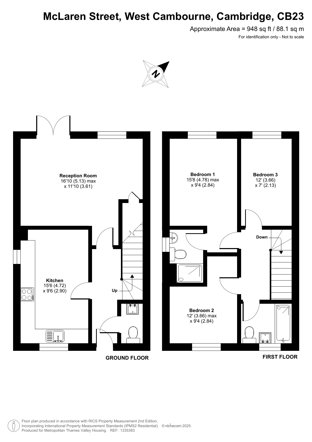 The property is spread across two floors. On the ground floor, there is a reception room, a separate kitchen, and a toilet. On the first floor, there are two bedrooms and two bathrooms.