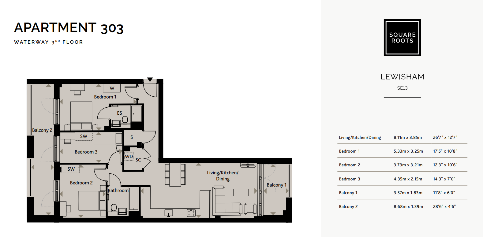 From as little as £8,188 deposit this stunning three bedroom, two bathroom 3rd floor apartment with two private balconies could be your next home.