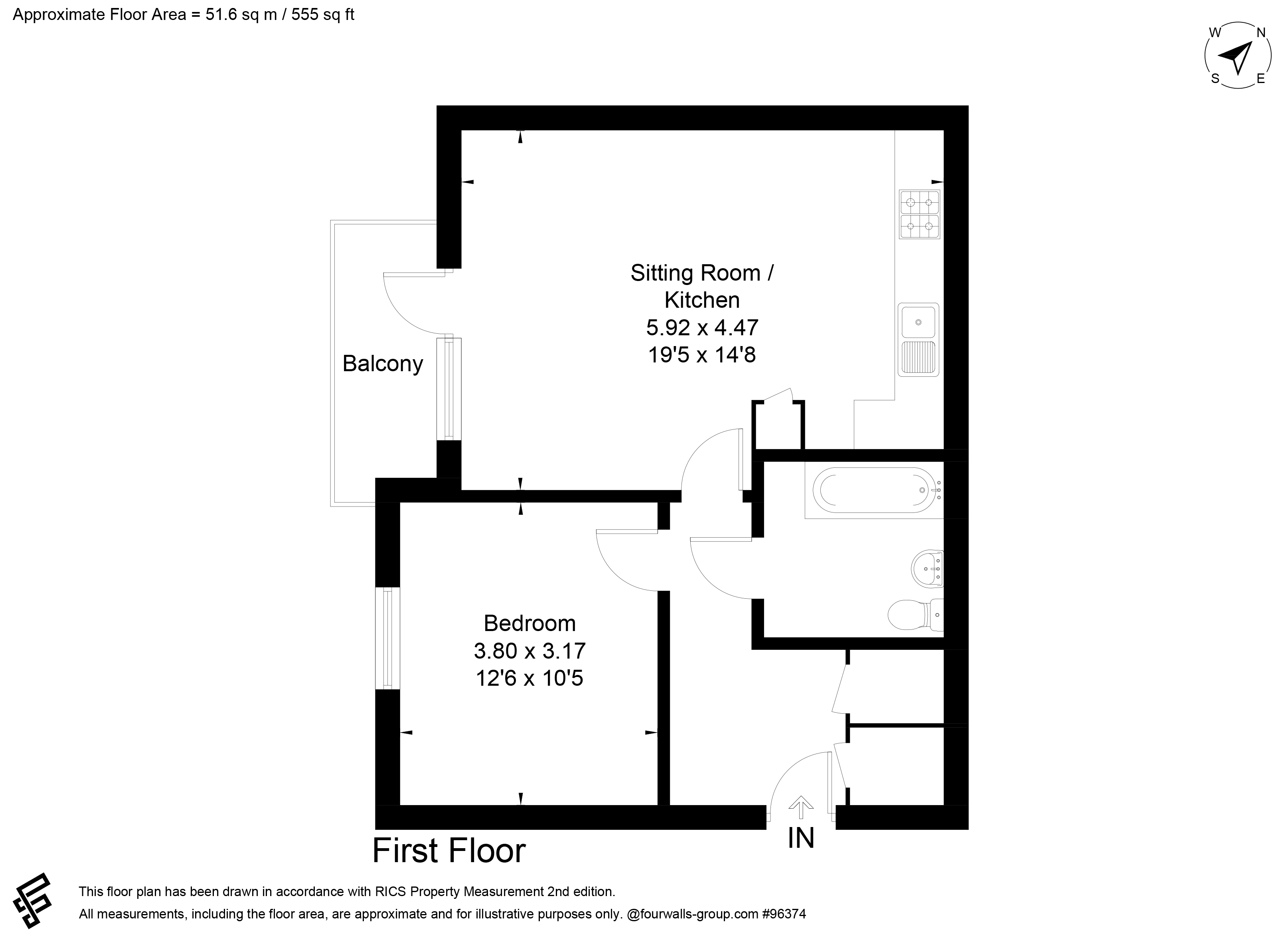 Flat 5 Harrington House is a well-presented one-bedroom apartment situated on the first floor of a modern five-storey block built in 2007. The property benefits from secure door entry access and offers a generous gross internal floor area of 51.6 sqm.