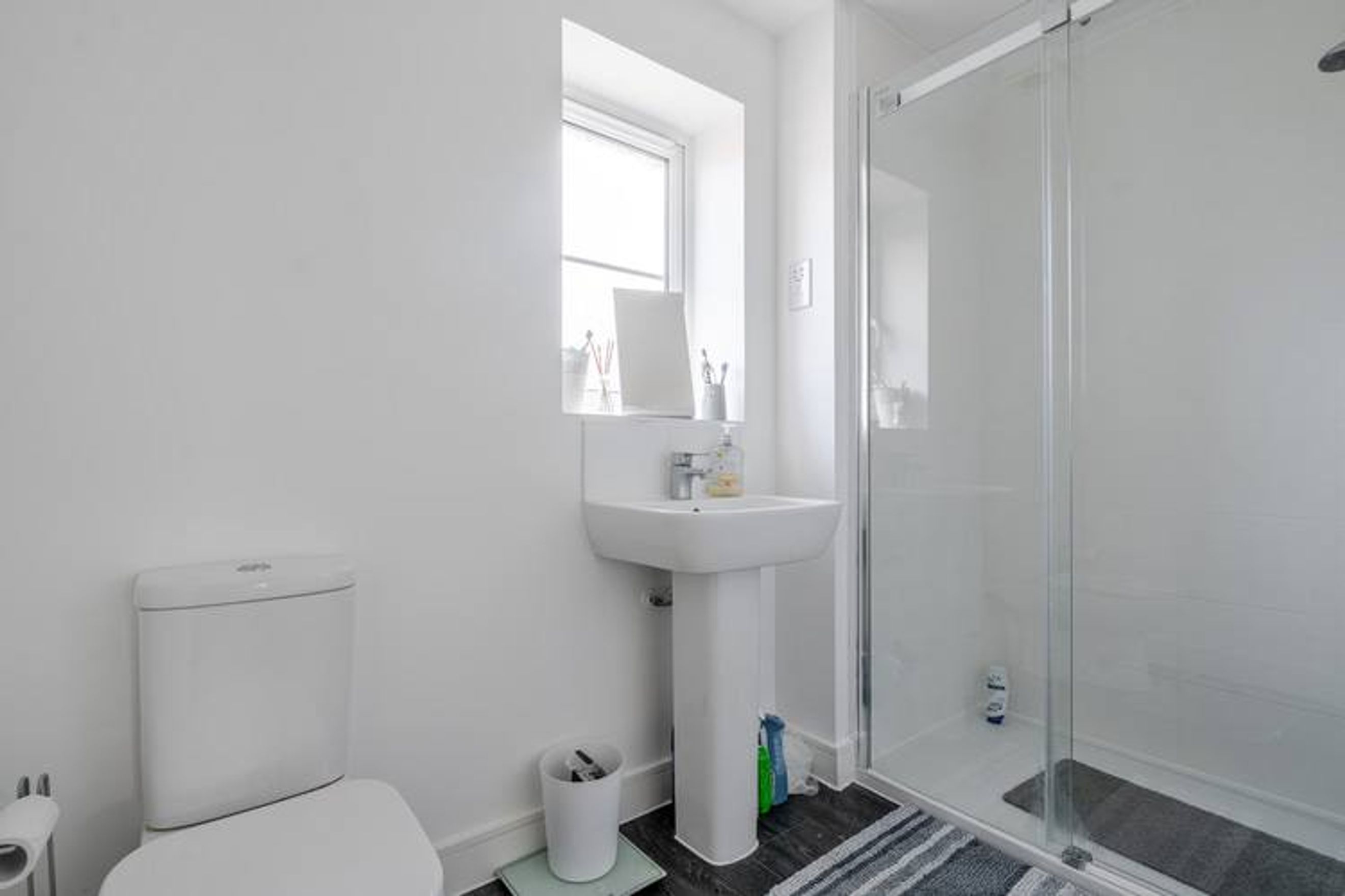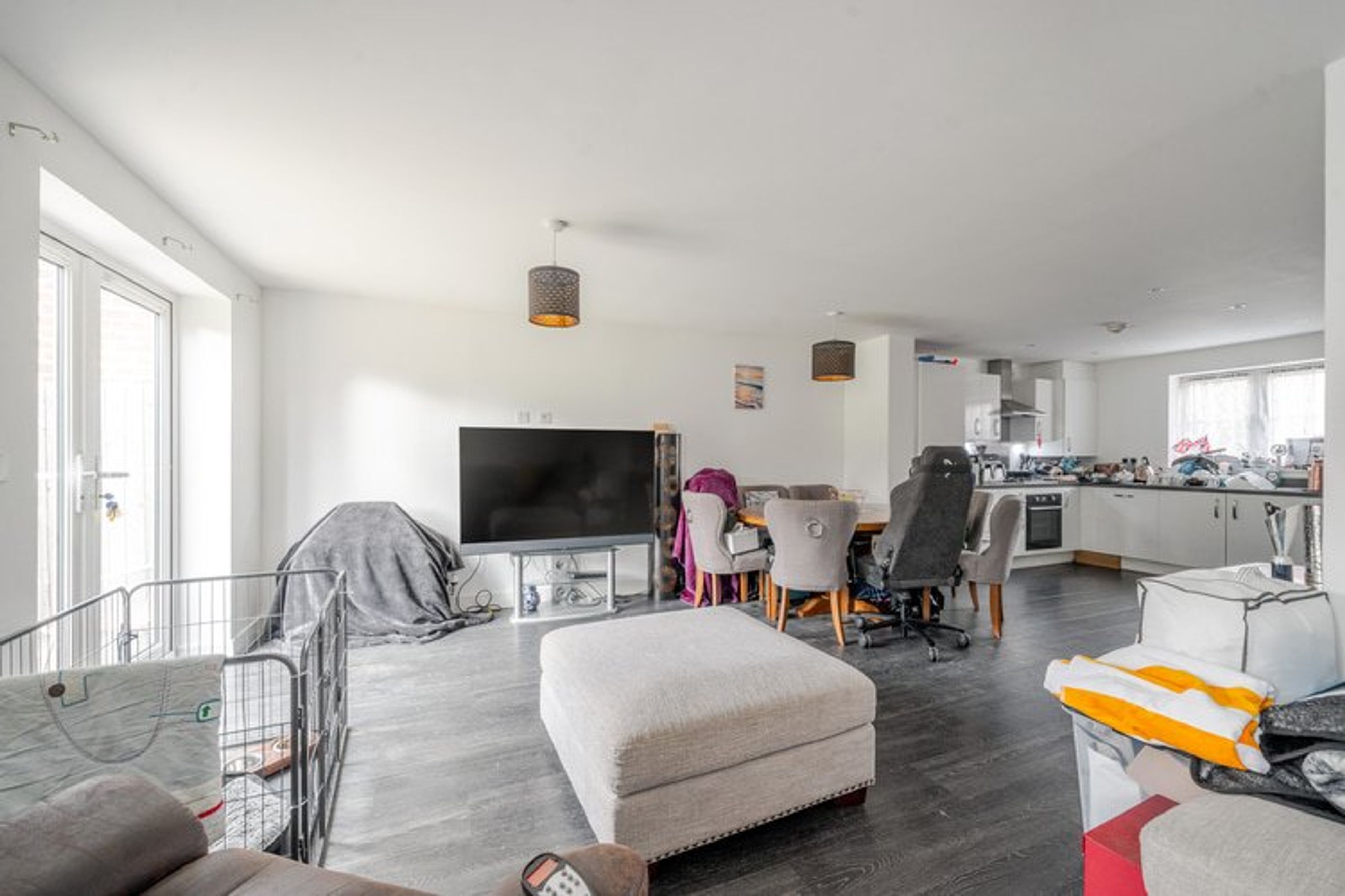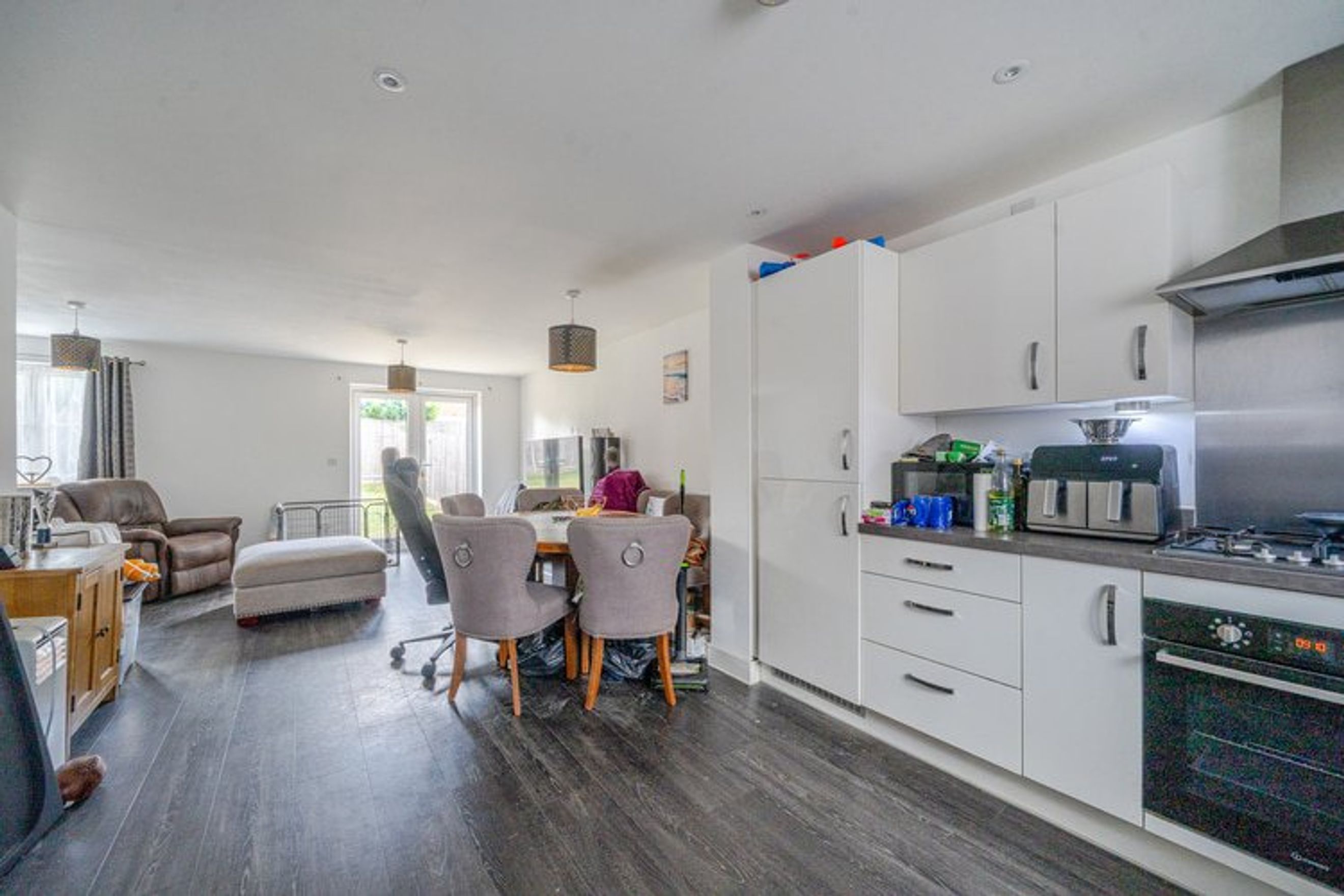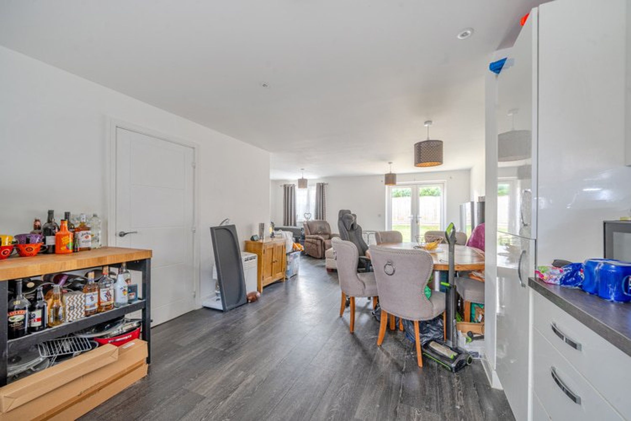 The ground floor comprises an entrance hall, a spacious living room with a modern open-plan kitchen and a WC. On the first floor are three double bedrooms (one en-suite) and a bathroom.