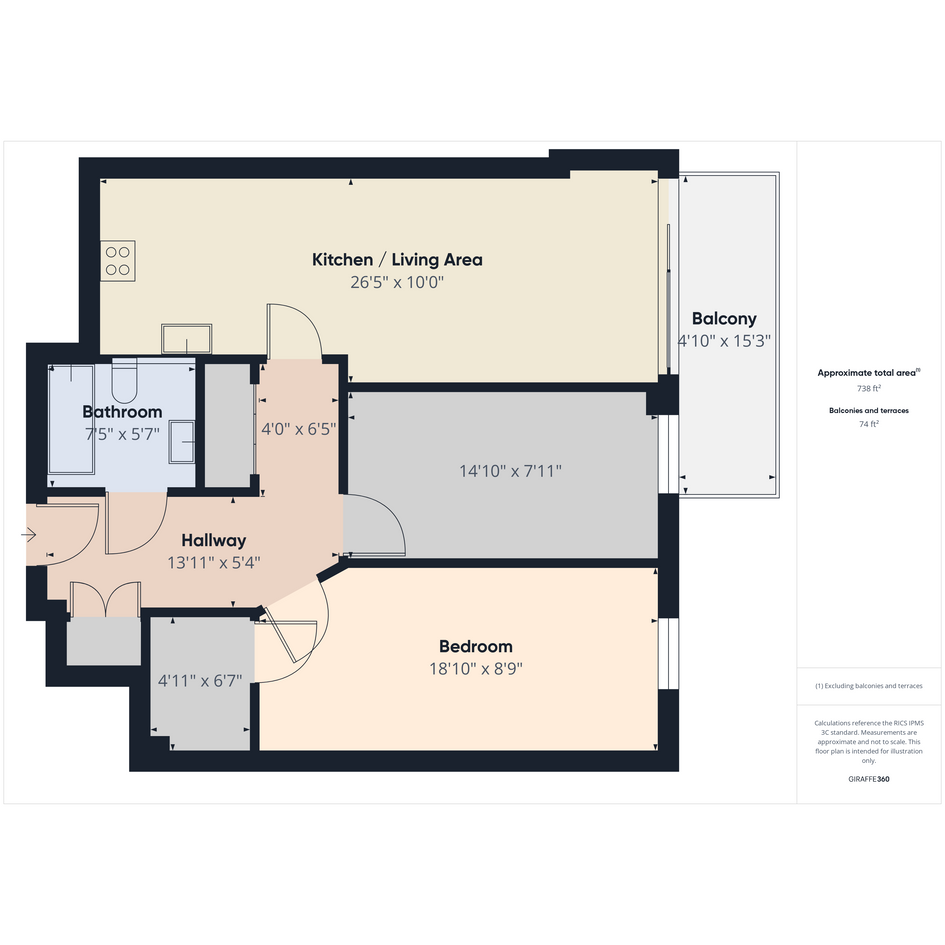 Spanning an impressive 738 square feet, this flat is thoughtfully arranged off a central hallway, providing a practical layout that maximises space and comfort. The reception room is a welcoming area, perfect for relaxation or entertaining guests. The two bedrooms are well-proportioned, ensuring ample room for furnishings and personal touches.