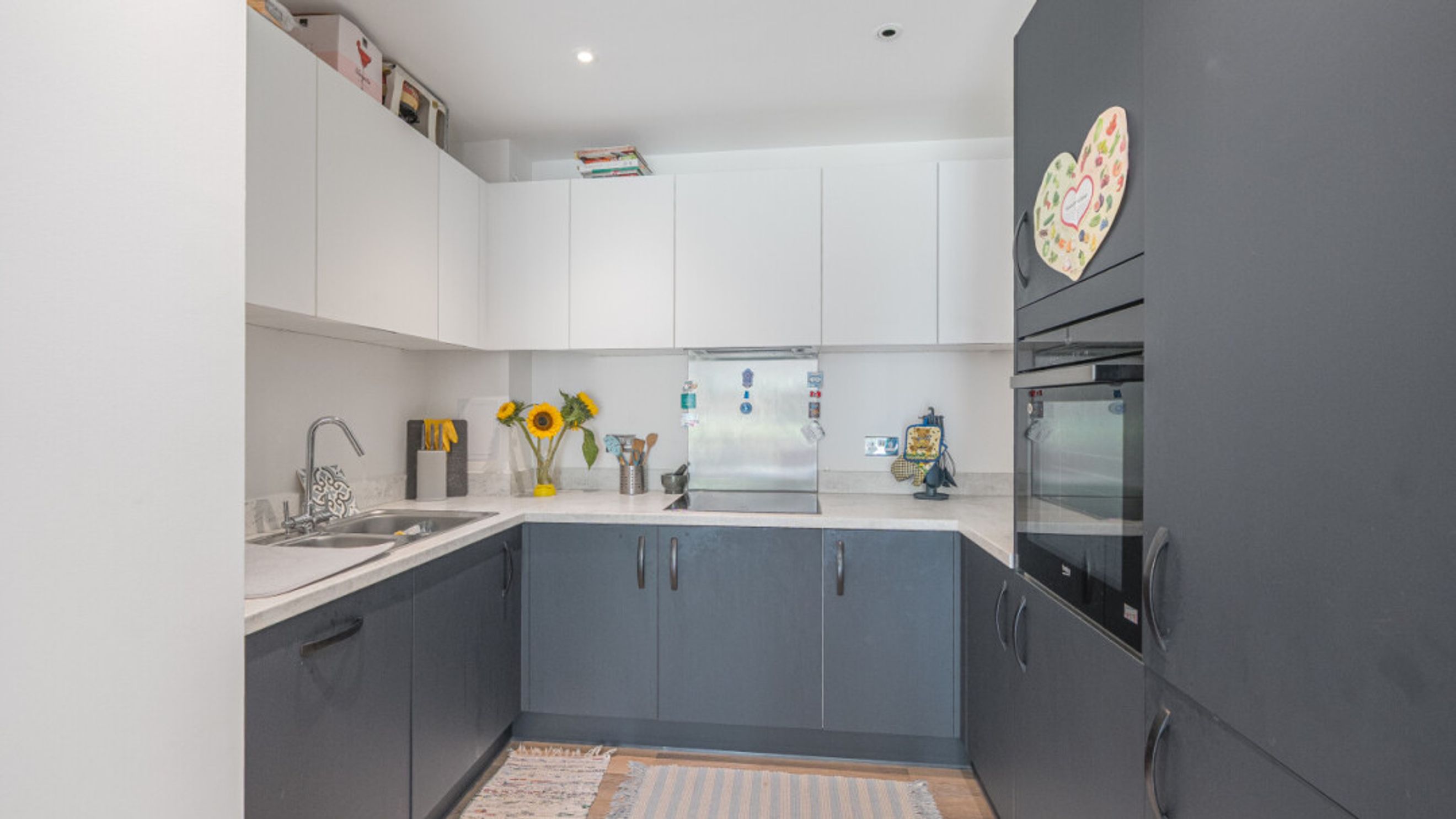 This modern apartment was constructed in 2023. Enter via a hallway with large storage cupboard. An open plan living area incorporating a two-tone Symphony kitchen with integrated appliances, opens onto a lovely south east facing patio, which overlooks the communal garden and childrens play area and is large enough to relax and dine. The spacious bedroom, overlooks the patio and has a fitted wardrobe. A contemporary bathroom completes the accommodation.