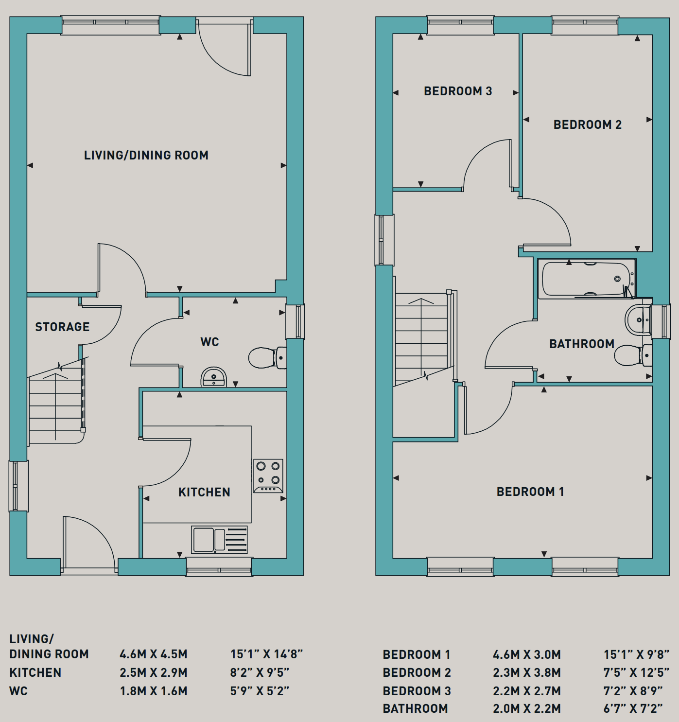 This spacious three bedroom mid terrace home features an open-plan living/dining room leading to the garden. Downstairs there's also a separate kitchen and WC. Upstairs you'll find three bedrooms and a bathroom.