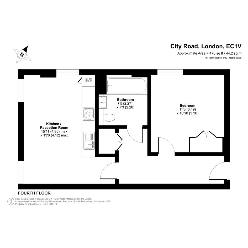 This immaculately-presented apartment is the fourth-floor corner unit so benefits from a reception room with an additional side window. The kitchen is open-plan with pale units, a contrasting worktop and integrated appliances. The bedroom also gains more natural light, due to the location of the apartment, and includes a built-in wardrobe. There is a utility cupboard in the hallway and a spacious and attractive bathroom. Well insulated walls, high performance glazing and a communal heating and hot water system all contribute towards a very good energy-efficiency rating. Fable Apartments is part of a modern development, with smart communal areas and large cycle store, located alongside City Road Basin. Residents can also make use of a high-spec gym/spa for a low monthly cost. Nearby Graham Street Garden provides pleasant outside space, Angel and Old Street are only a short walk away and the heart of The City is within easy reach.