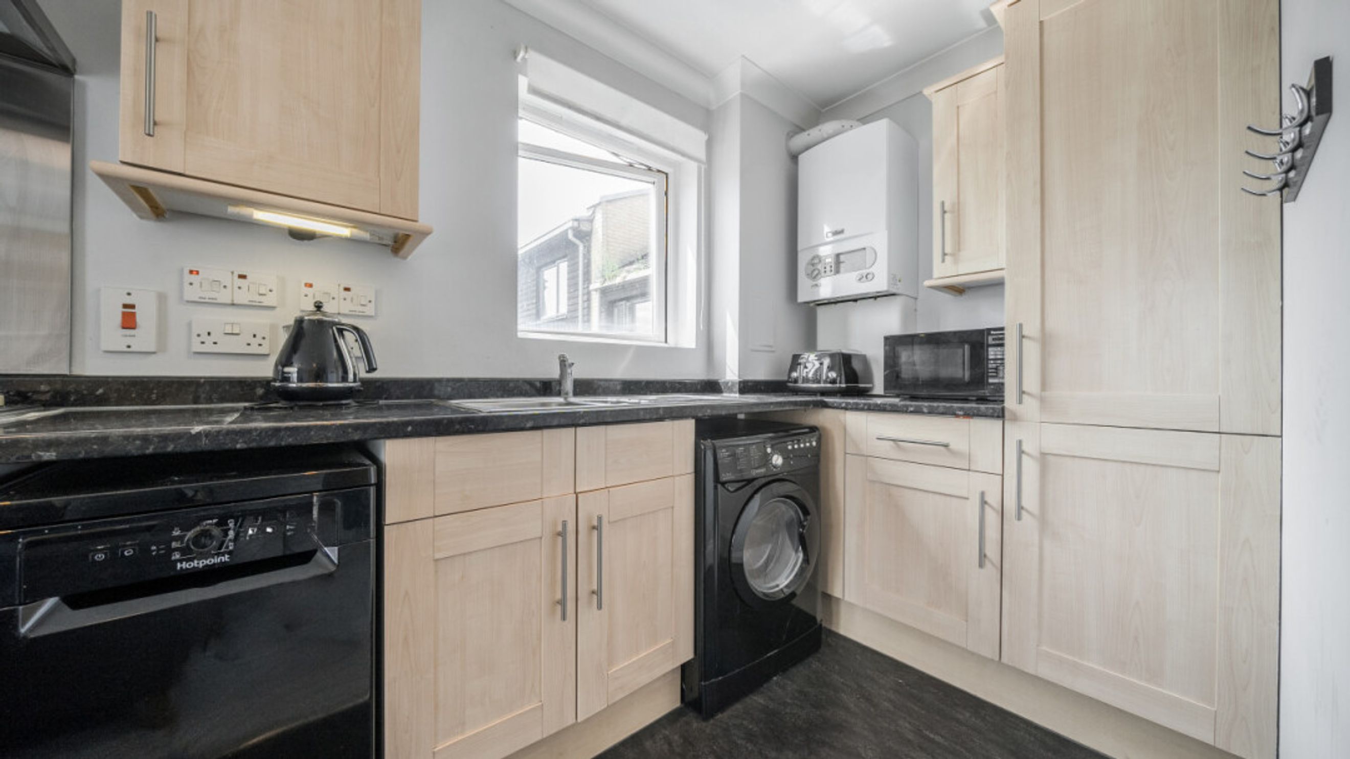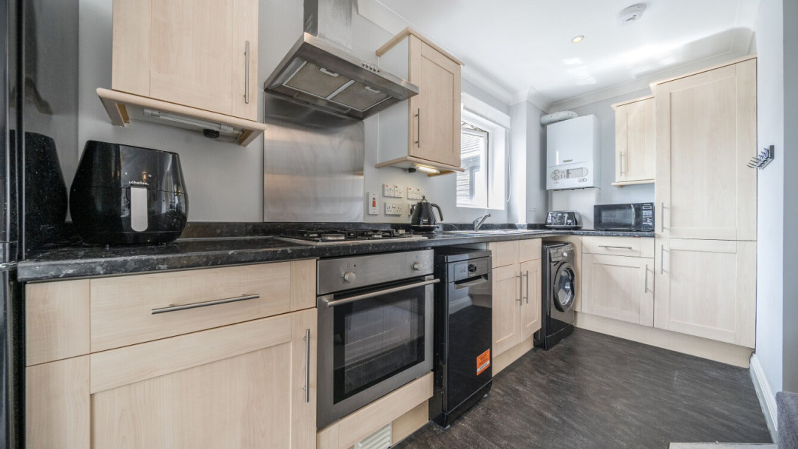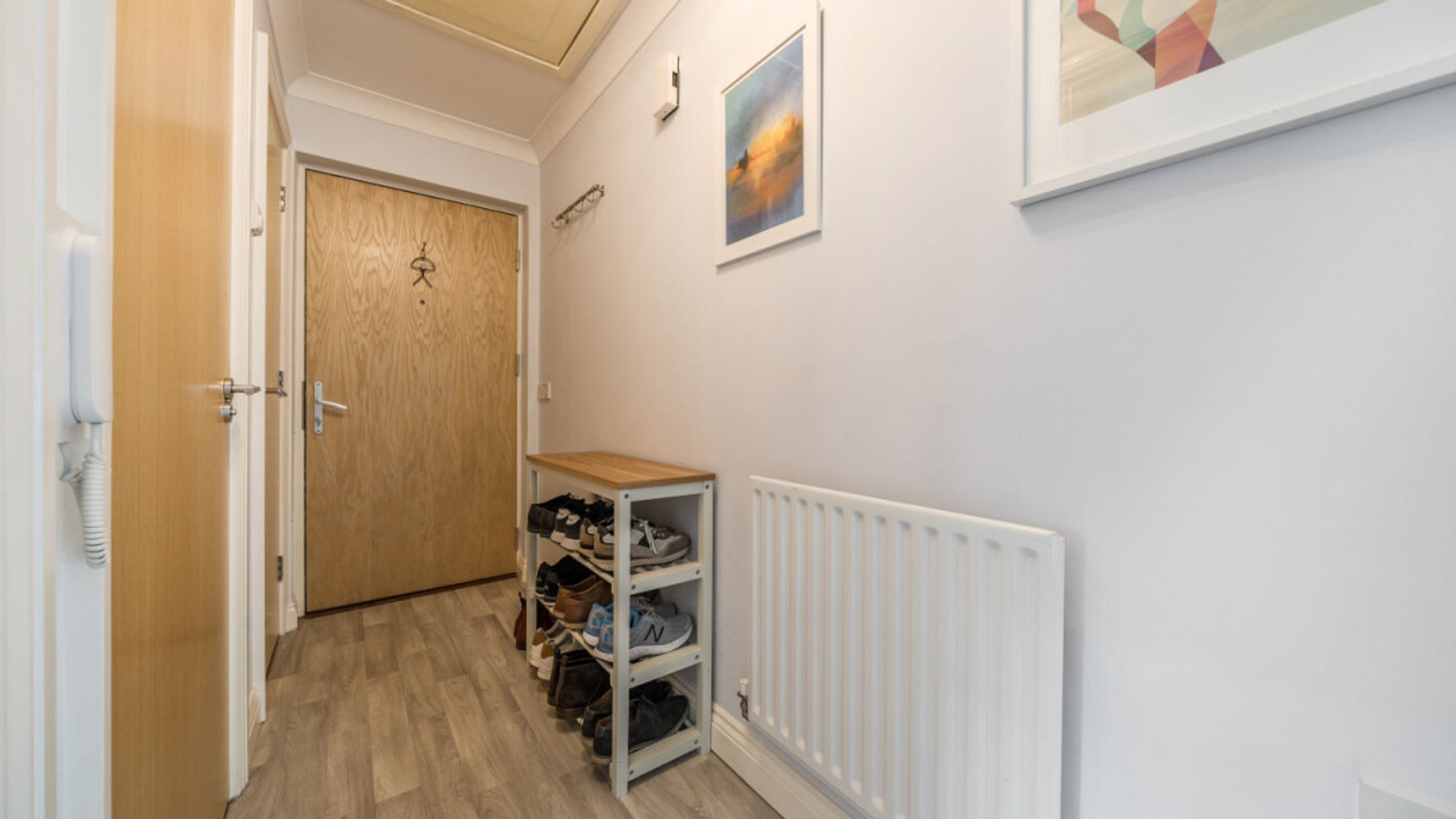 Enter this larger than average well presented apartment via a spacious entrance hall with storage. A generous dual aspect open plan living area, with additional storage cupboard, opens onto a south facing balcony. The kitchen is fitted with a range of Beech units with black worktops and inludes an integrated oven, hob and extractor and spaces for your appliances. A south facing well proportioned bedroom with in-built storage and a contemporary bathroom complete the accommodation.