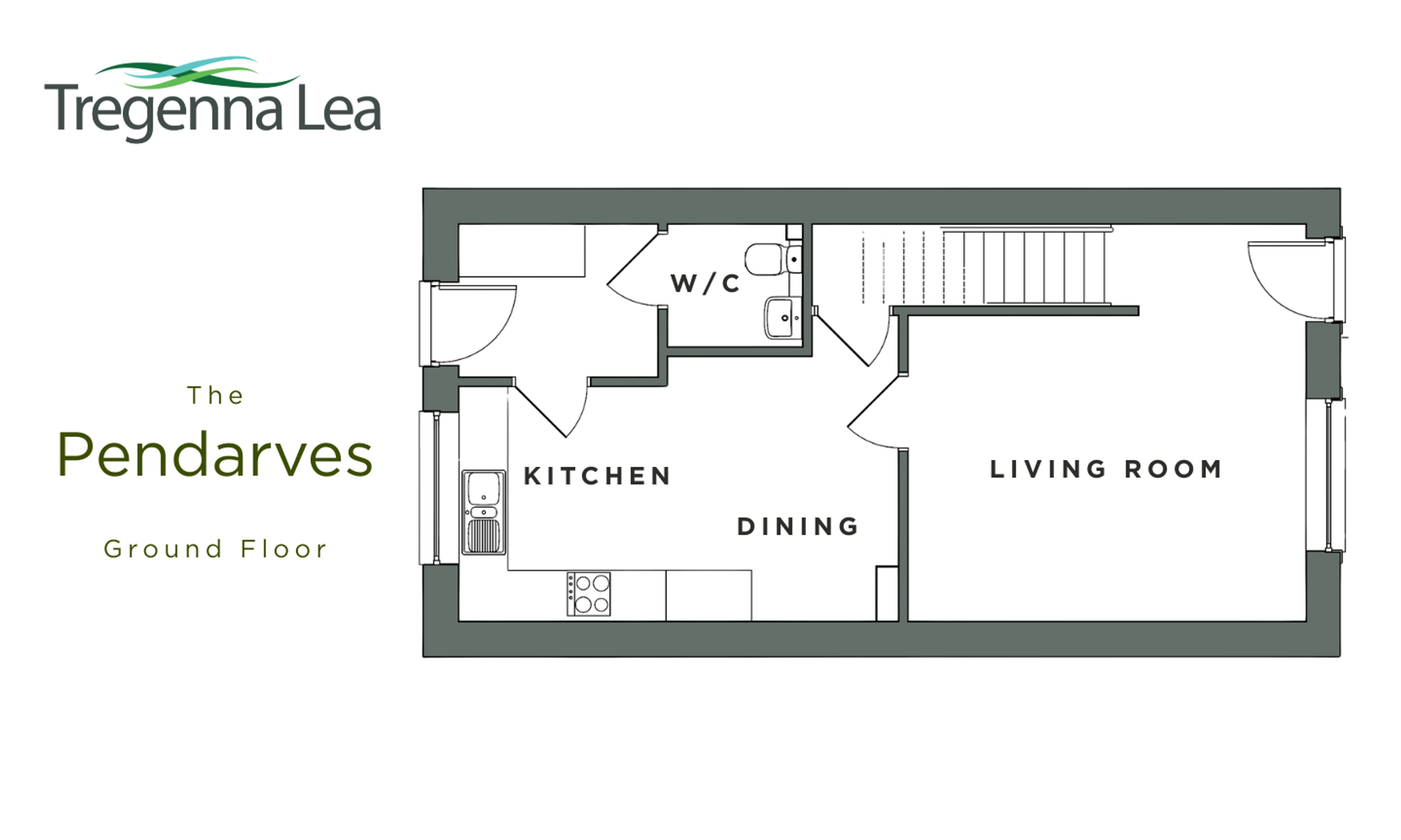 Tregenna Lea features a two-bedroom house and three-bedroom house, both equipped with an air source heat pump, a private rear garden and two parking spaces. Inside, the kitchens have been fitted with Kitchen Kit PG 1 units in matt white with chrome handles, and the bathrooms come with Ideal Tempo sanitaryware and ceramic tiling.