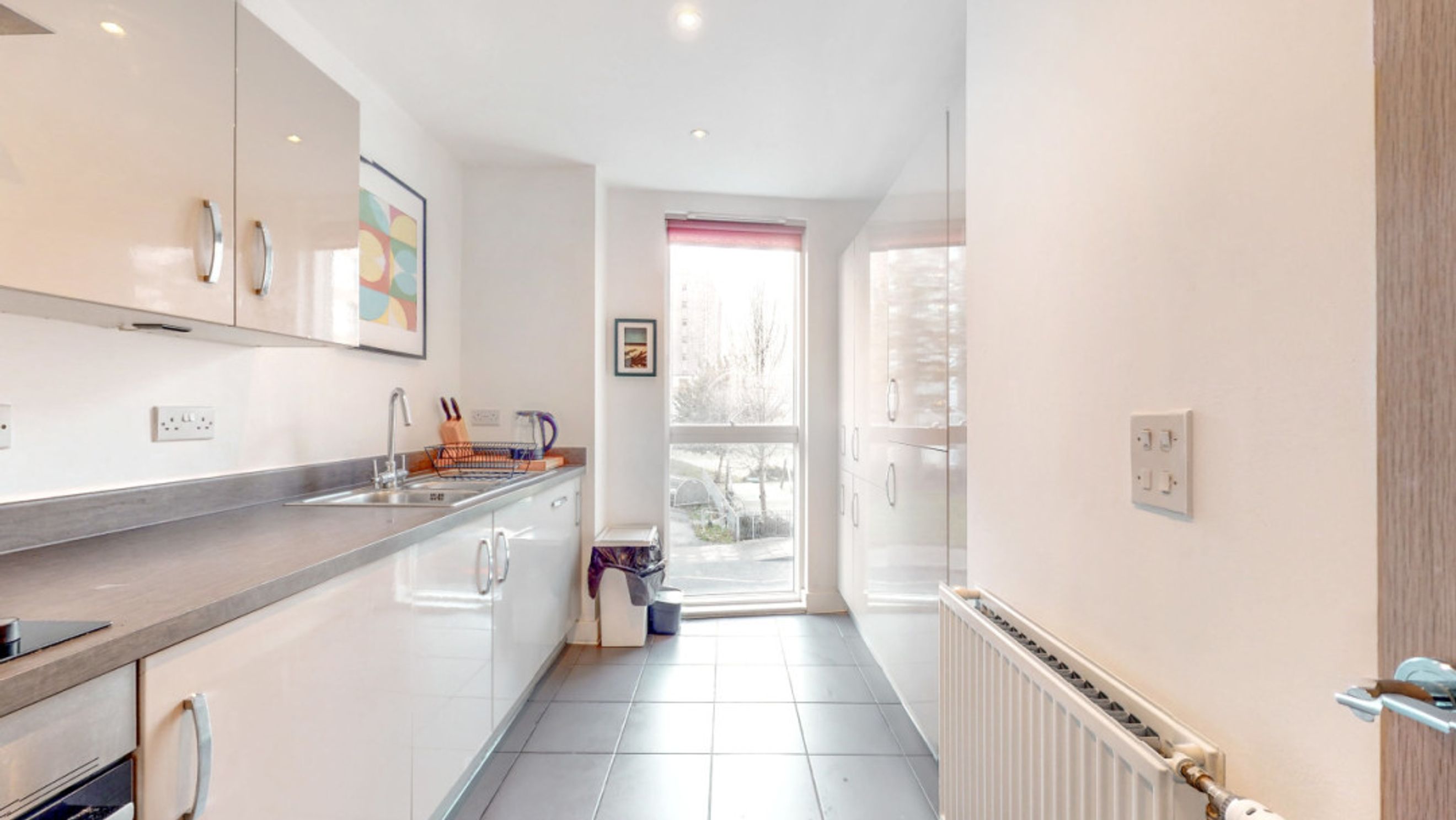 Enter this this well presented two-bedroom, two-bathroom, south facing apartment via a spacious hallway with storage. There is a separate kitchen fitted with high gloss units and including fully integrated appliances. The generous reception room features floor to ceiling windows opening onto a balcony large enough to dine and relax. One of the two well proportioned double bedrooms includes an en-suite shower room and fitted wardrobe. The other bedroom is served by a contemporary family bathroom.