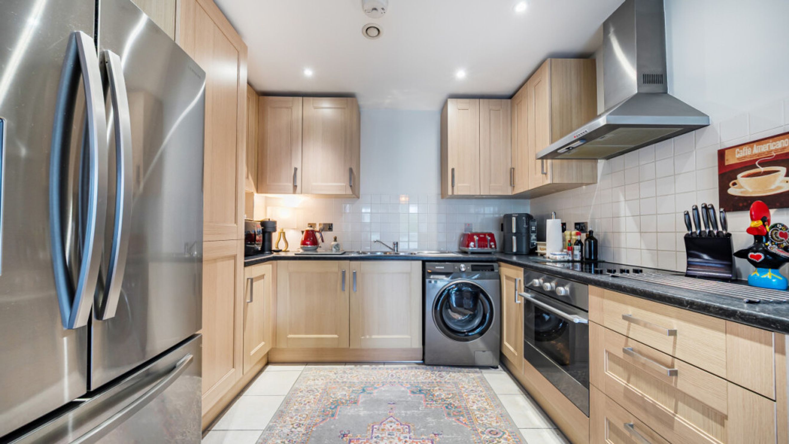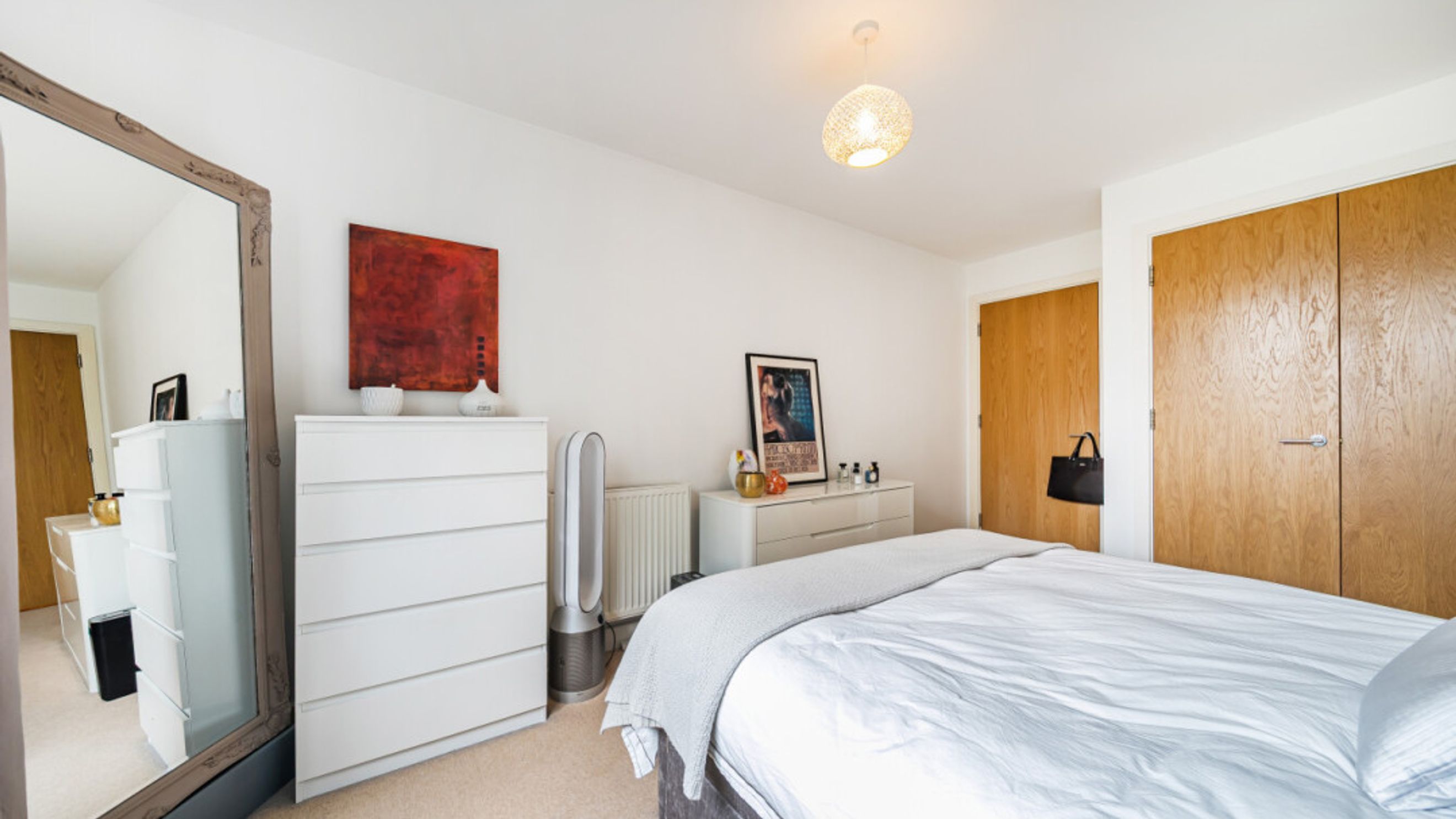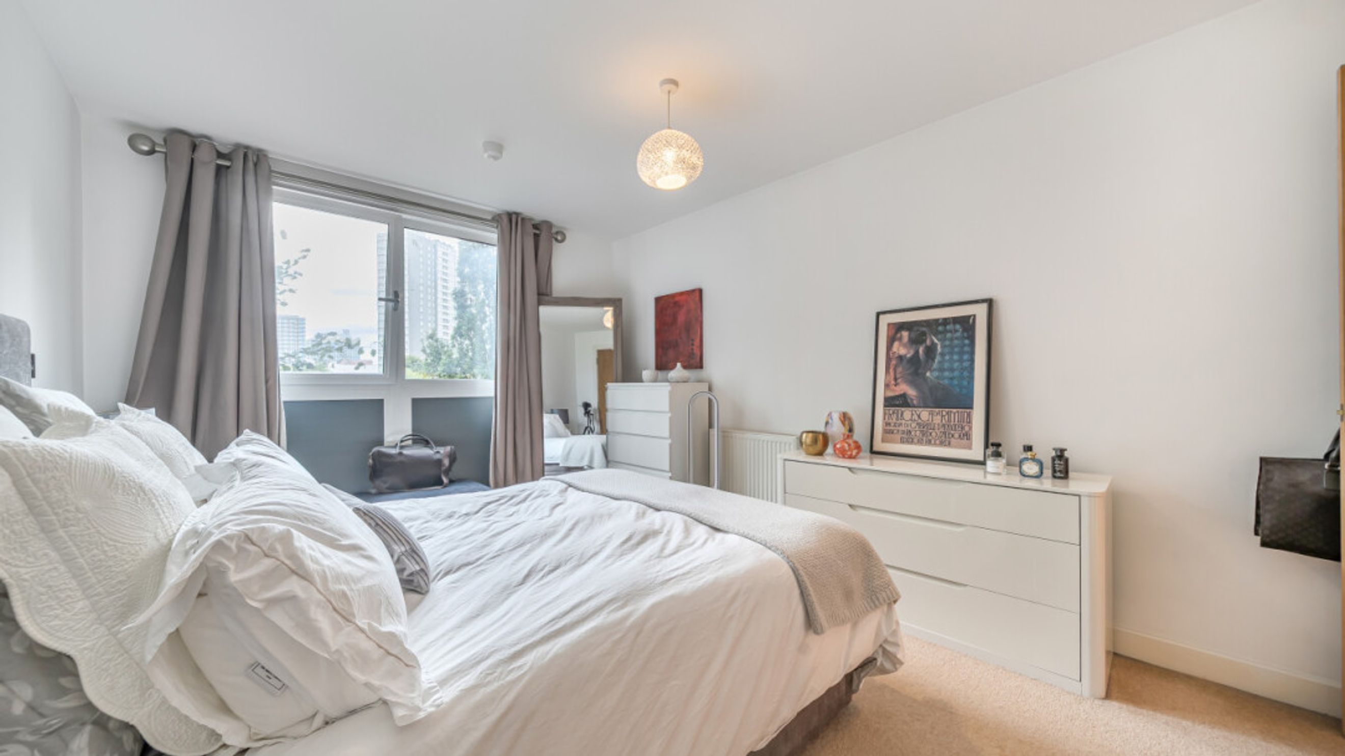 This bright and spacious well presented two bedroom apartment consists of a open-plan kitchen and living area, flooded with natural light from wide floor-length windows and a door leading to a private west facing balcony over looking communal gardens and Stratford Eye. The kitchen is fitted with beech wall and base units, with a black worktop. The kitchen also benefits from integrated appliances including a fridge freezer, oven, hob, extractor fan and dishwasher. There are two double bedrooms, the master benefitting from built-in wardrobes. The bathroom comes complete with a white three-piece suite with a shower over bath.