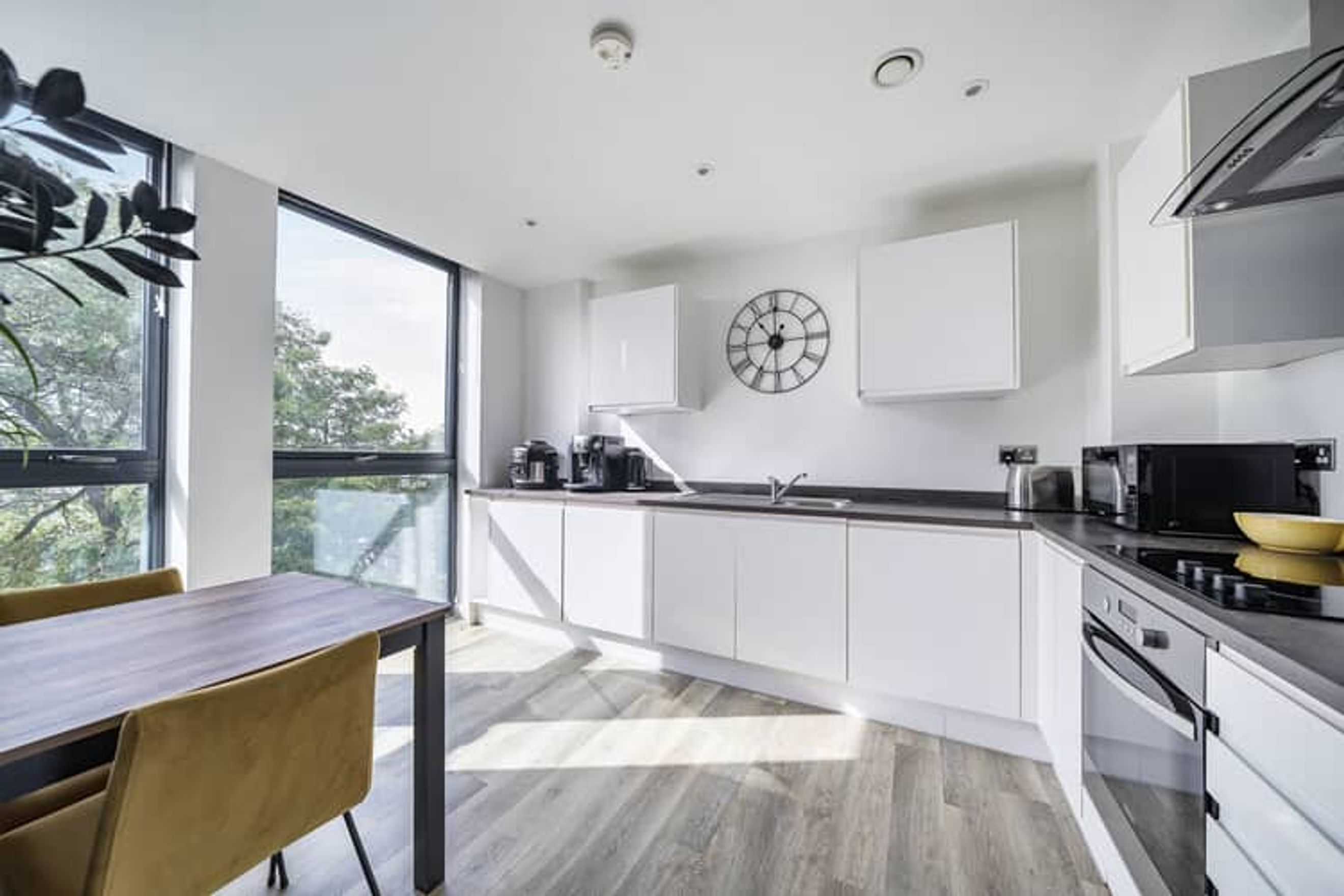 The railway station is also very close, about a 6-minute walk, where a direct train can lead to London in half an hour. Road travel is also convenient, thanks to the M3 motorway, about a 10-minute drive away. Heathrow Airport is also quite close, about a 20-minute drive away or by a direct bus in 45 minutes.