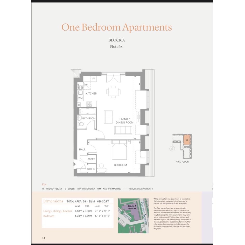 This spacious one-bedroom apartment is located on the third floor and boasts the largest layout of its type within the development. The bright and airy open-plan living and dining area is flooded with natural light from large windows, and is complemented by a contemporary fitted kitchen offering ample storage and generous worktop space.