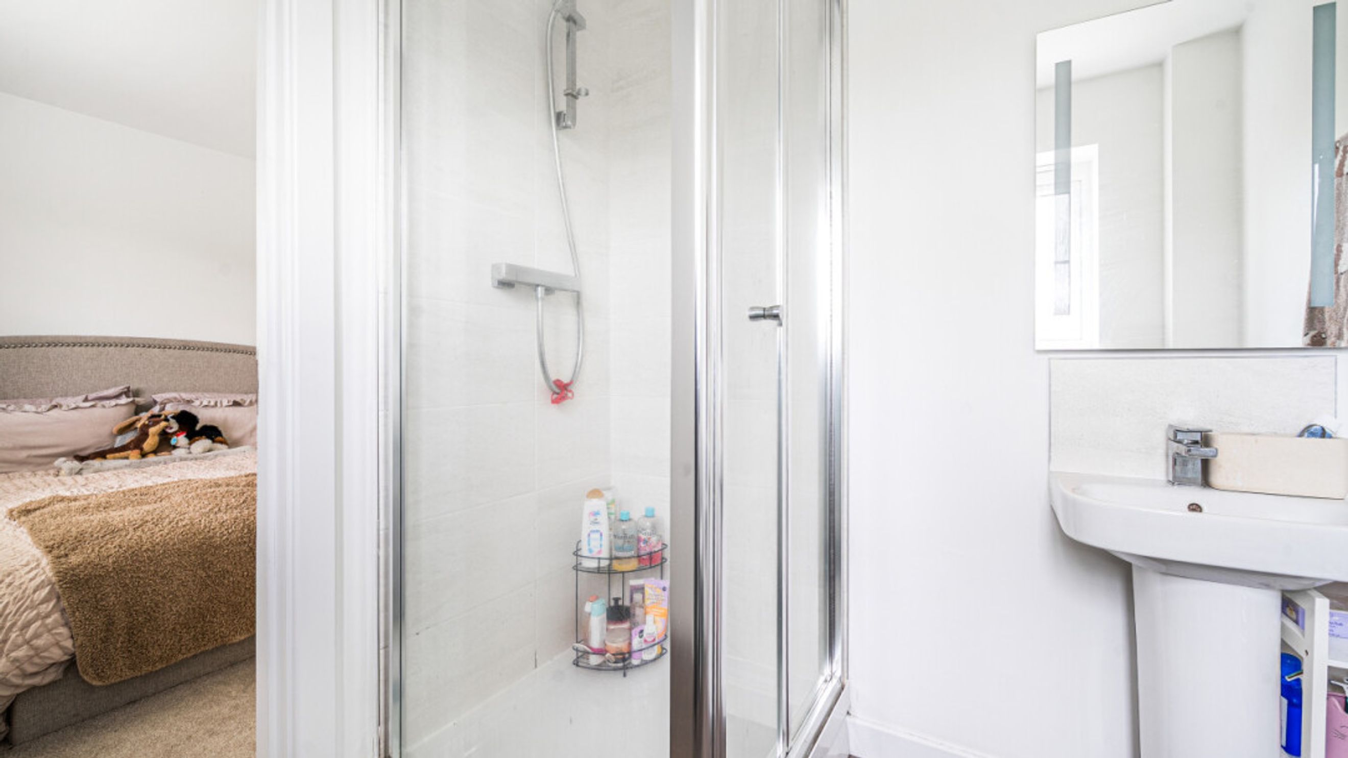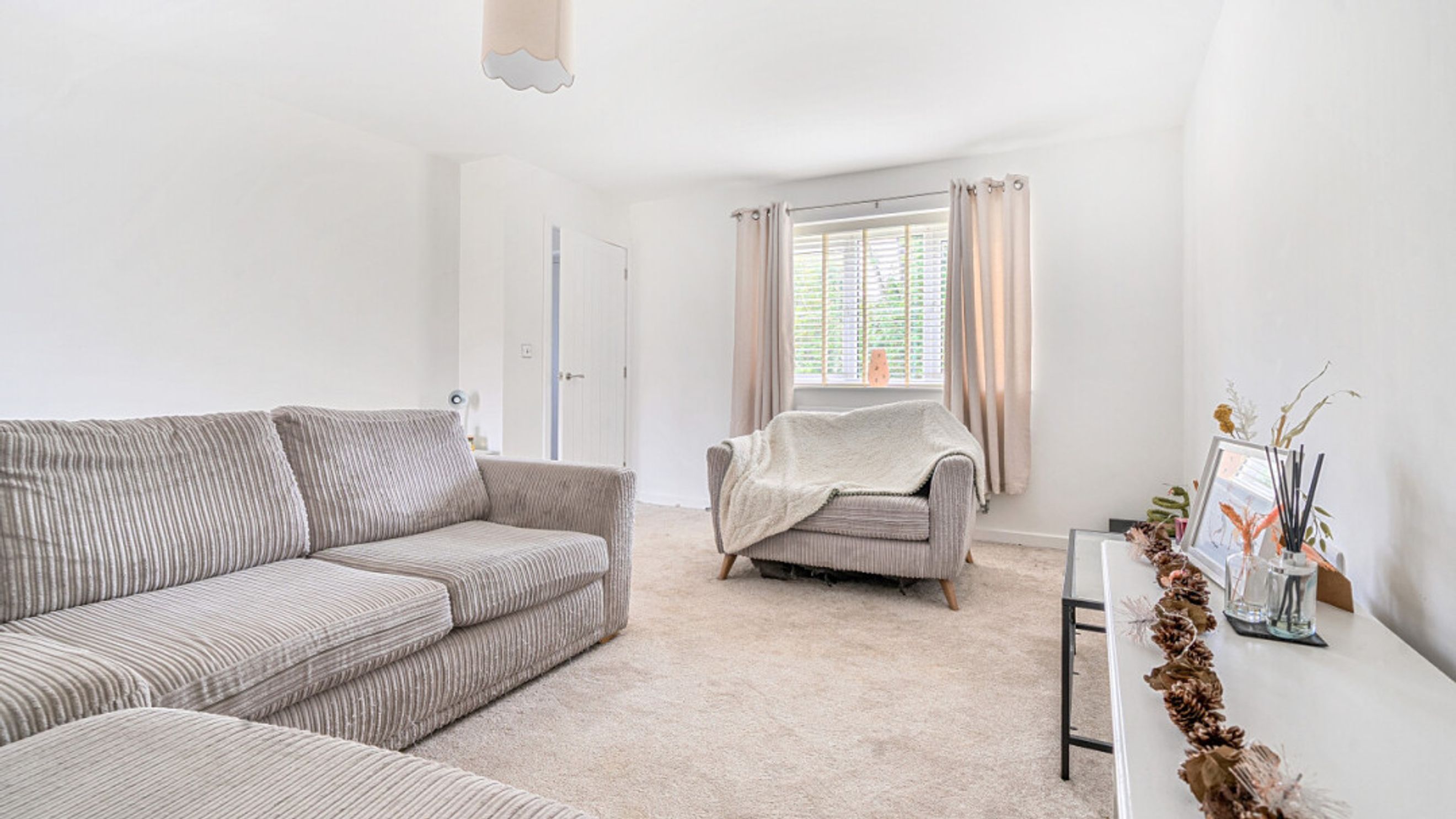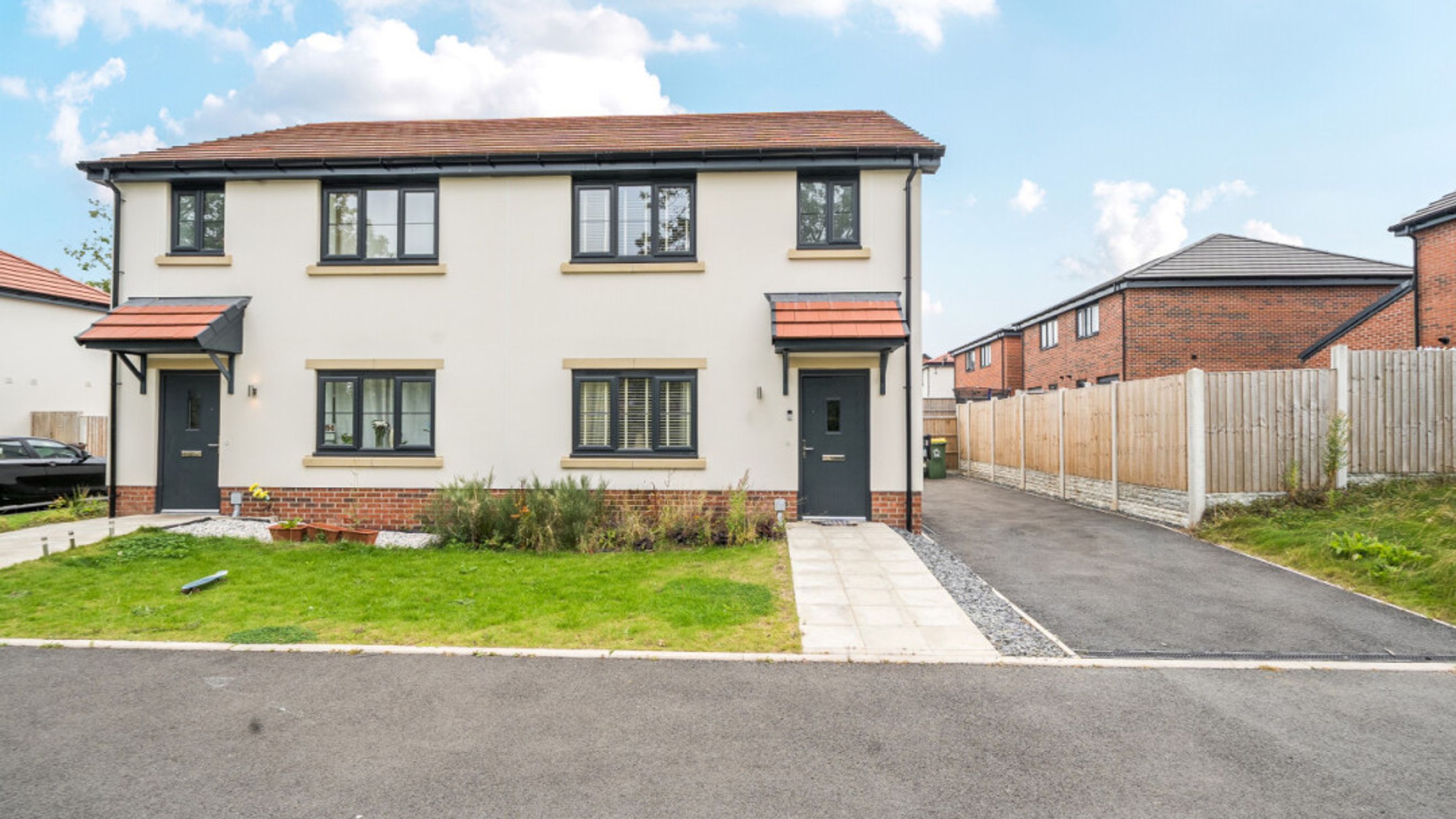 This bright and spacious semi-detached modern house, flooded with natural light, The kitchen is fitted with integrated appliances including a fridge freezer, oven, hob, extractor fan and dishwasher. Spacious main double bedroom benefitting from en-suite with shower. Bright and airy second double bedroom and a third which would be great use for a home office or is currently used as a dressing room. The bathroom comes complete with a white three-piece suite with a shower over bath and a stone tile surround. Additional storage cupboards and private driveway for multiple vehicles