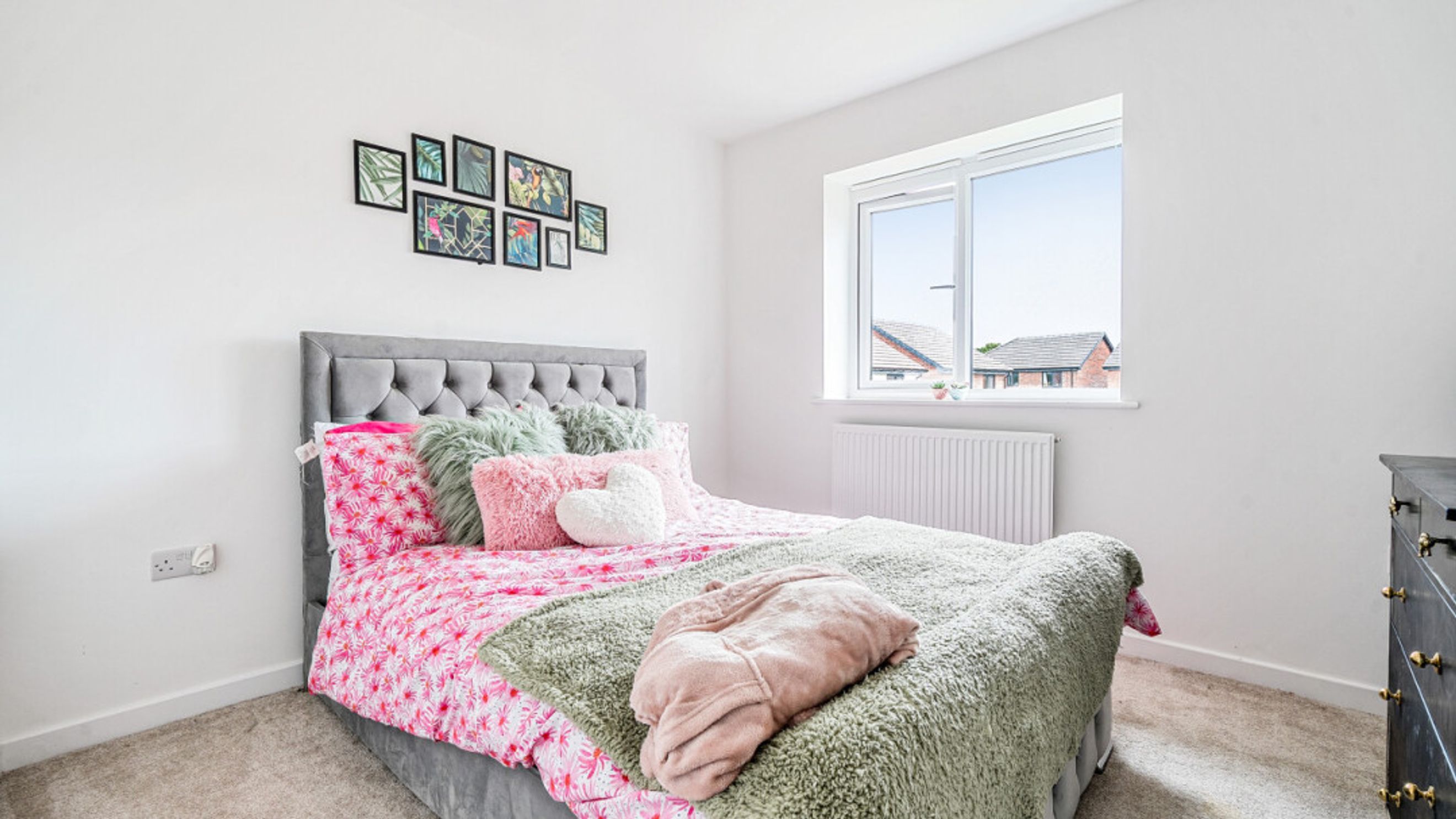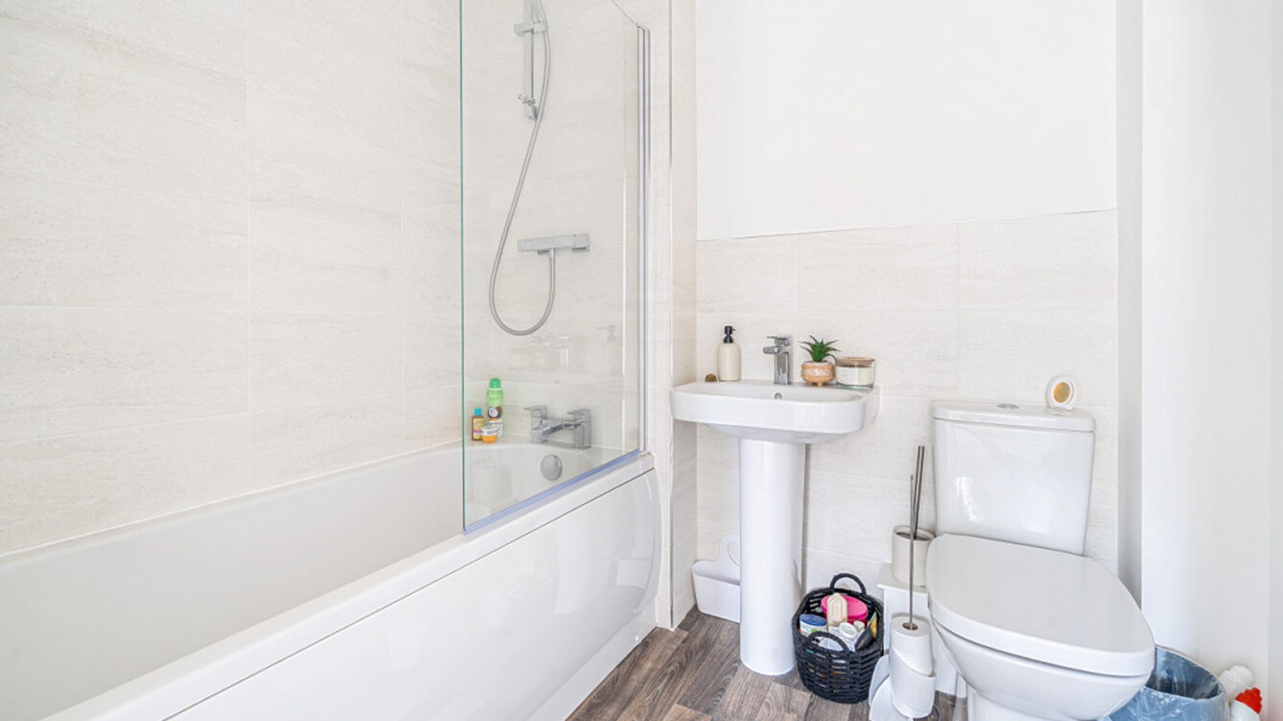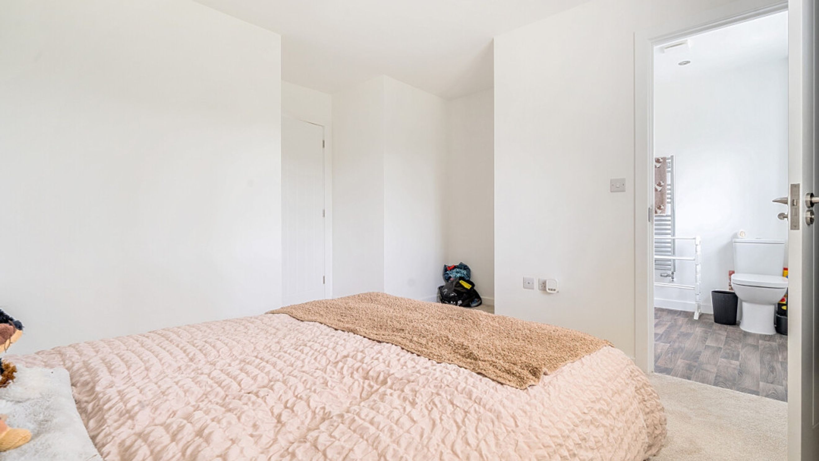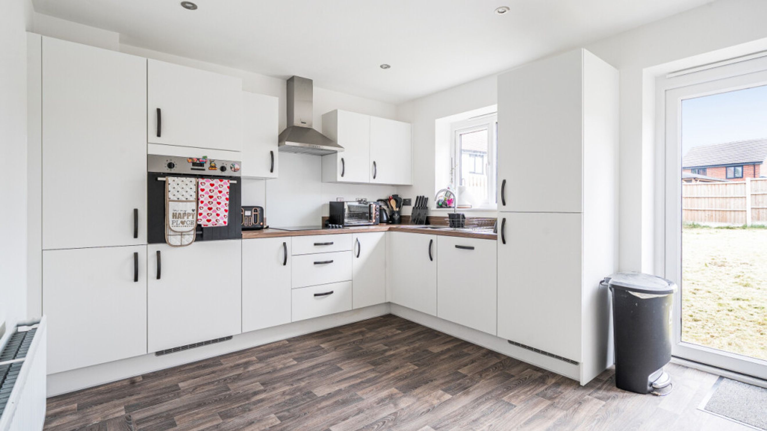 This bright and spacious semi-detached modern house, flooded with natural light, The kitchen is fitted with integrated appliances including a fridge freezer, oven, hob, extractor fan and dishwasher. Spacious main double bedroom benefitting from en-suite with shower. Bright and airy second double bedroom and a third which would be great use for a home office or is currently used as a dressing room. The bathroom comes complete with a white three-piece suite with a shower over bath and a stone tile surround. Additional storage cupboards and private driveway for multiple vehicles