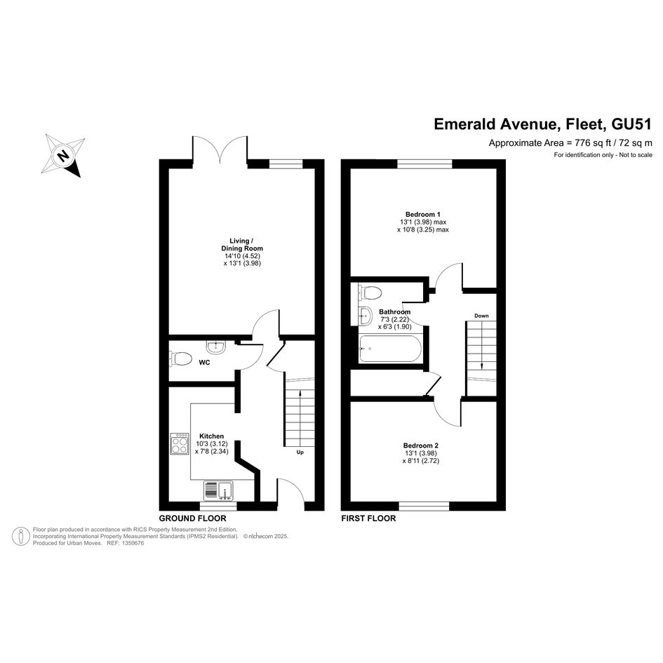 A modern, mid-terrace property which has an attractive kitchen at the front, a central cloakroom/WC and a spacious reception/dining room. Double doors open onto a south-west-facing rear garden with patio, lawn and timber shed. On the first floor of the house are two generously-sized bedrooms and a family bathroom. Well insulated walls, roof and floor, high performance glazing and gas central heating all contribute towards a very good energy-efficiency rating. The local schools are all Ofsted-rated either 'Good' or 'Outstanding', Hart Leisure Centre is just minutes away, Calthorpe Park and Edenbrook nature reserve are nearby and the supermarkets, shopping mall and other stores/amenities of Fleet town centre within easy reach. The house comes with parking for two cars.