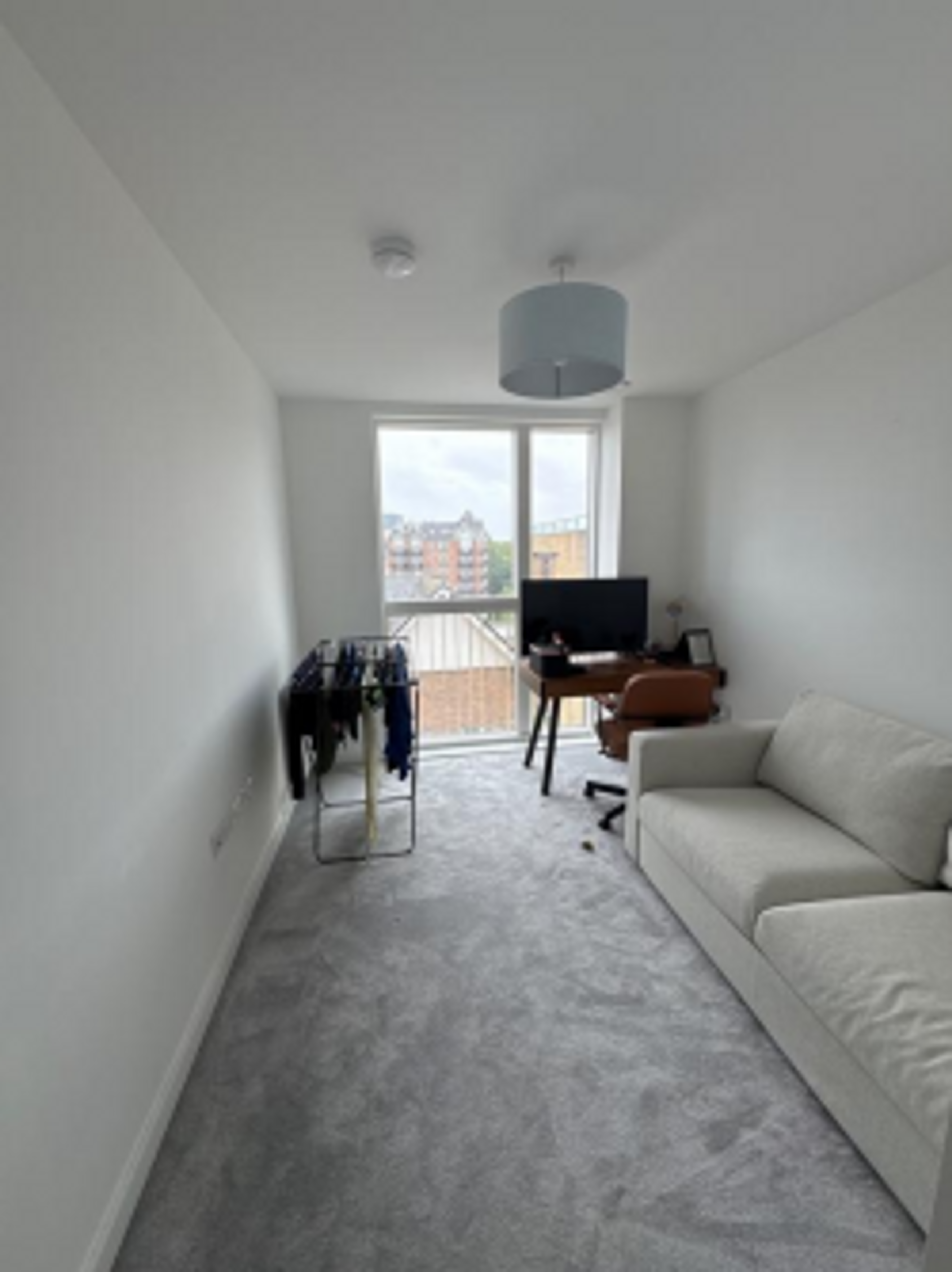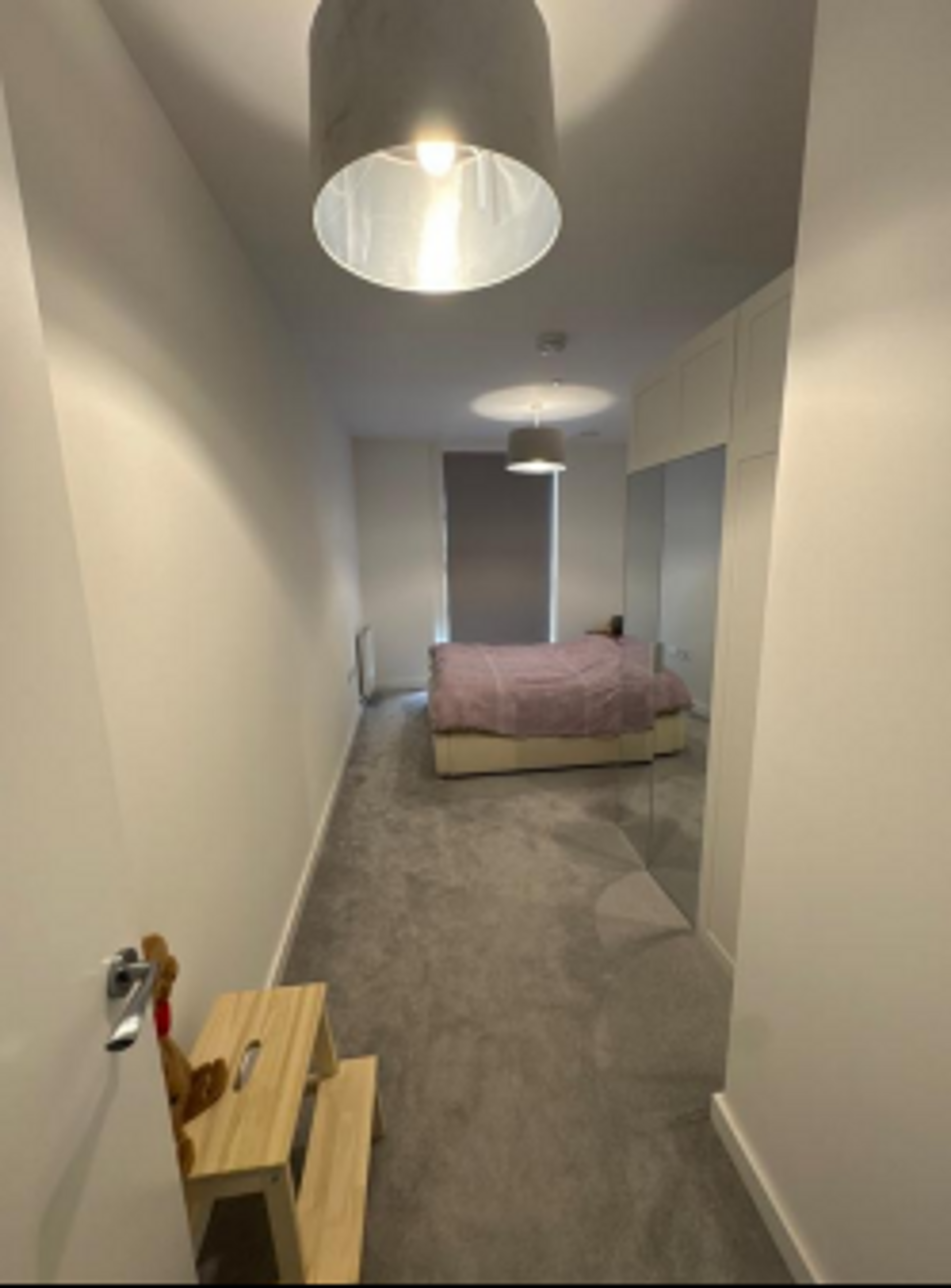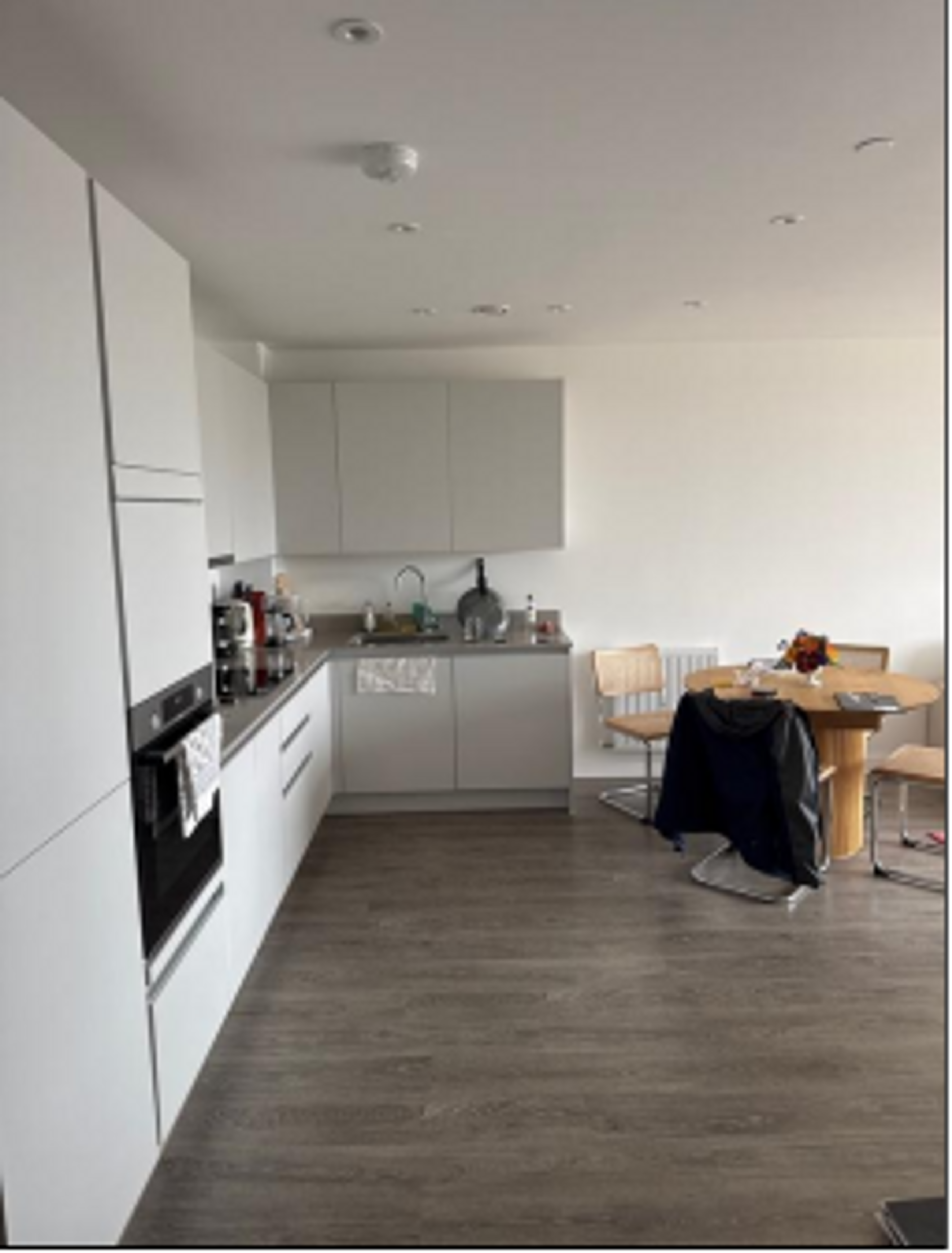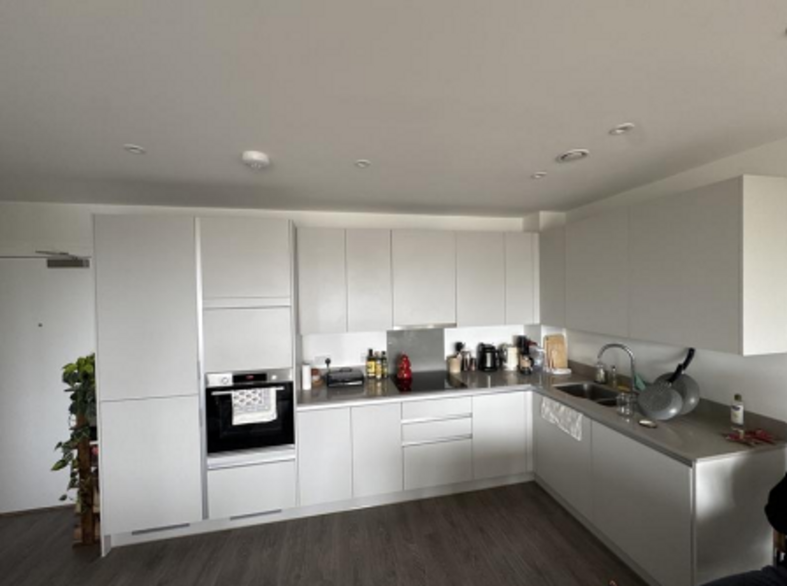 A modern two-bedroom, two-bathroom apartment on the 4th floor of The Moorings development, completed in 2021. The property offers light-filled living space and a private balcony. The apartment comprises an open-plan kitchen/reception room with floor-to-ceiling windows, a principal bedroom with fitted wardrobes and ensuite shower room, a second double bedroom, and a family bathroom. The kitchen is fitted with integrated appliances and finished in a contemporary style, while both bathrooms are presented to a high specification. Further benefits include neutral décor throughout, excellent energy efficiency, and a secure modern development.