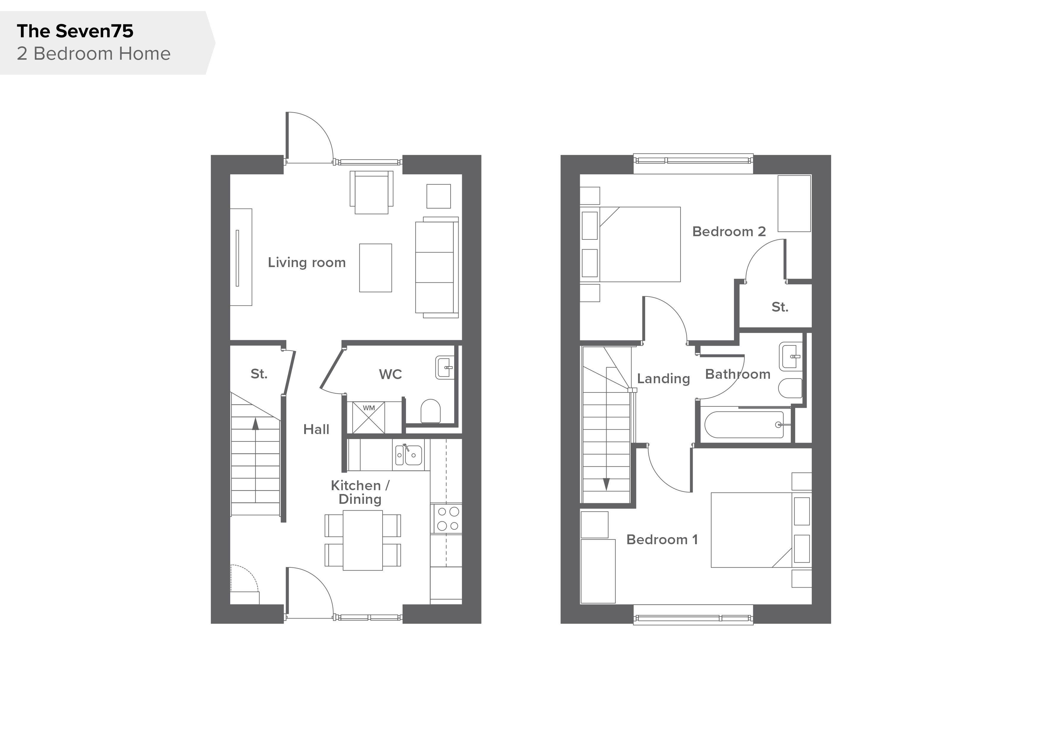 Welcome to the Seven75 and you'll discover a 2 bedroom house type with allocated off-road parking, an open plan living and kitchen/dining area with plenty of kitchen surface space, as well as handy storage. You'll also find a spacious living room with french doors that lead to the garden, ensuring a light and bright home and a downstairs toilet which is particularly handy when you have guests over. There are also 2 good-sized bedrooms as well as a bathroom.