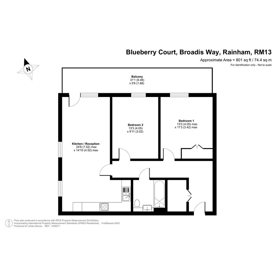 This spacious and well-presented apartment is on the third floor of a recently-built development. The property has a dual-aspect reception room with a glazed door that leads out onto the full-width balcony. The kitchen area is open plan to the reception and features a tiled floor and walnut-style units. There are two generously-sized bedrooms, an attractive bathroom and a large hallway storage/utility cupboard. Modern insulation standards, high performance glazing and a communal heating/hot water system have resulted in a very good energy-efficiency rating. Blueberry Court has a communal courtyard and a gated, underground car park which includes an allocated space for this apartment. The A13 offers a direct route into central London or out to the M25 and Rainham town centre or railway station can also be easily reached by bus or bike. Nearby Beam Parklands Country Park provides many acres of outside space to explore.