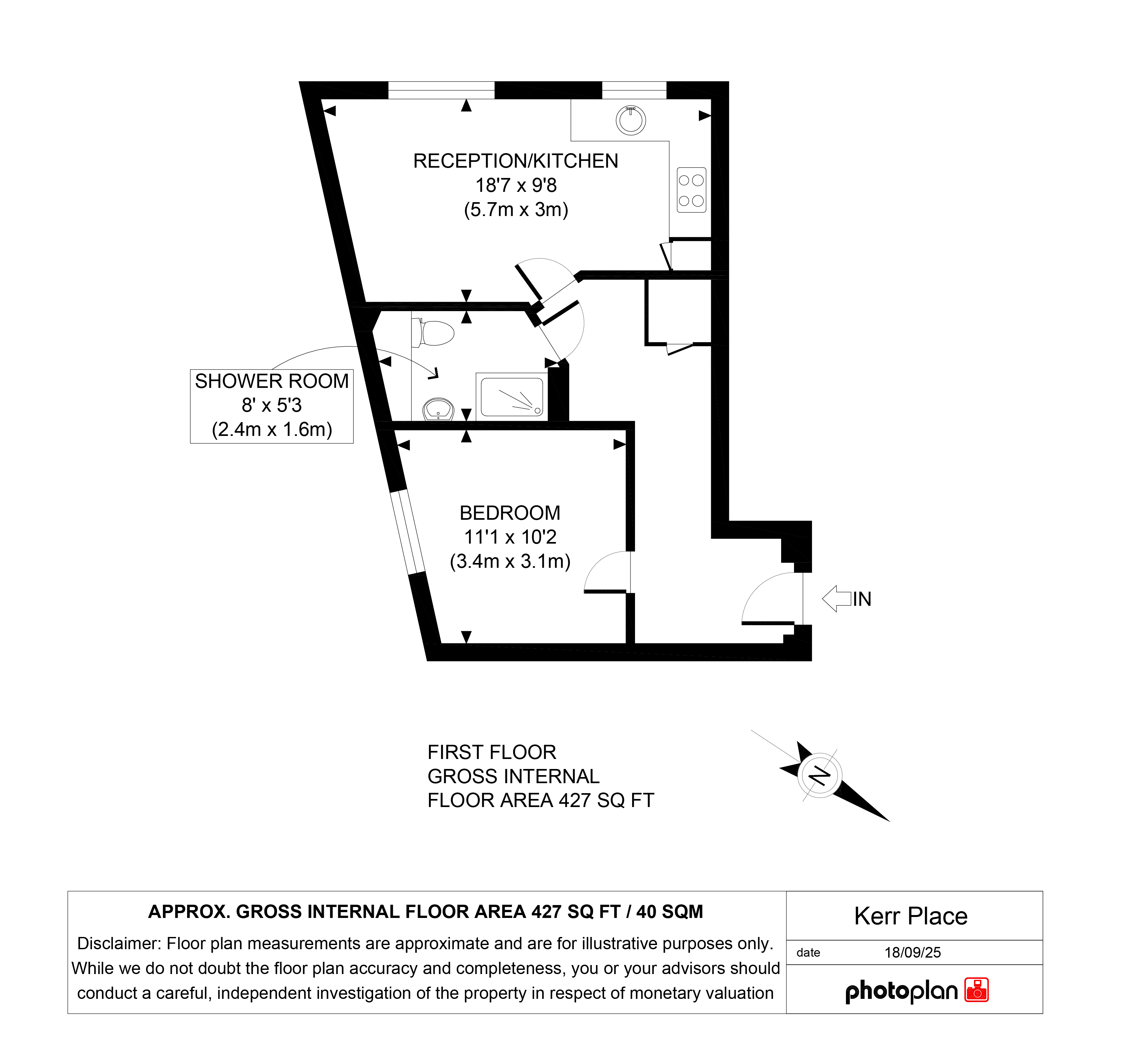 First Floor: Entrance hallway, Bedroom, Bathroom and open plan kitchen/living/dining room