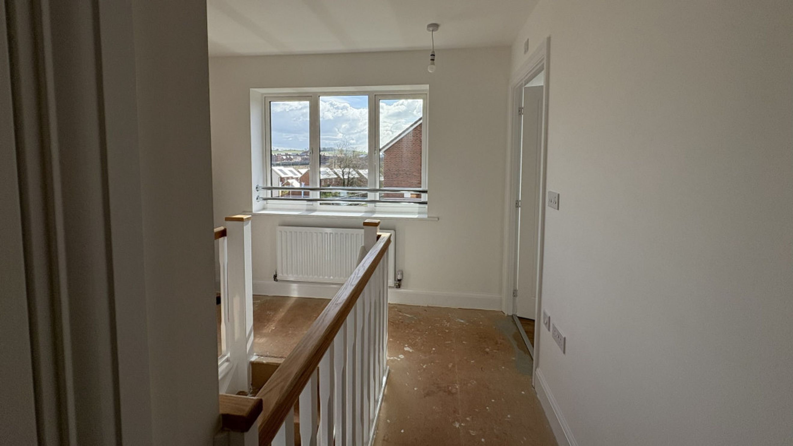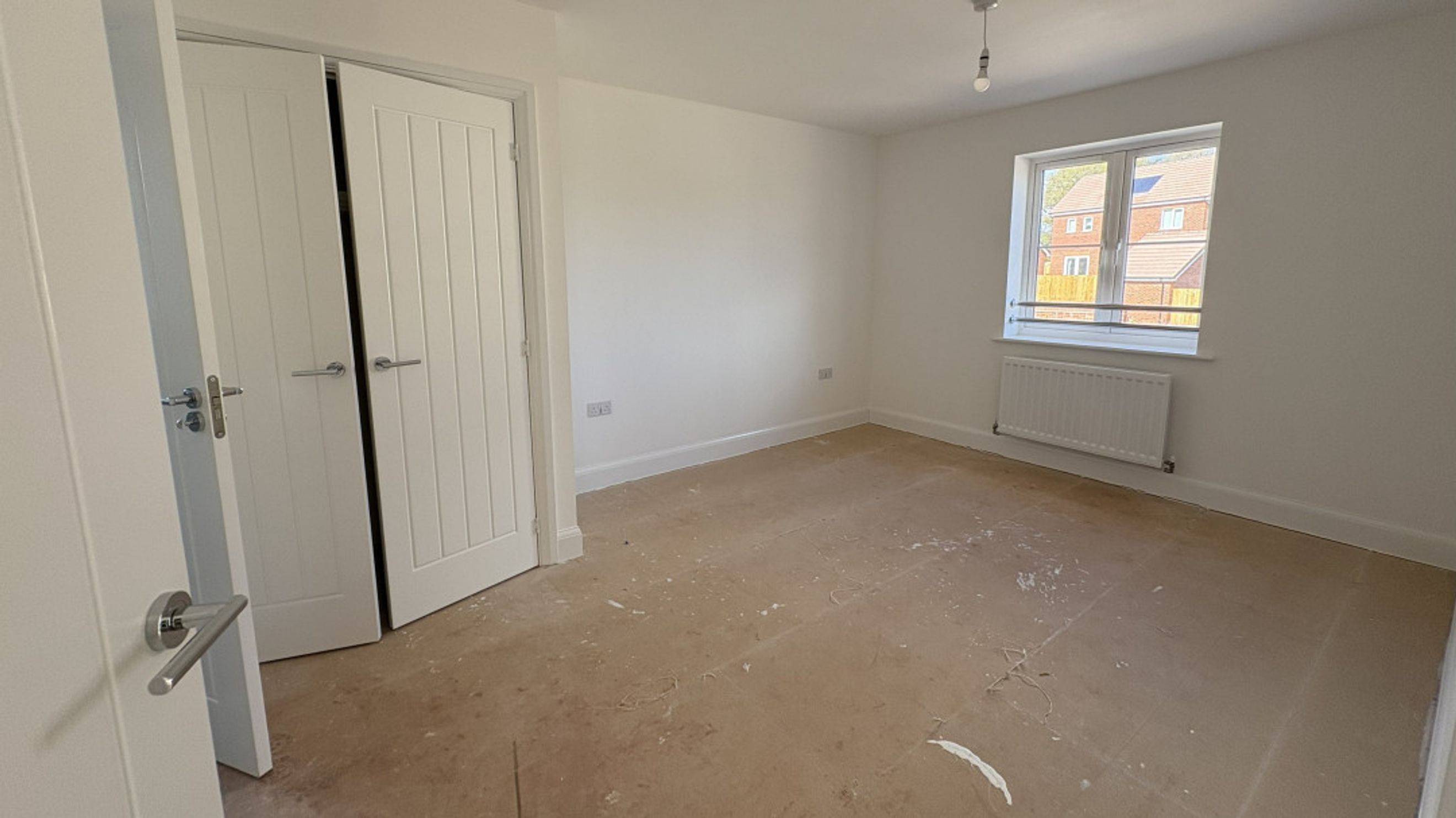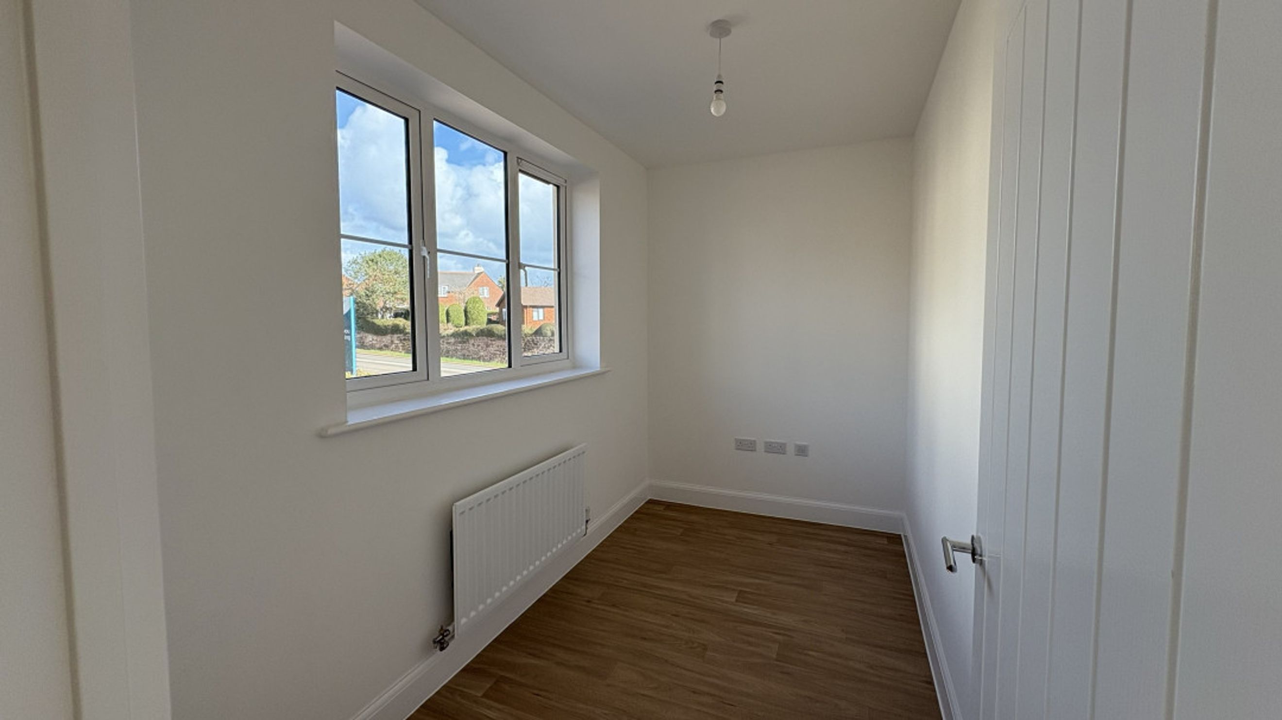 This impressive four-bedroom detached home has a modern-designed floor plan and is perfect for those wanting to make the most of indoor and outdoor living. The ground floor comprises of an open entrance hallway that leads through into the bespoke fitted kitchen and dining room with a breakfast bar and elevated oven, a sociable space perfect for hosting. The dining area also has French doors which open onto the enclosed rear garden which features a patio and tiered lawn great for al fresco dining. The spacious living room features a Chestnut home specific trademark, of a bay window, as well as bi-fold doors onto the garden filling the space with natural light. Next to the living room is a cosy study which is ideal to use as an office for working from home. Completing the ground floor is a W/C and plenty of storage.