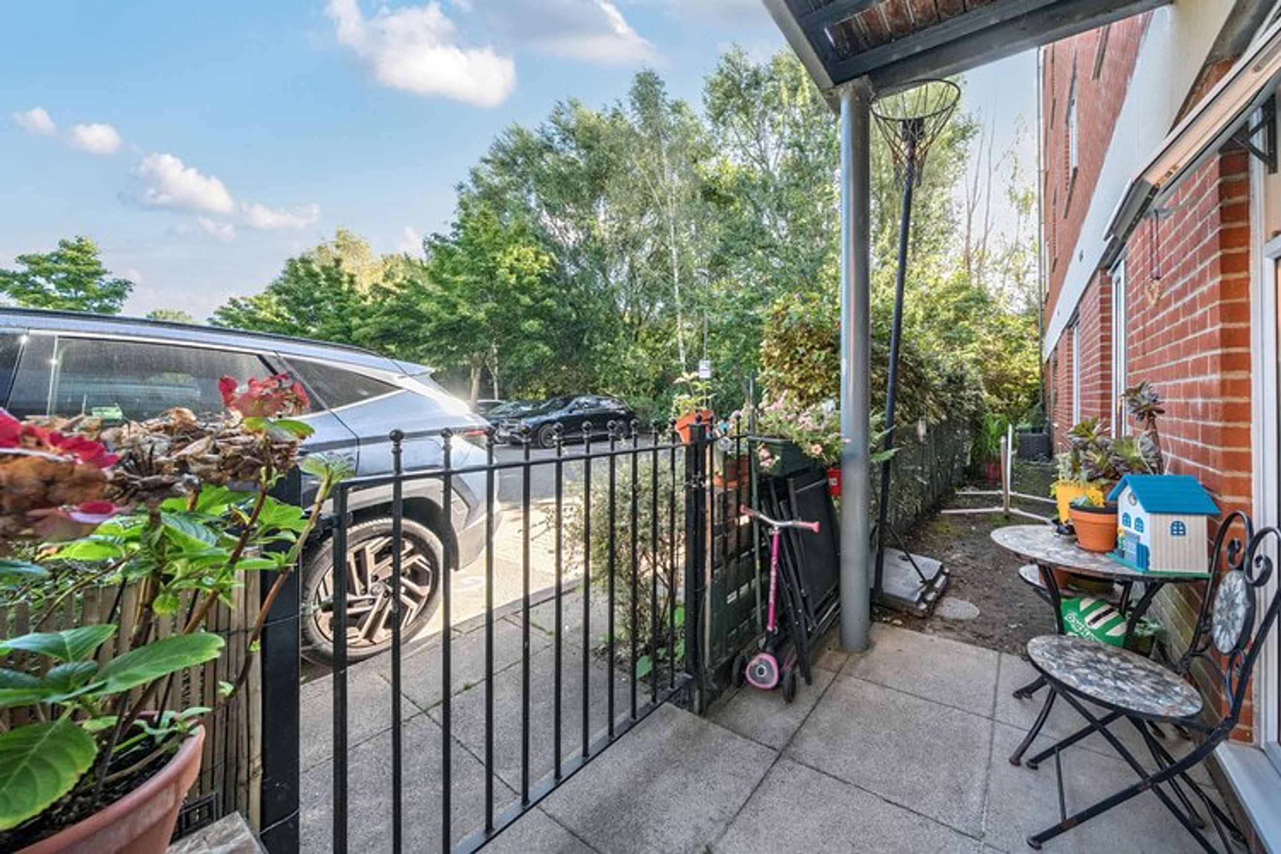 The property offers residents a private patio and an allocated parking spot.