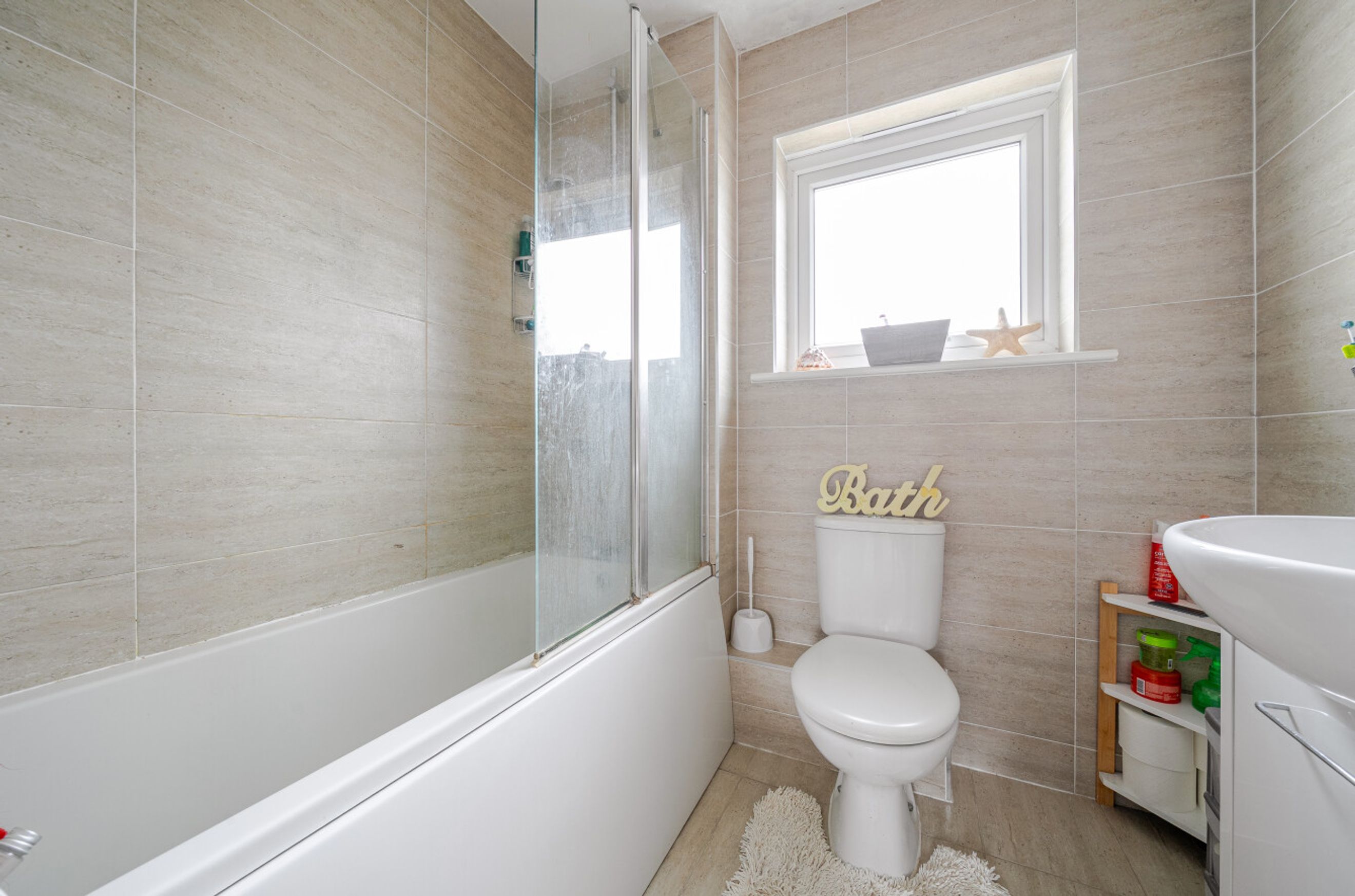 - Family bathroom with shower over bath