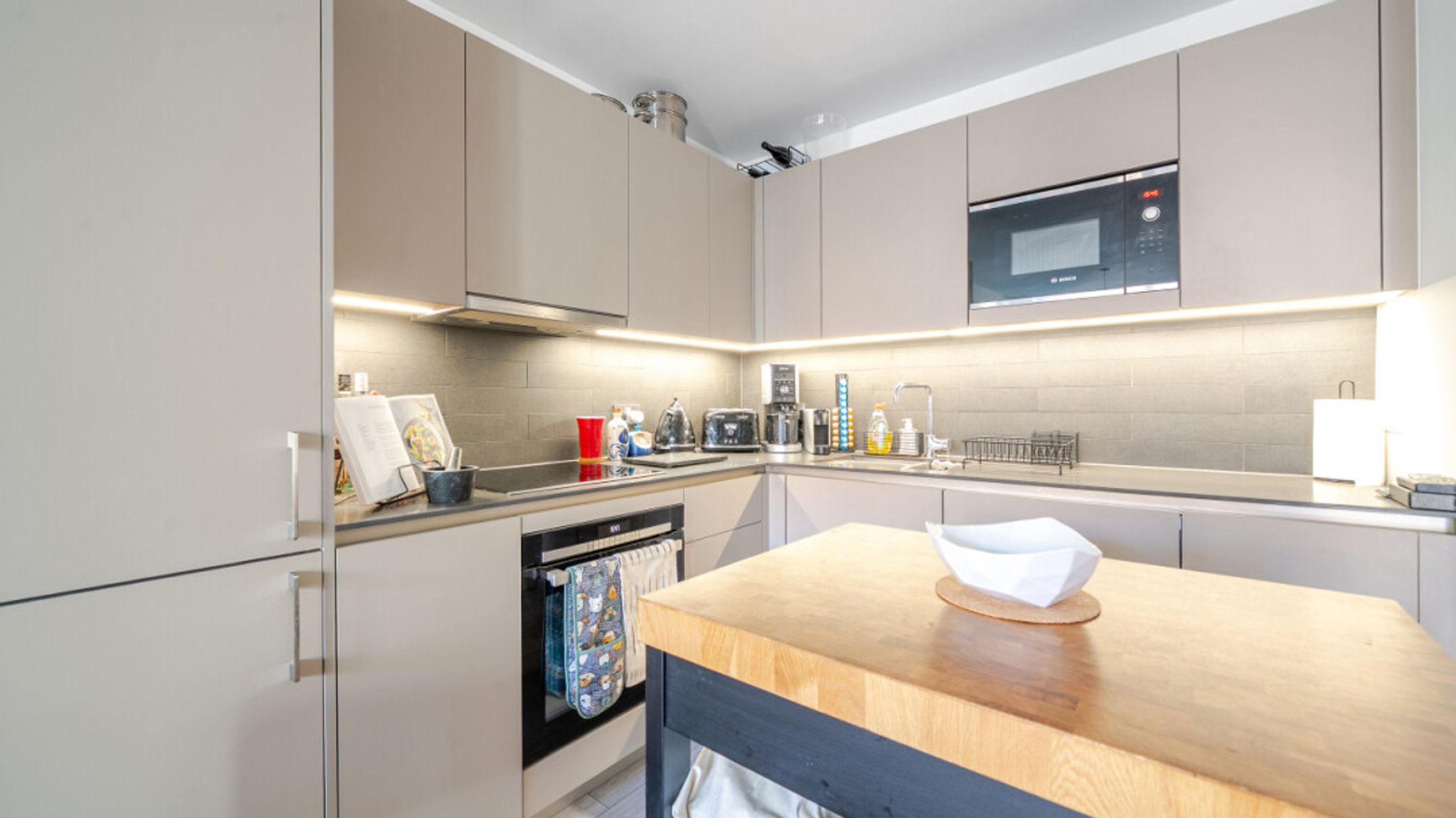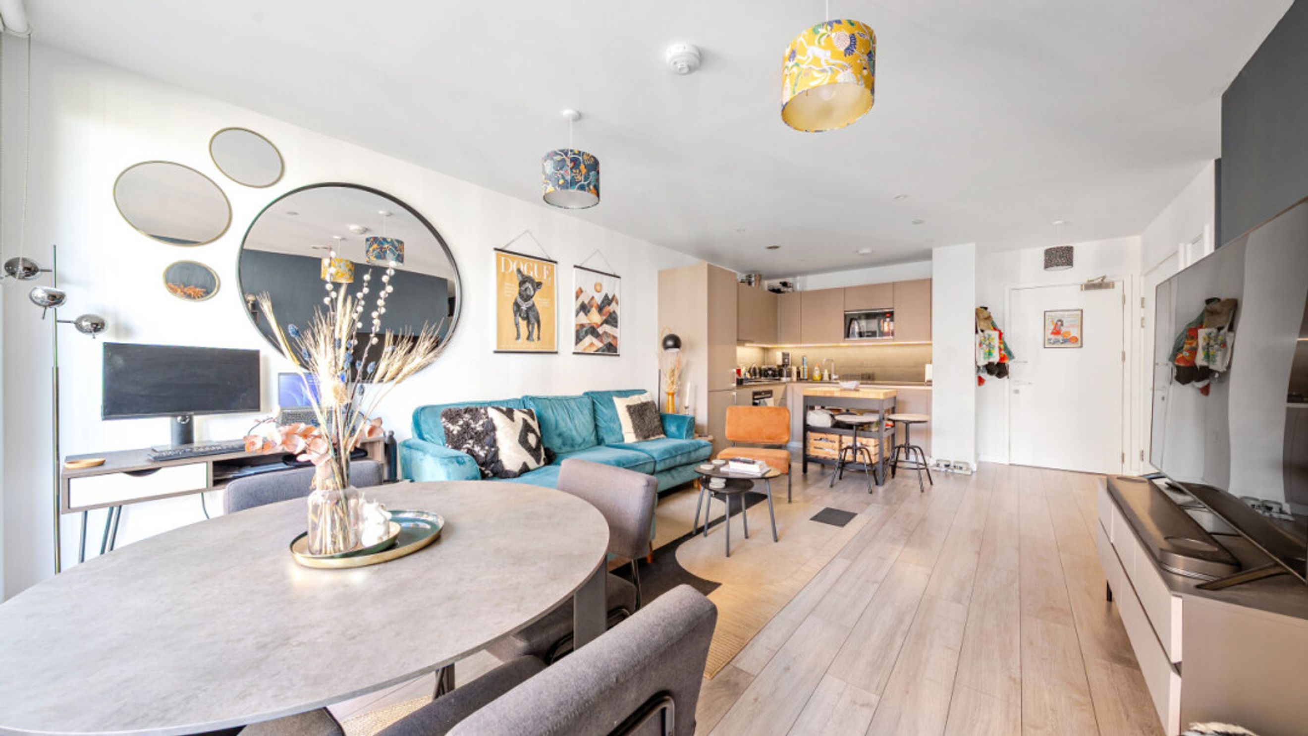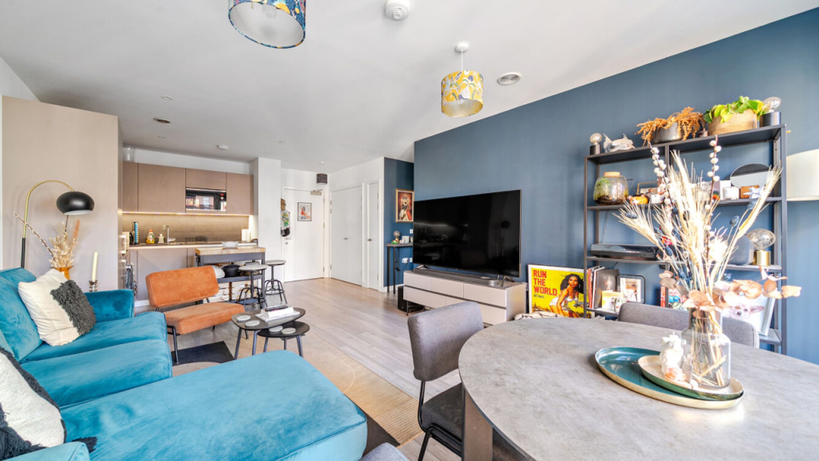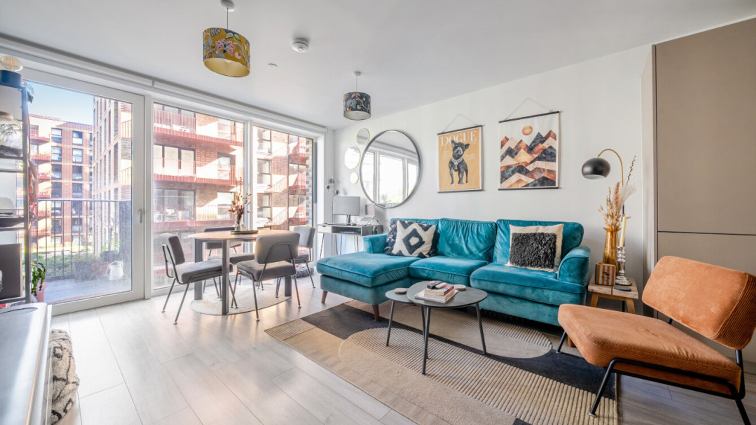 Enter this bright and spacious apartment directly into the stylish open-plan living area, which is flooded with natural light from wide floor-length windows and door to private balcony overlooking the communal courtyard. The kitchen is a modern matt grey with stylish worktops. It also benefits from under cupboard lighting and integrated appliances including a fridge freezer, oven, hob and extractor fan. The bedroom comes with fitted wardrobe and floor to ceiling windows overlooking the balcony. A contemporary bathroom comes complete with a white three-piece suite including a shower over the bath.
