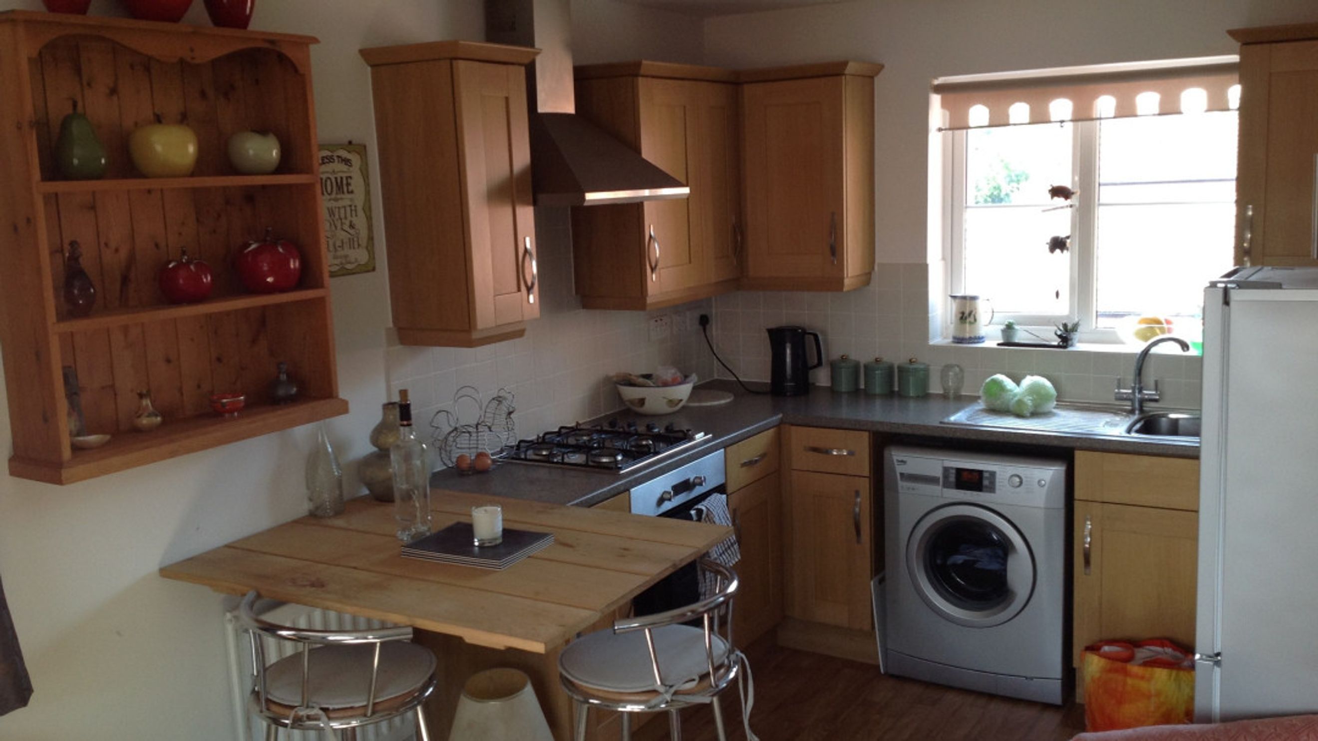 The kitchen is thoughtfully designed with rich brown units and a sleek dark worktop, offering both style and practicality. Natural light fills each room, creating a warm and inviting atmosphere. The property also benefits from one allocated parking space, adding convenience to comfort.