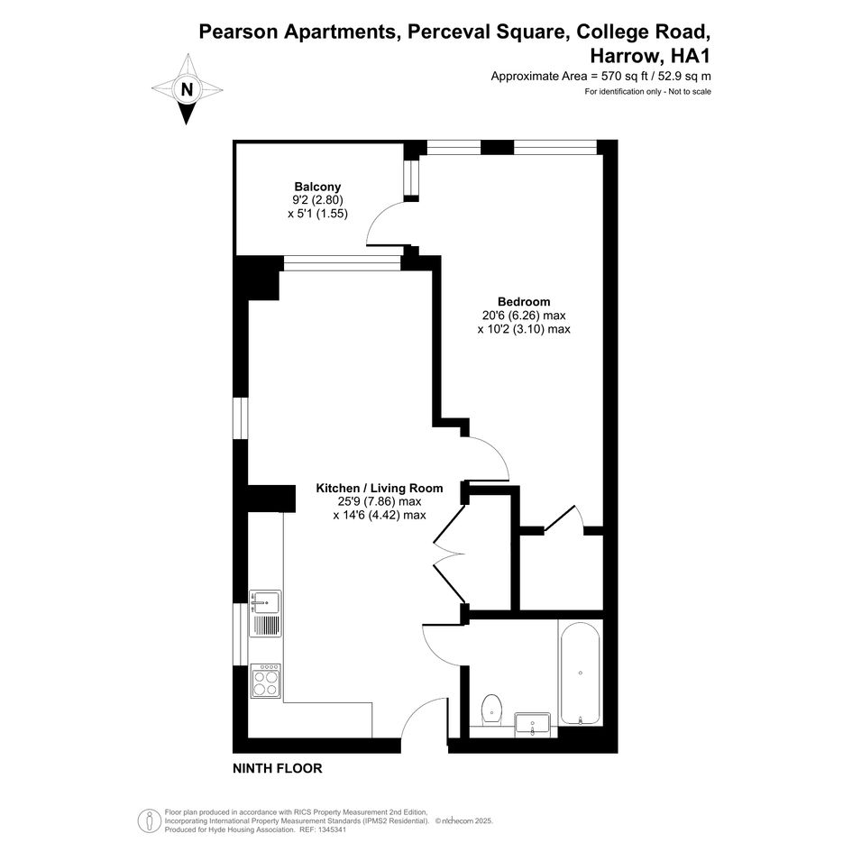 A 9th floor, one-bedroom apartment in Harrow.