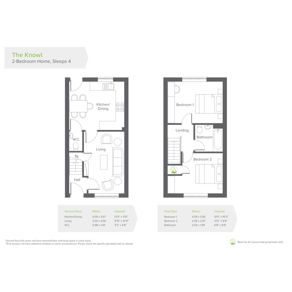 The first floor of The Knowl features two generous double bedrooms and a stylish three-piece family bathroom complete with an over-bath shower finished with designer taps and tiling.