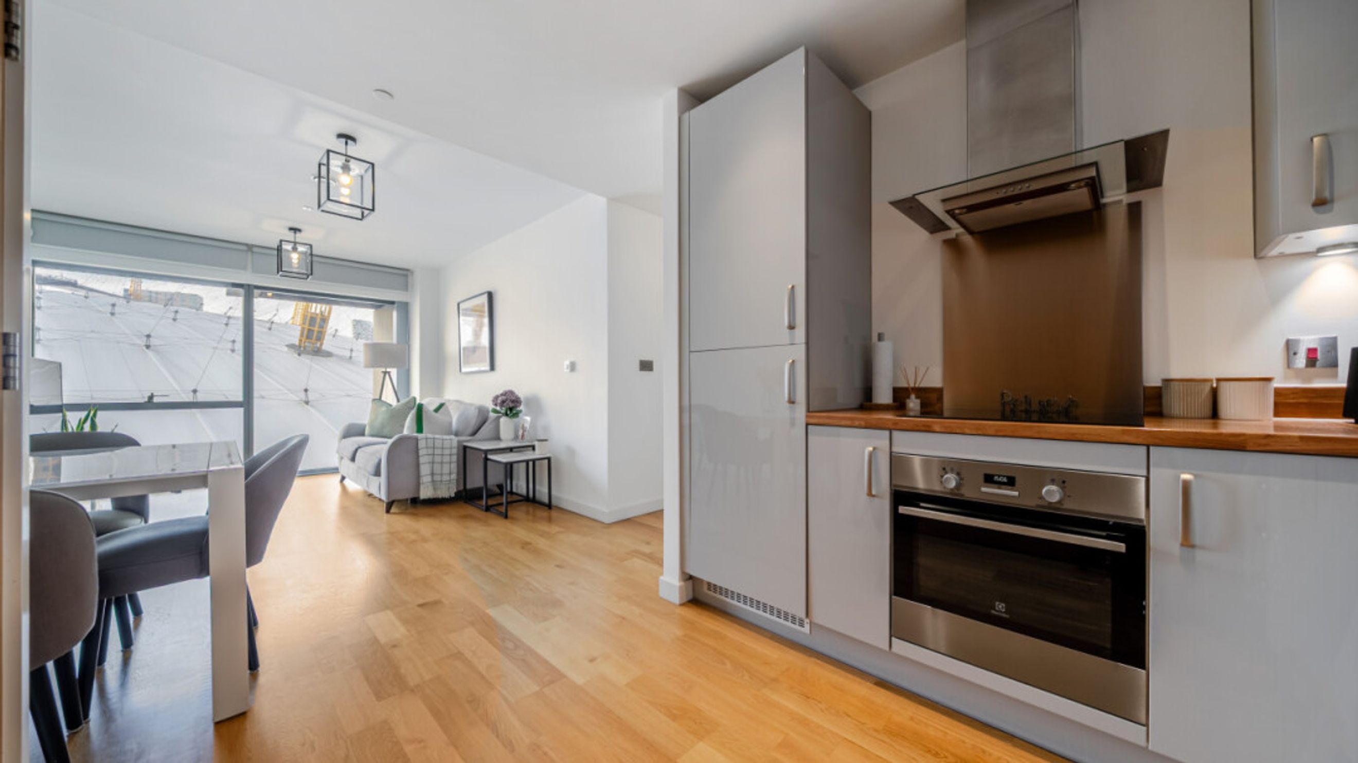 Purpose built - two balconies - views of the O2 and Thames.