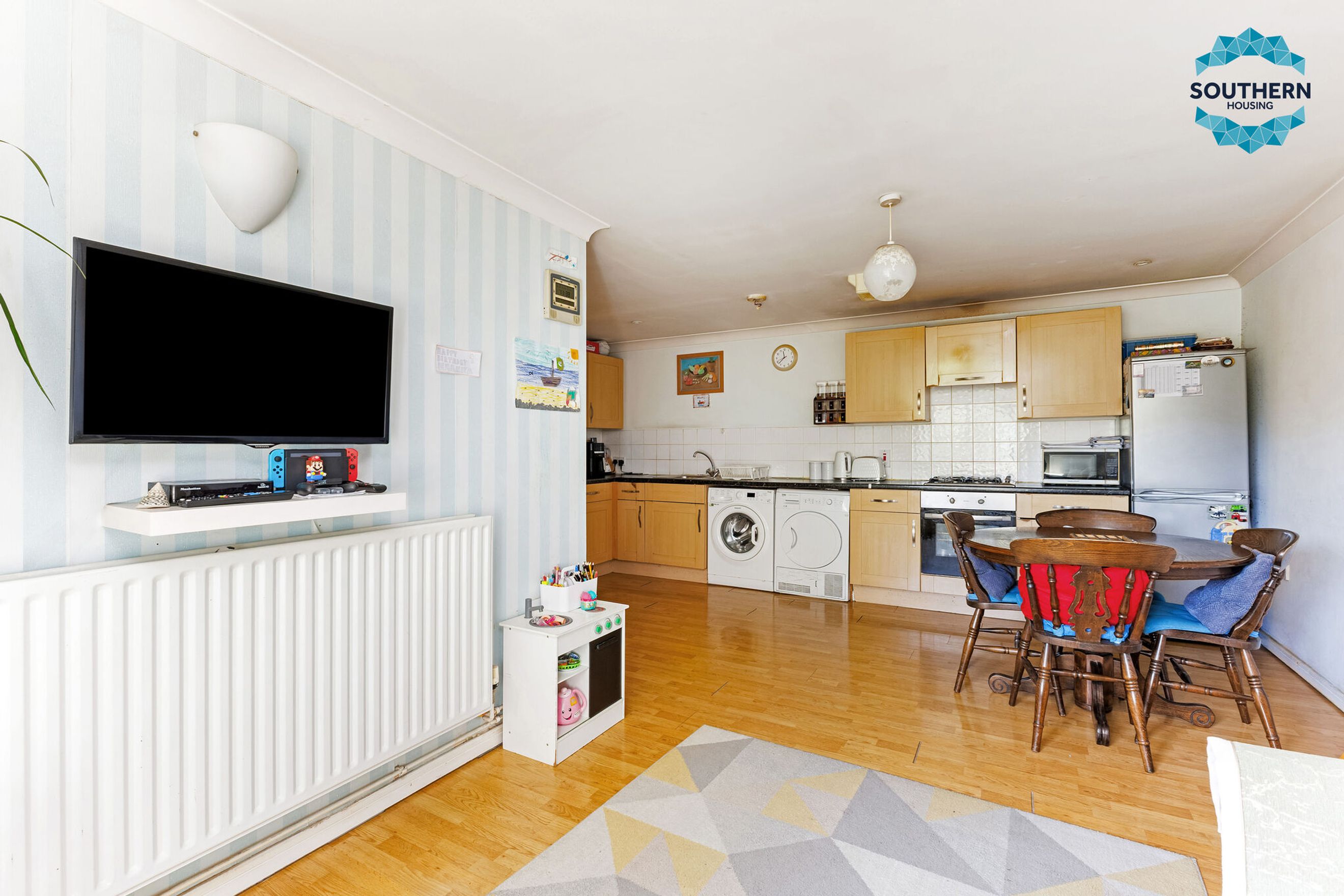 The heart of the home is a spacious open-plan reception and kitchen area, ideal for relaxing evenings or hosting friends. Natural light fills the space, enhancing its warm and welcoming atmosphere.
