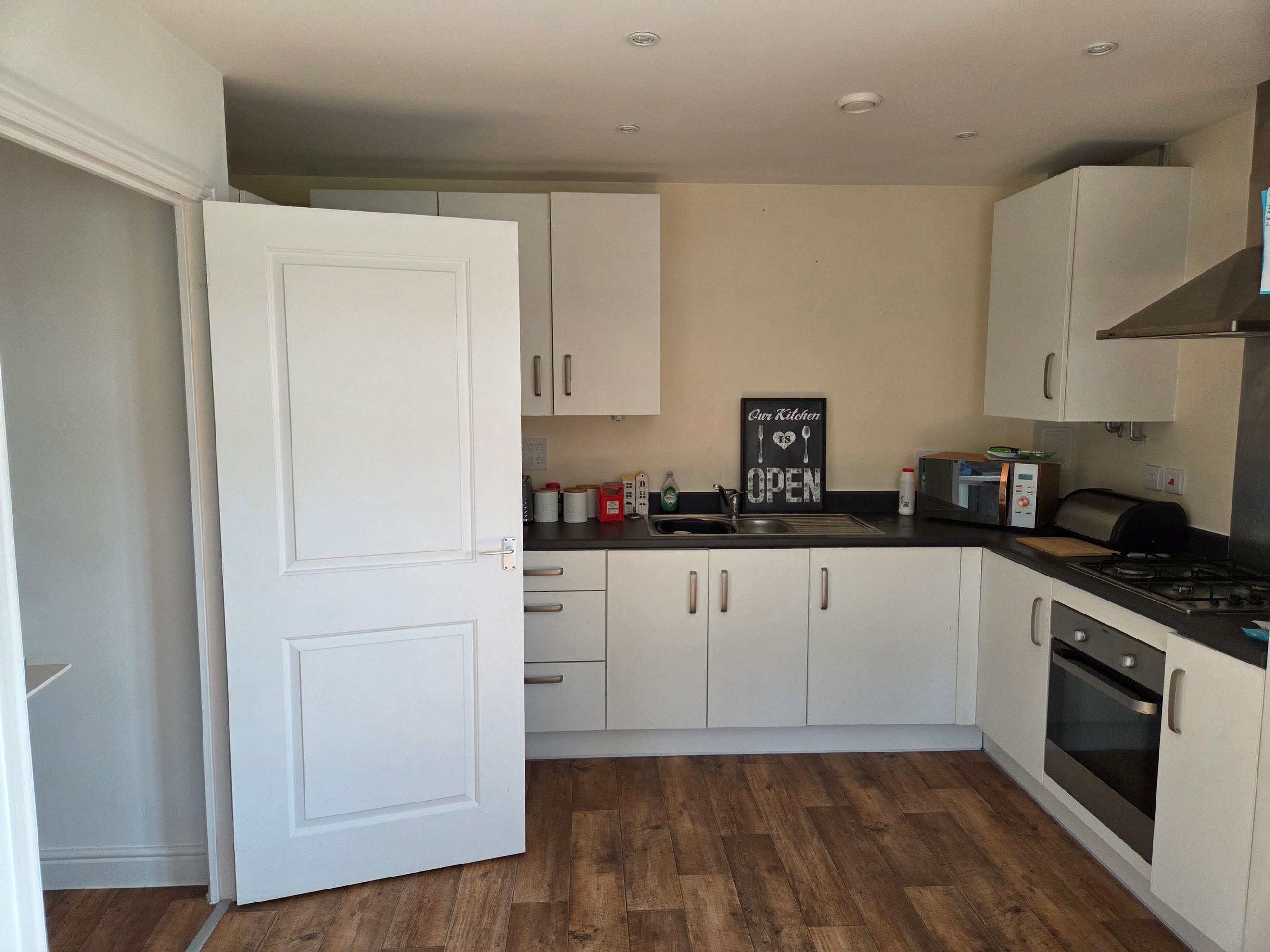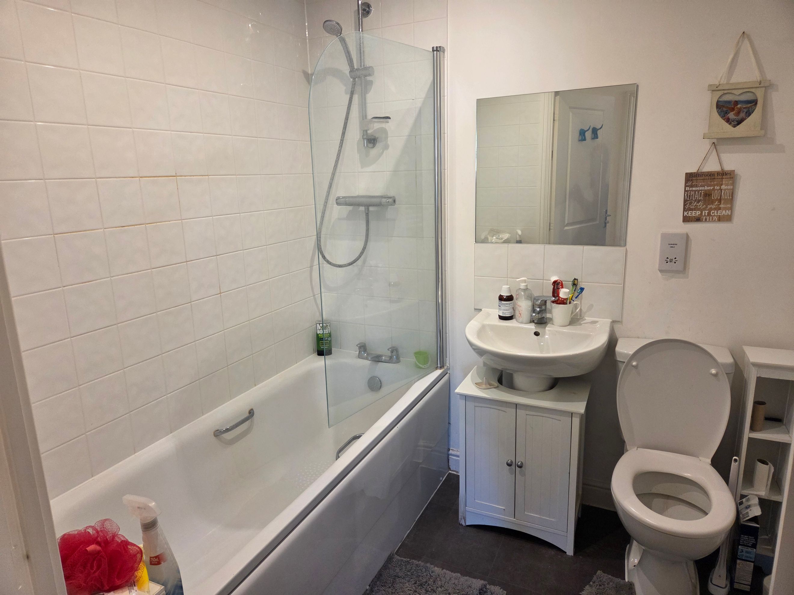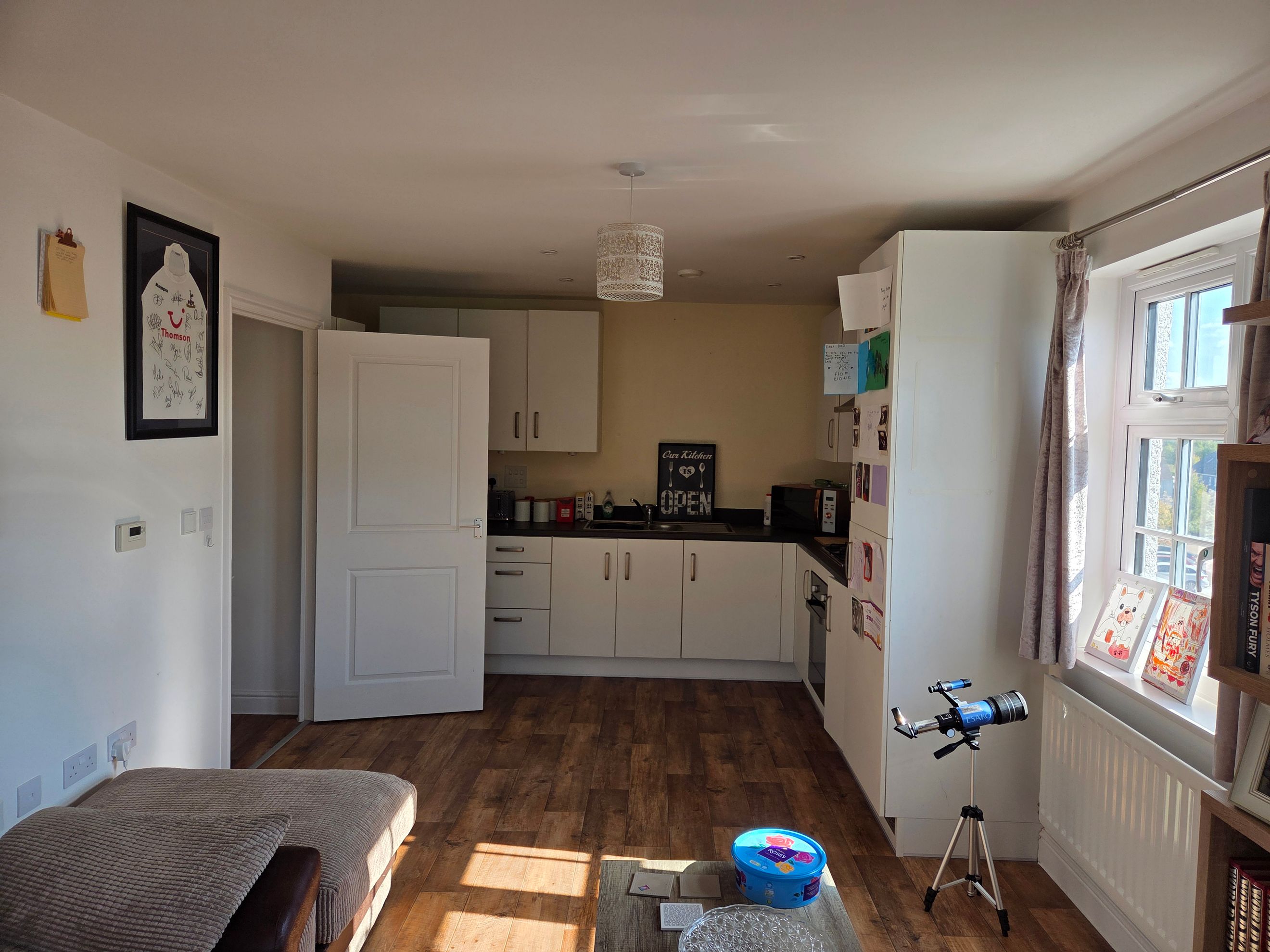 This home has a L shaped hallway that leads onto two good sized bedrooms and a bright open plan kitchen/diner/living space. The kitchen comes complete with integrated oven, gas hob and fridge freezer. The apartment also boasts a huge storage cupboard.