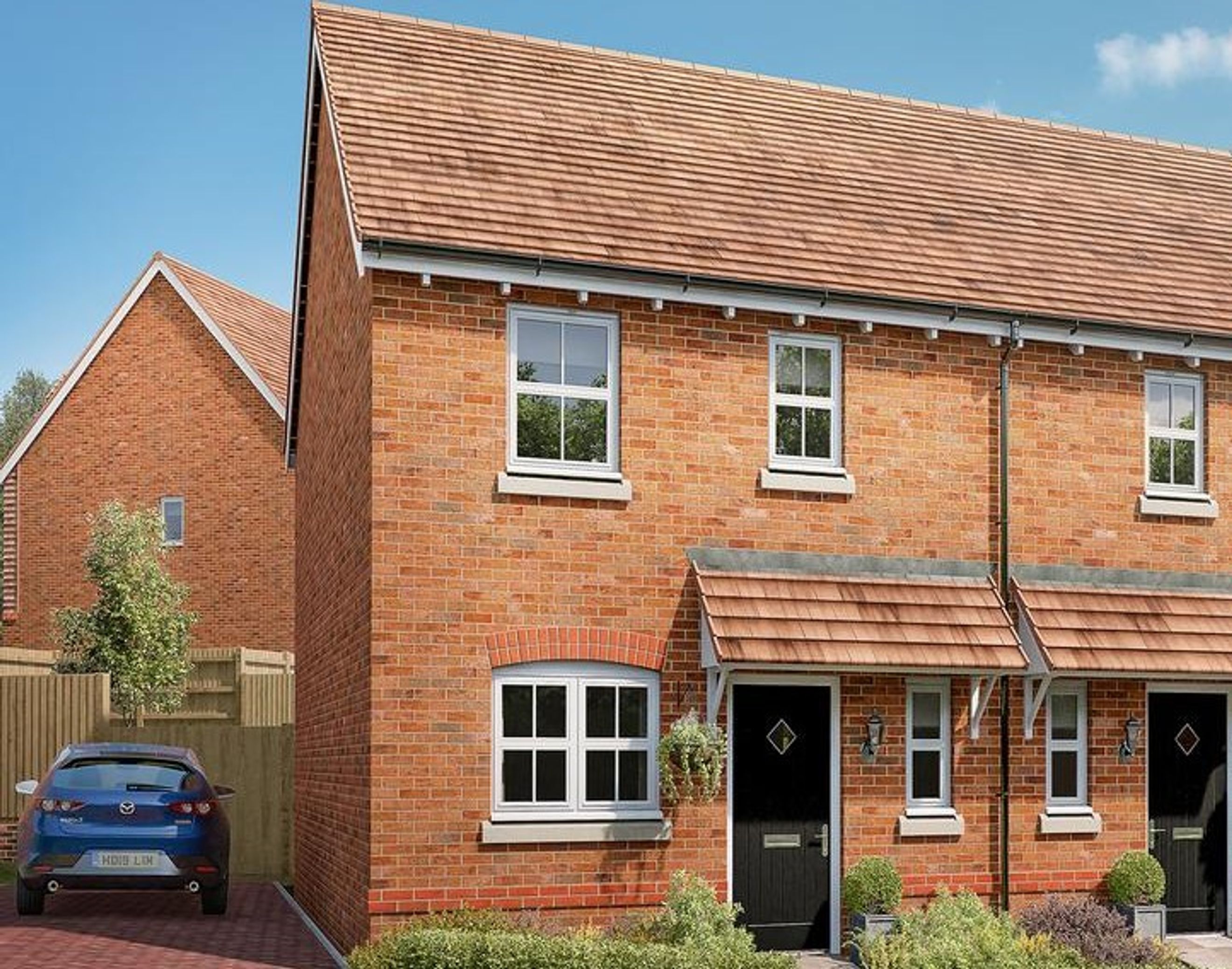 This brand new end of terrace home built to the ‘Wareham’ design features a large lounge/diner at the back of the house with a separate kitchen and a ground floor cloakroom. To the first floor are two double bedrooms and a bathroom whilst externally allocated parking for two cars and an enclosed rear garden.