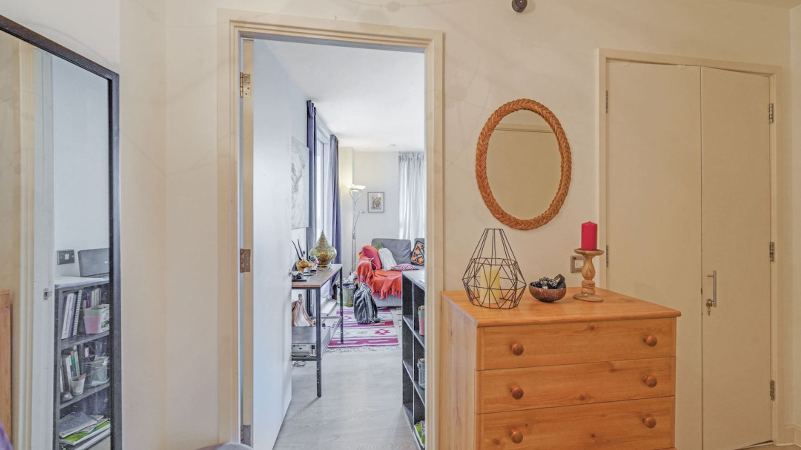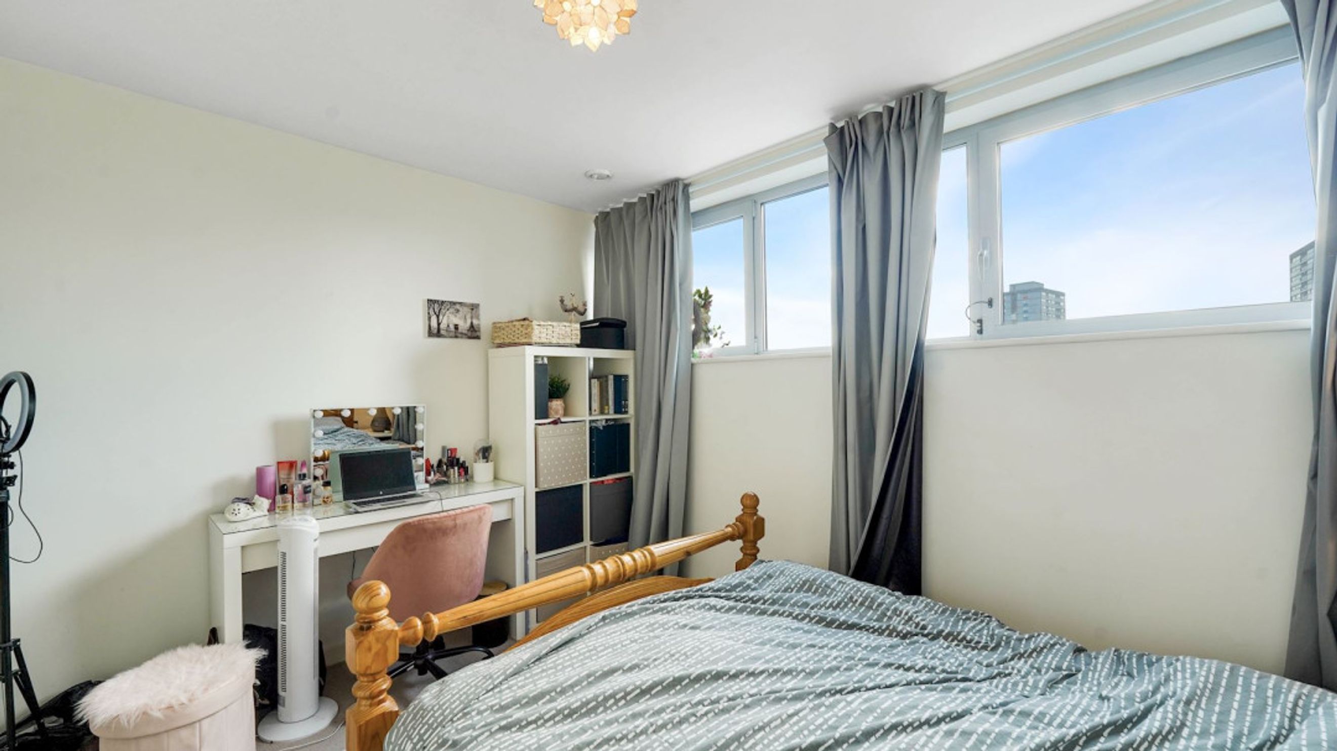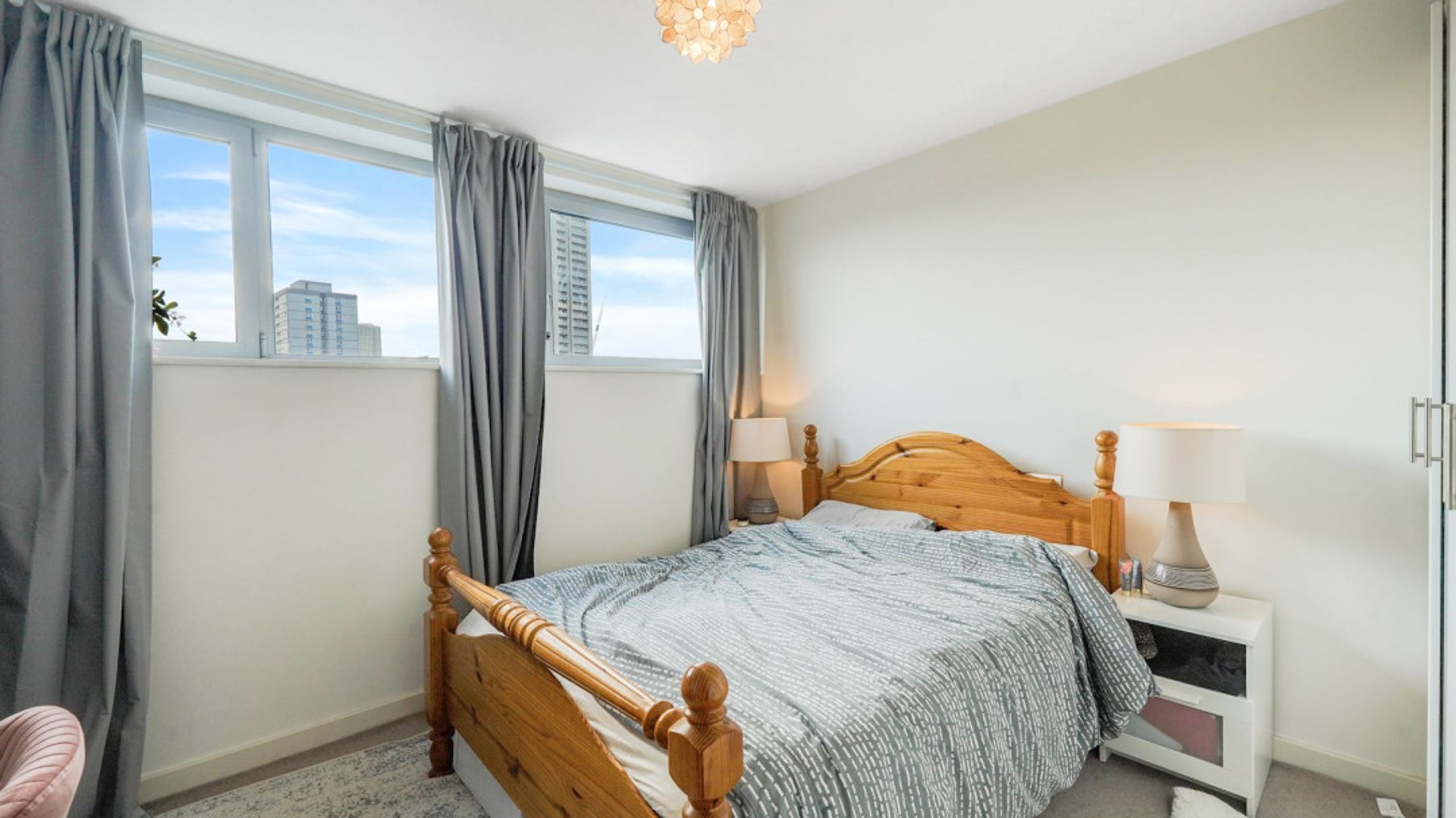 Flat 36, 3 Rick Robert's Way, London, welcomes you with its bright, modern charm and cozy ambiance. The bathroom invites with its warm recessed lighting and a stylish bat...