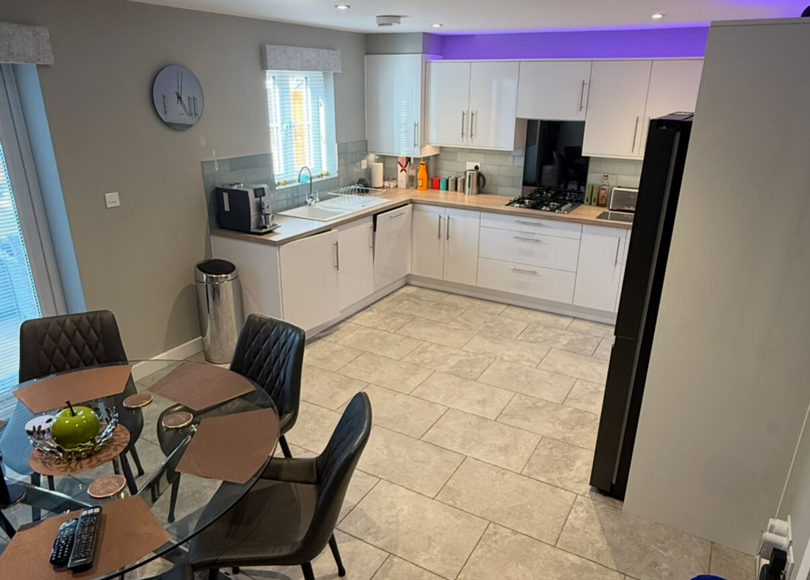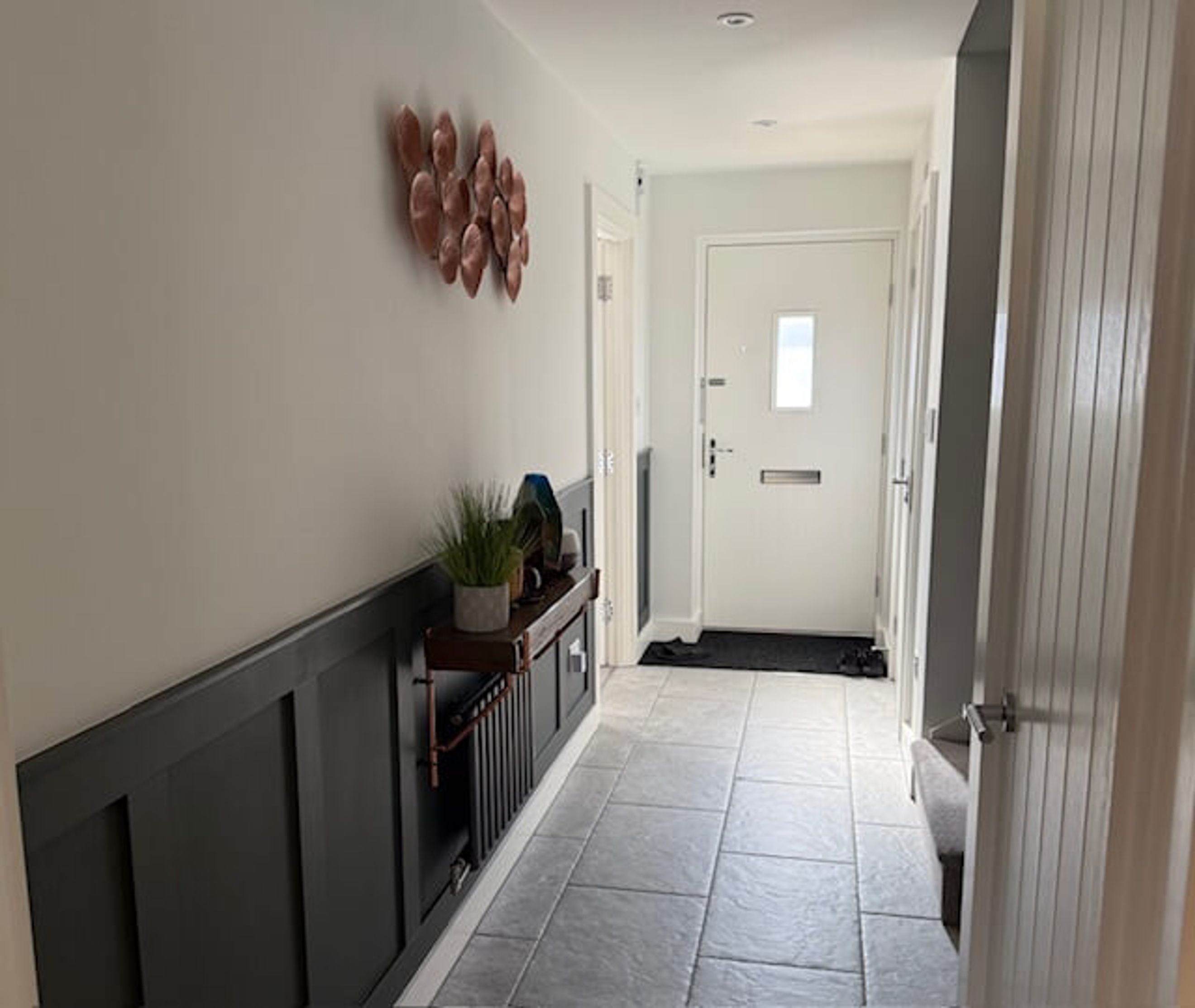 This beautifully maintained three-bedroom home, located in the desirable development of The Paddocks, offers spacious and thoughtfully designed living throughout. Upon entering, you're welcomed by a large tiled entrance hallway with underfloor heating, leading to a convenient downstairs toilet with a heated towel rail. The generous family living room is perfect for relaxation, while the large fitted kitchen/dining/family room boasts underfloor heating and French doors opening onto the rear garden—ideal for entertaining. Additional features include an under-stairs cupboard with lighting and power, and a spacious landing with two lit storage cupboards.
